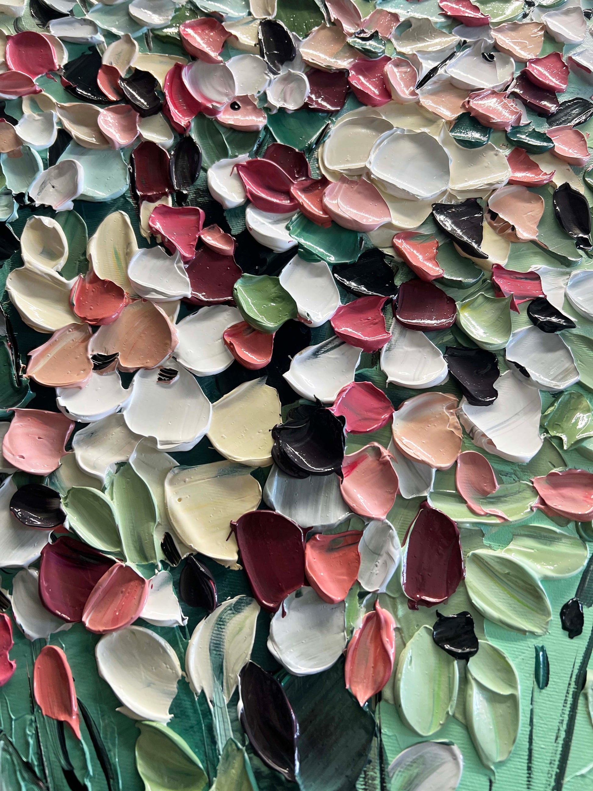 I worked with thick, textured brushstrokes to bring depth and movement, making each petal feel tangible and full of energy.