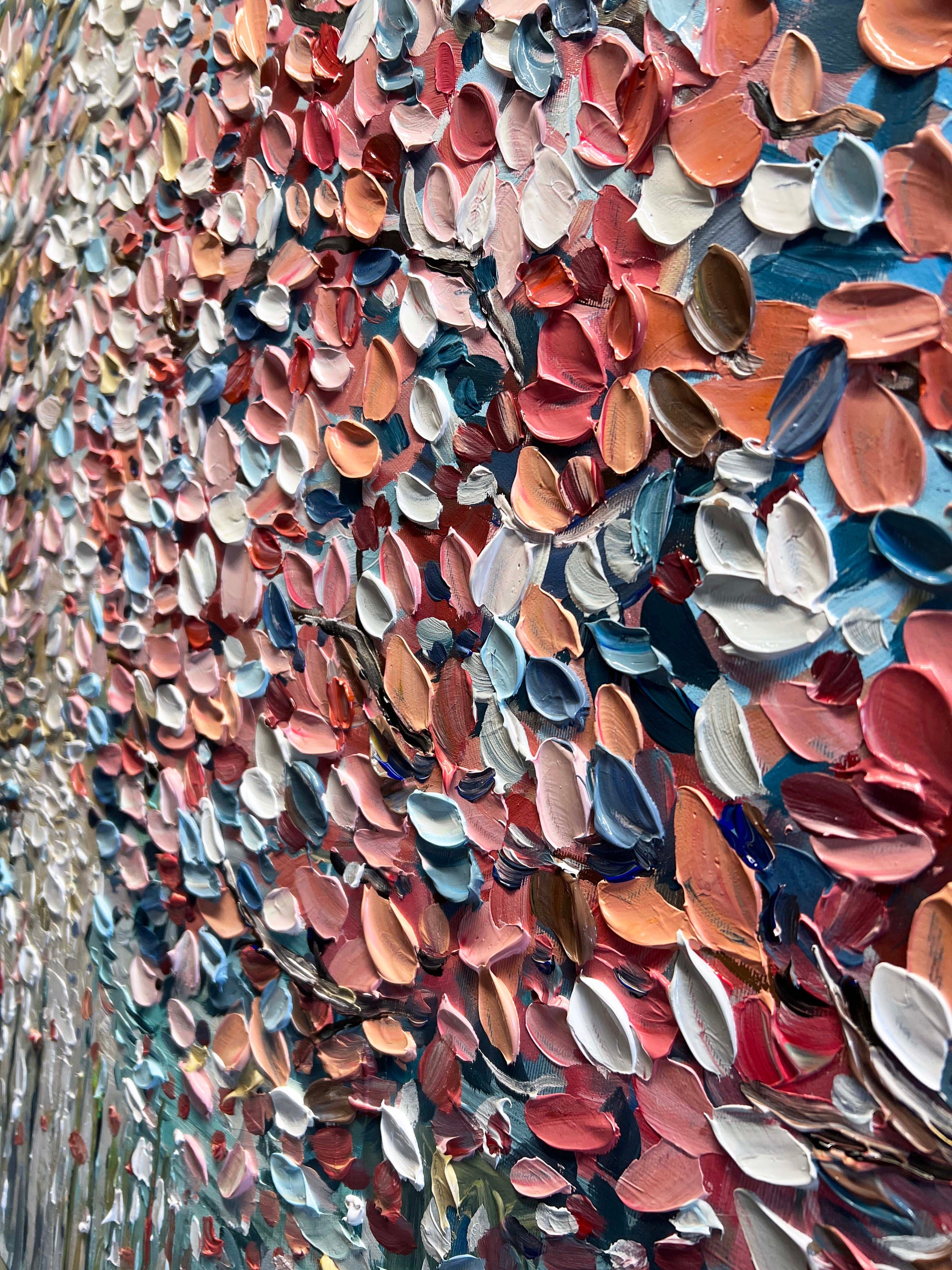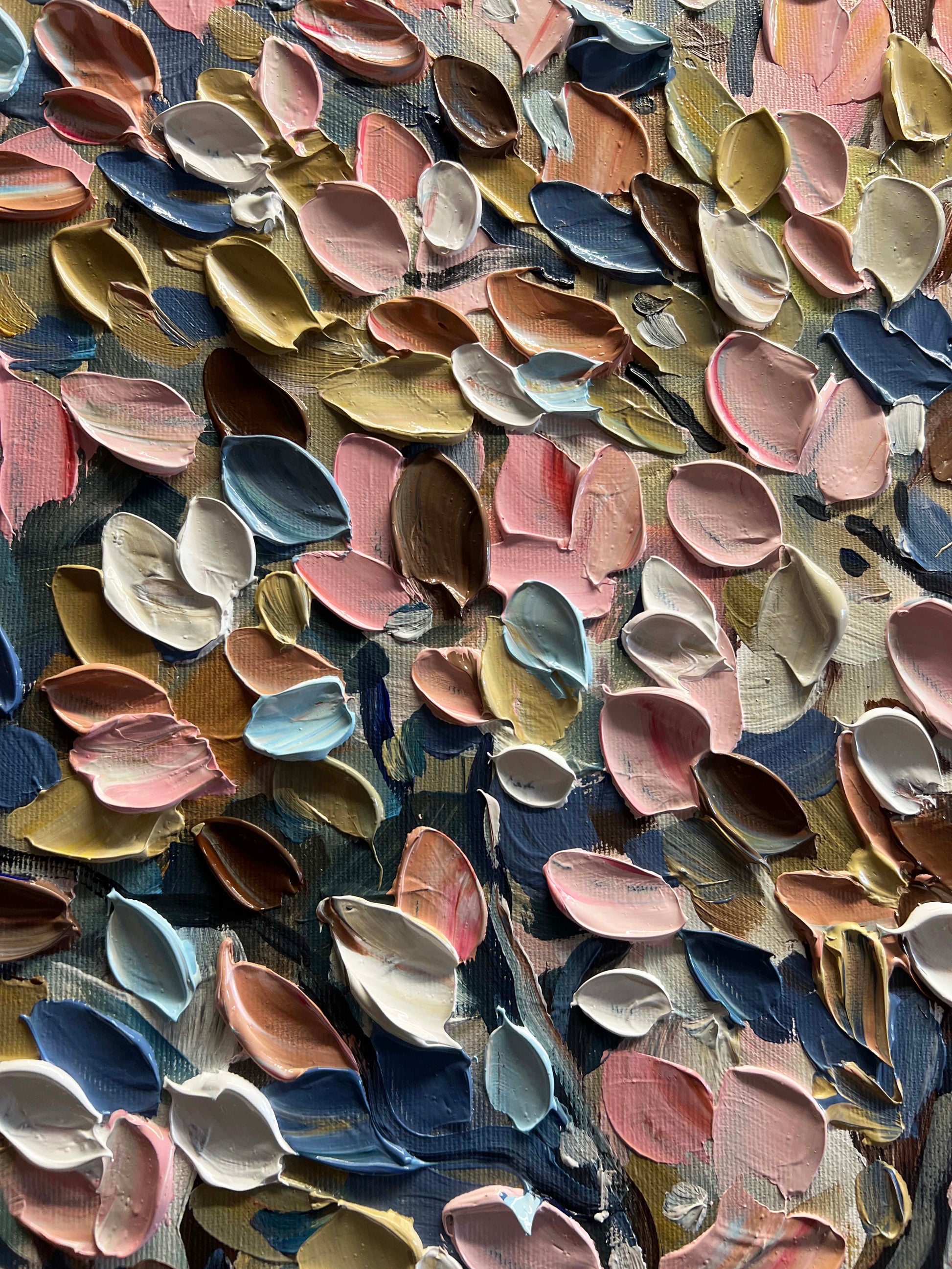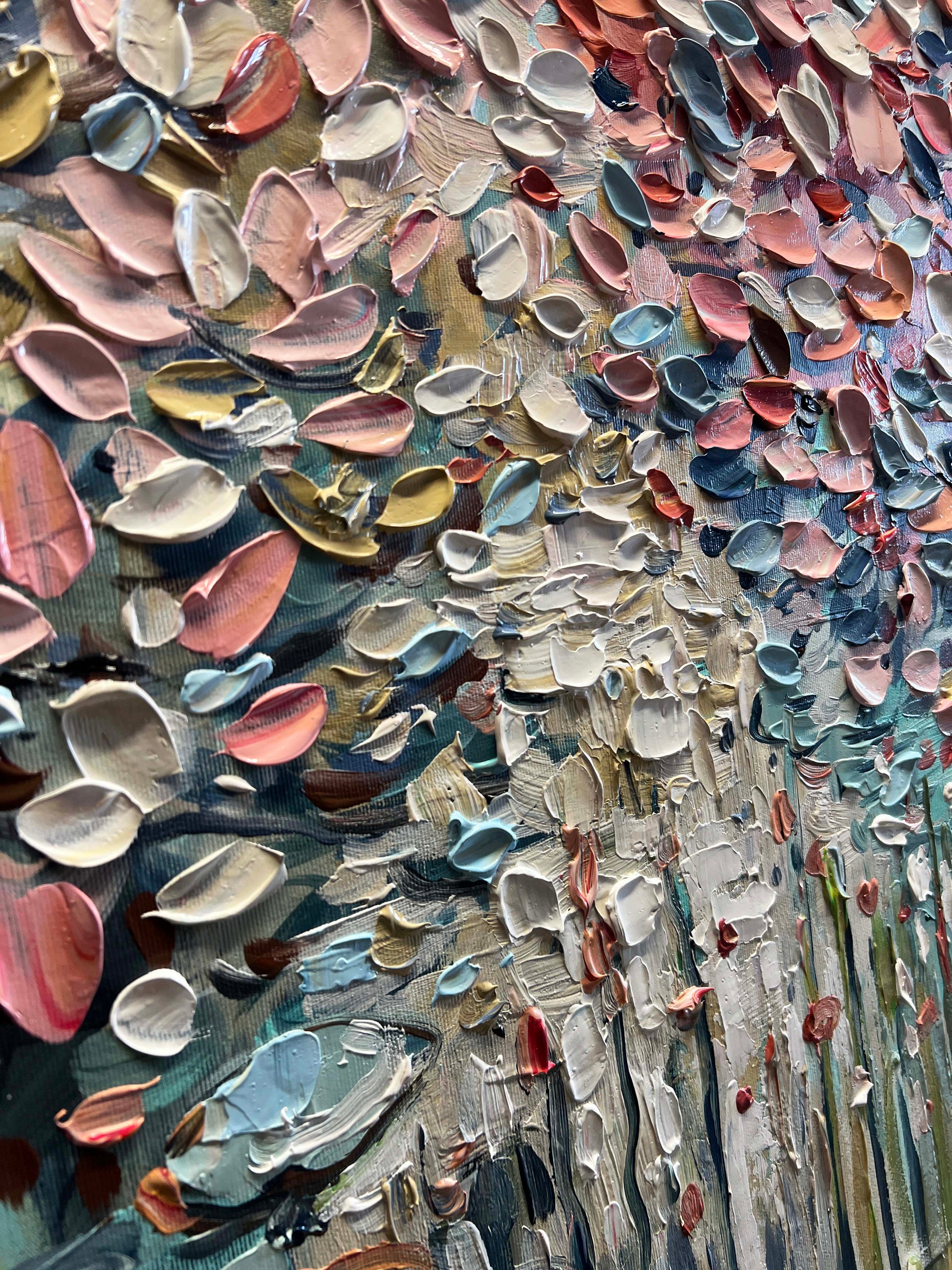This painting captures the enchanting harmony of nature awakening, with vibrant petals dancing gracefully in the air.