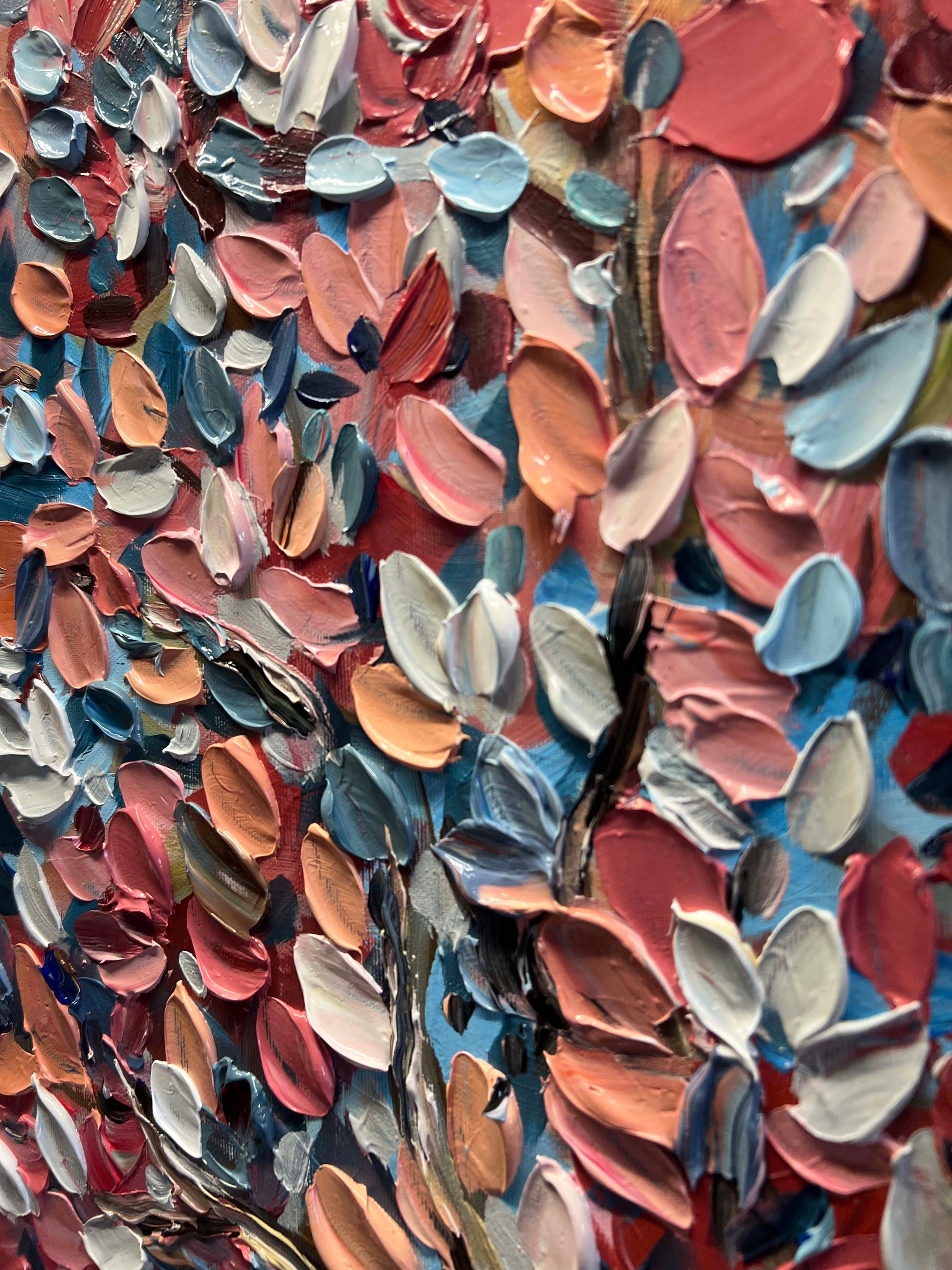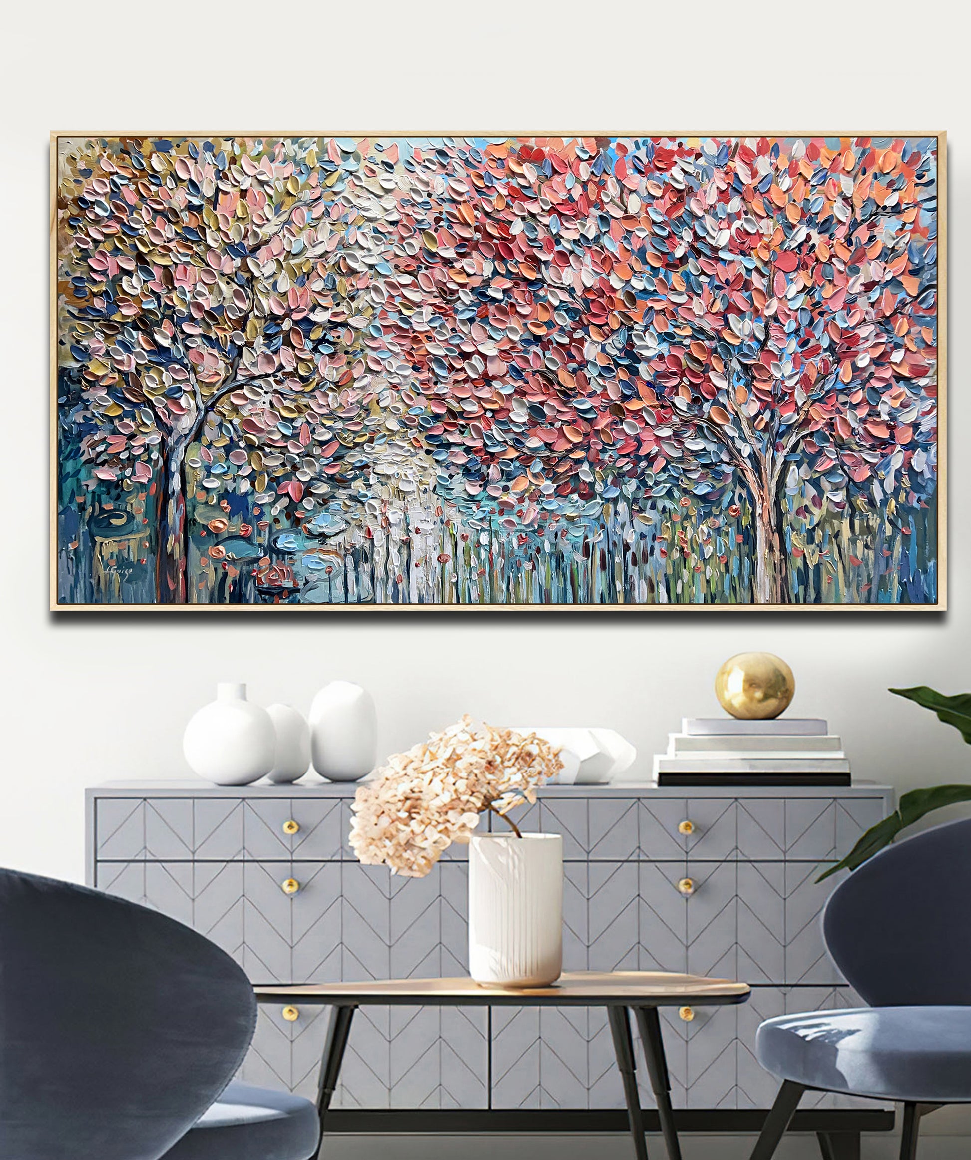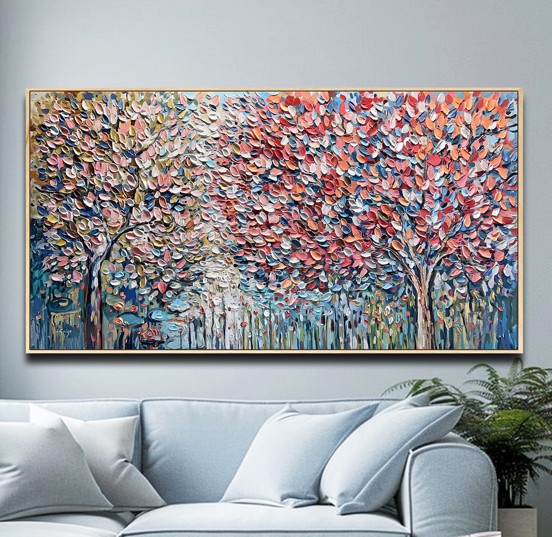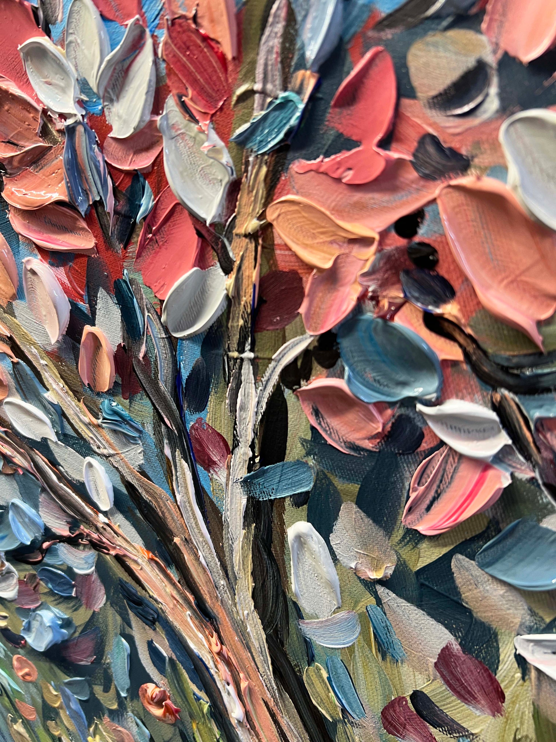 The 2 trees are distinct and unique, each presenting a different color palette: one with soft pinks and creamy whites, the other with warm corals and touches of blue - yet they come together in perfect harmony.