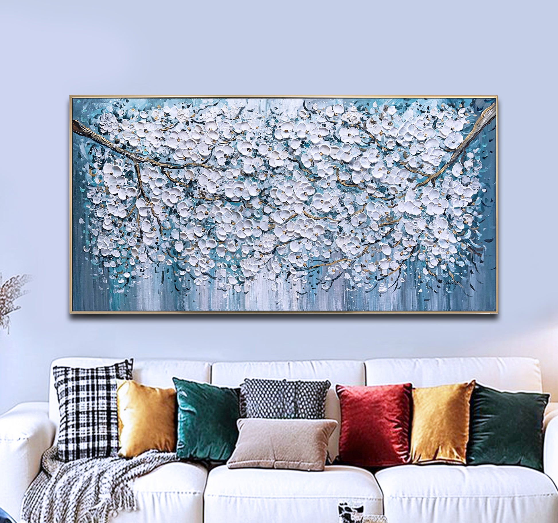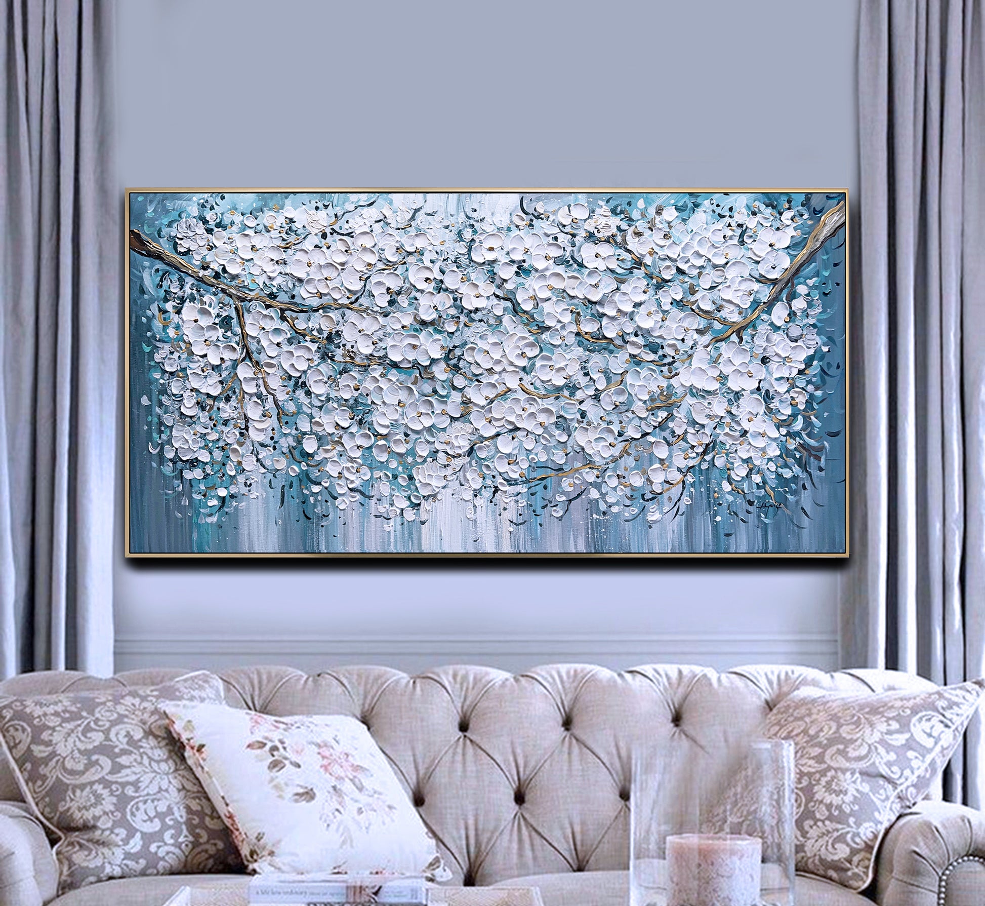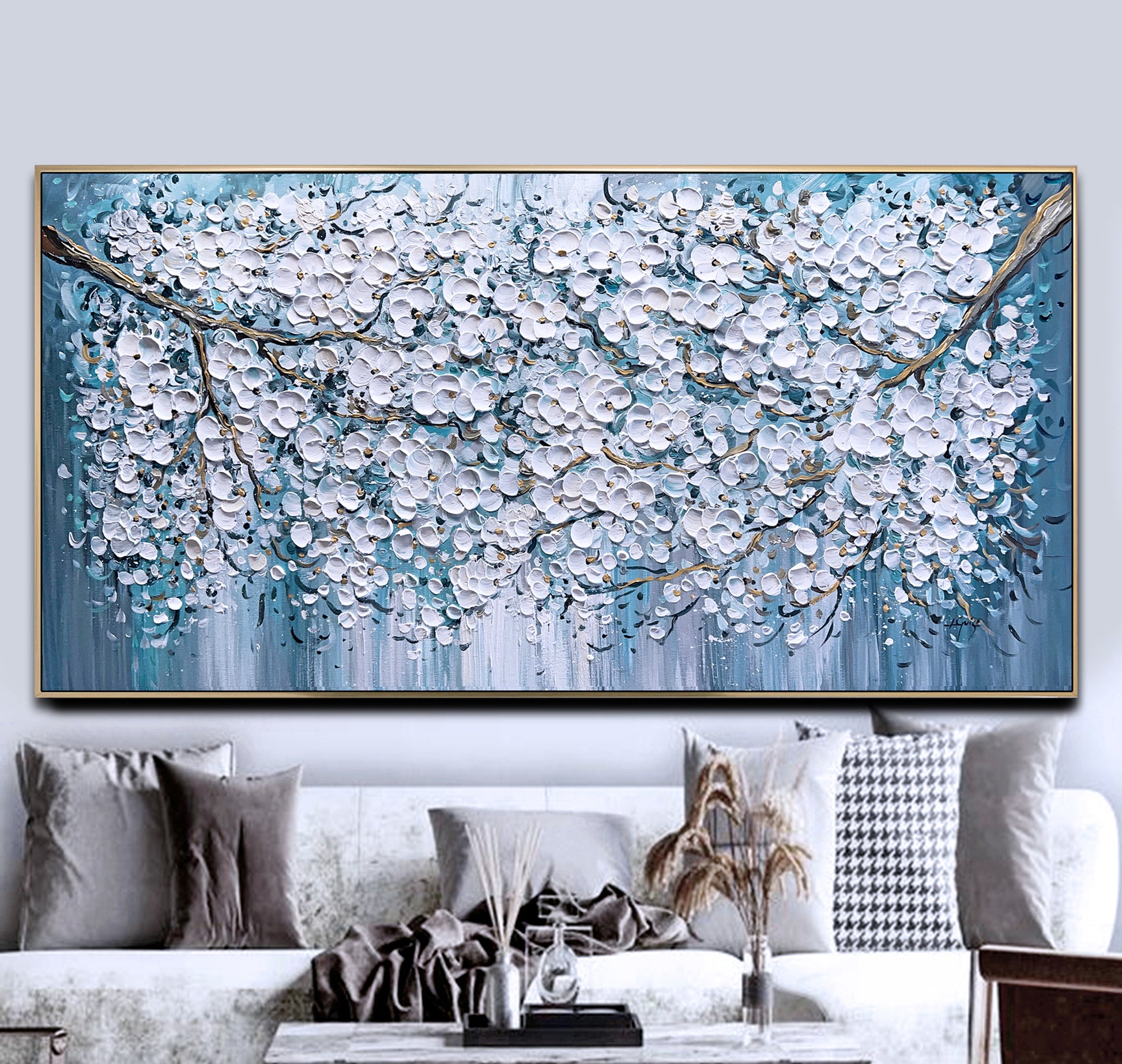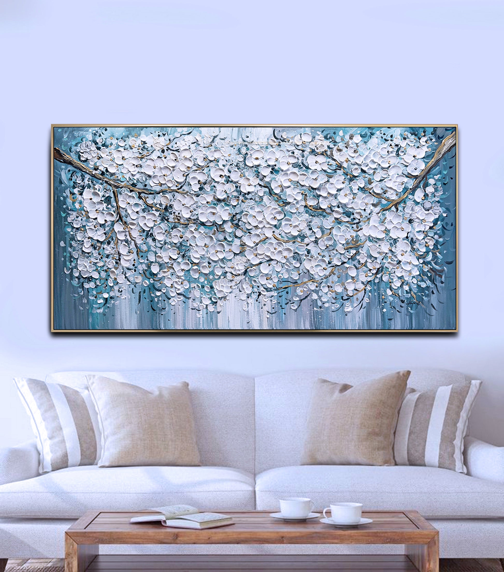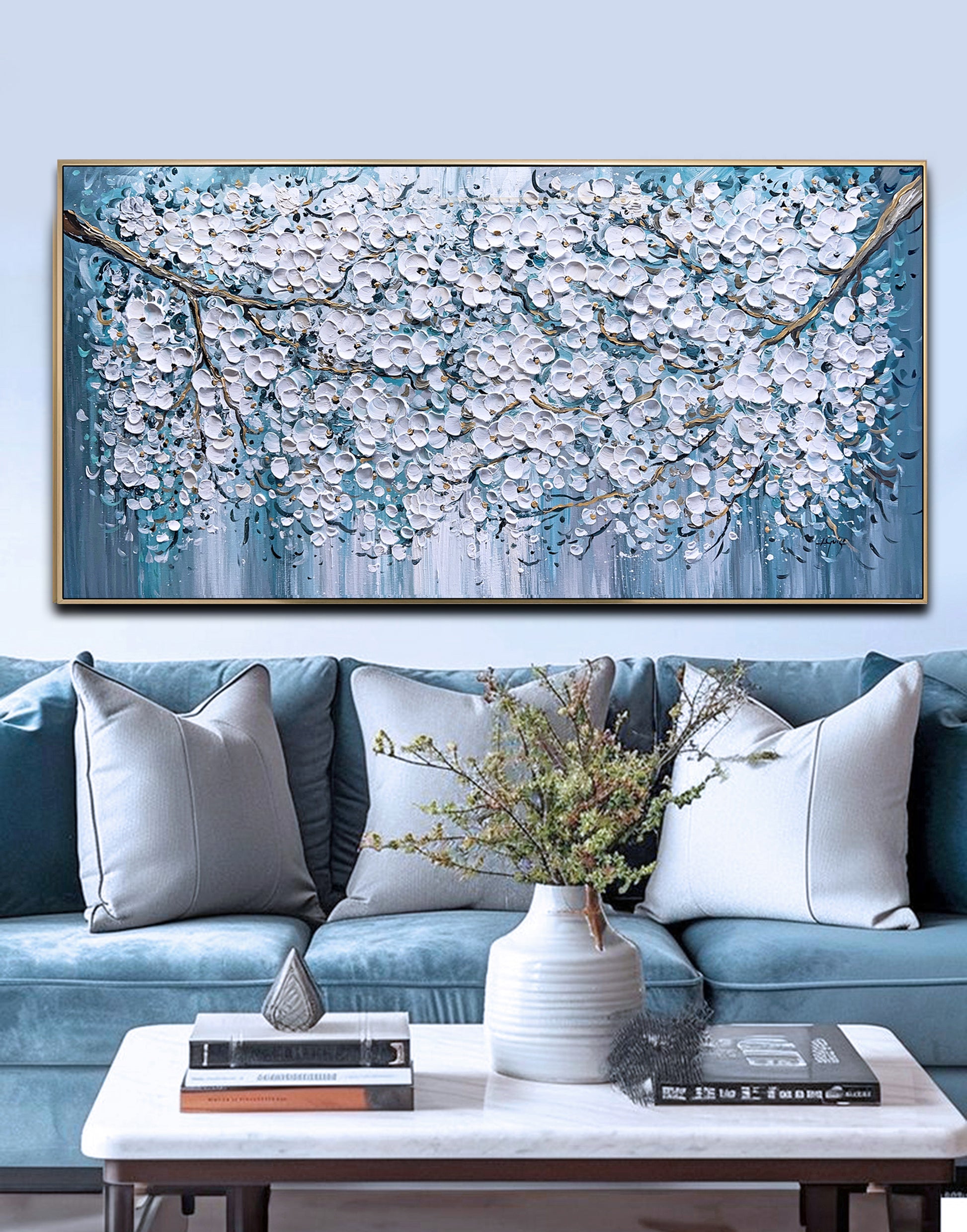 Frame the painting in an elegant gold frame to balance the cool blue palette with its warm metallic accent, elevating the piece into a sophisticated centerpiece for any interior.