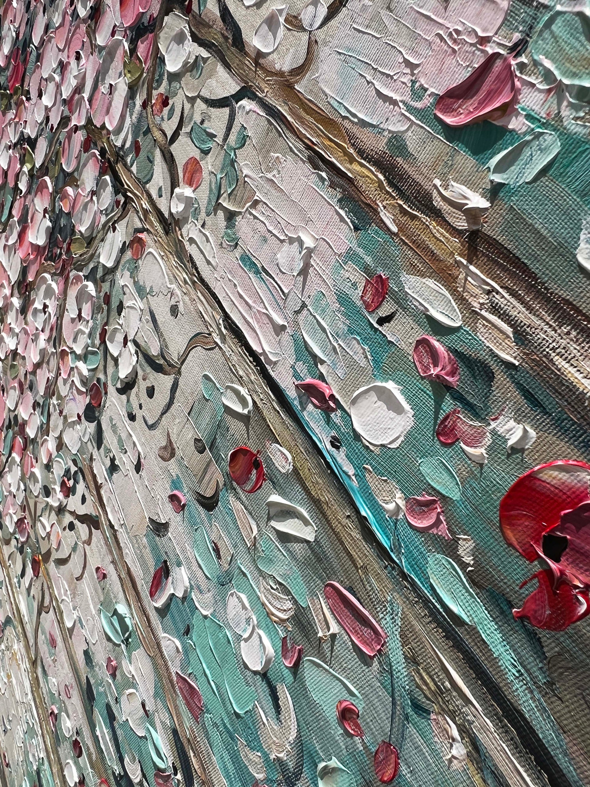 Each textured brushstroke adds a sense of movement and depth, as if the petals are fluttering gently in a spring breeze.