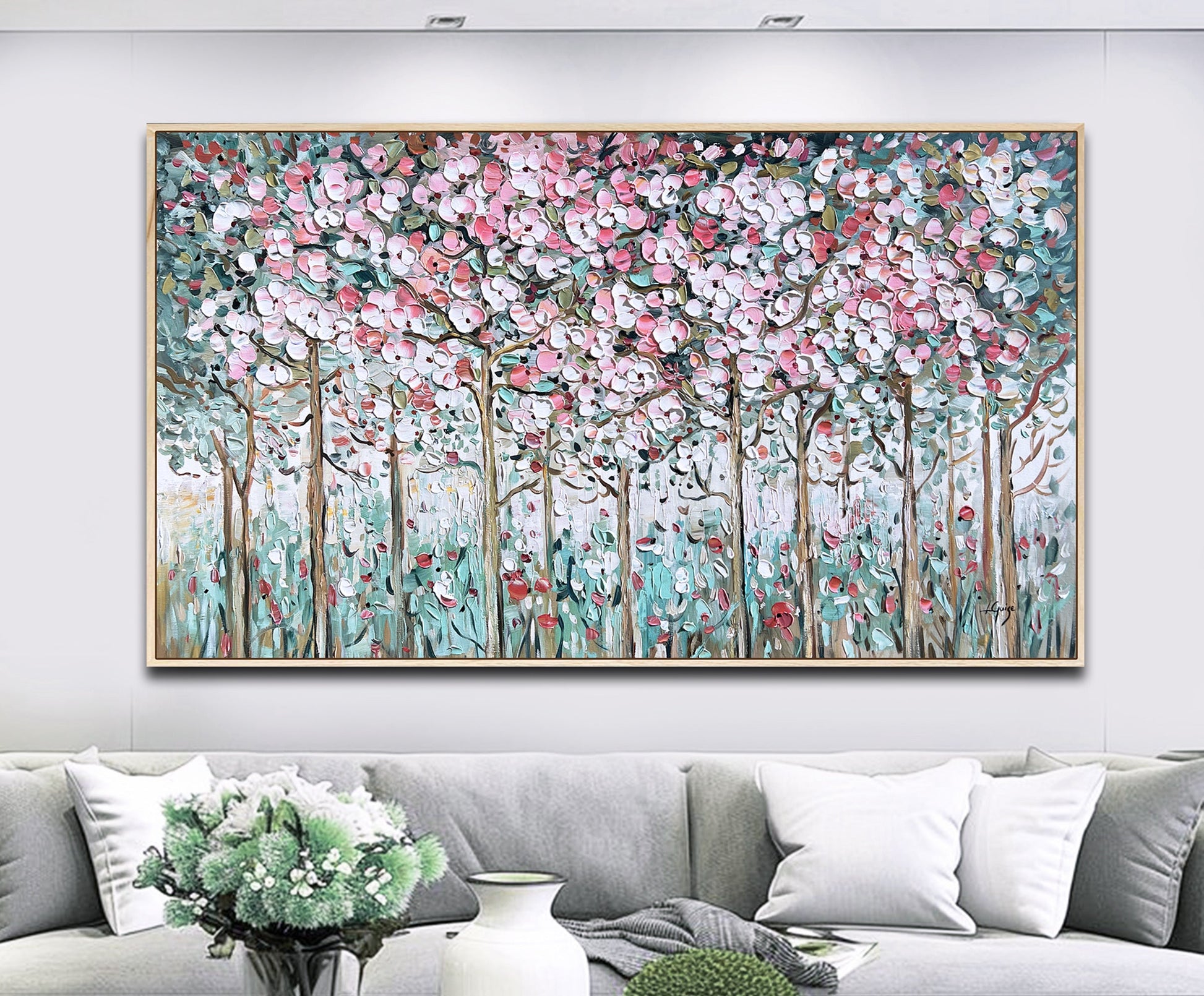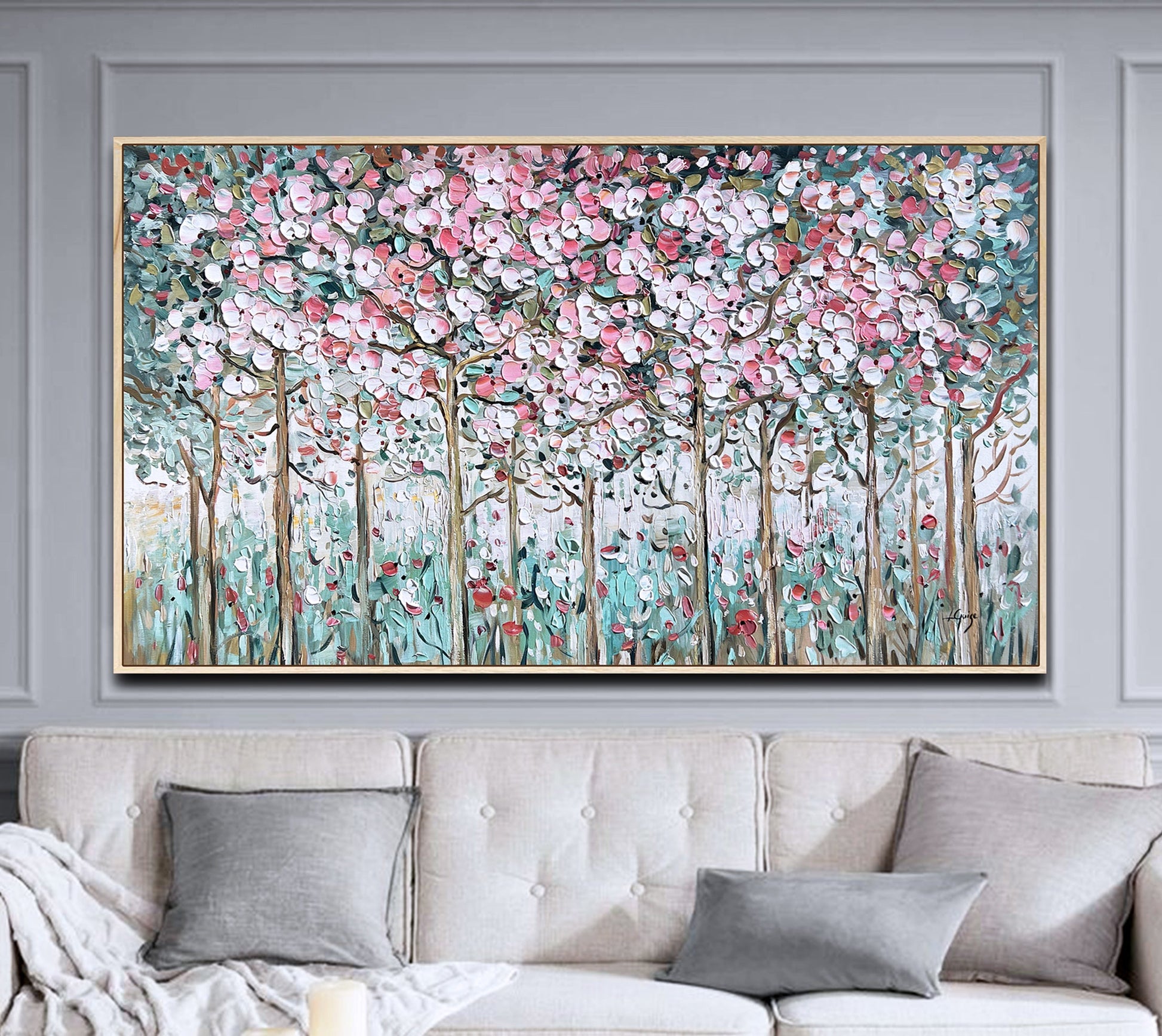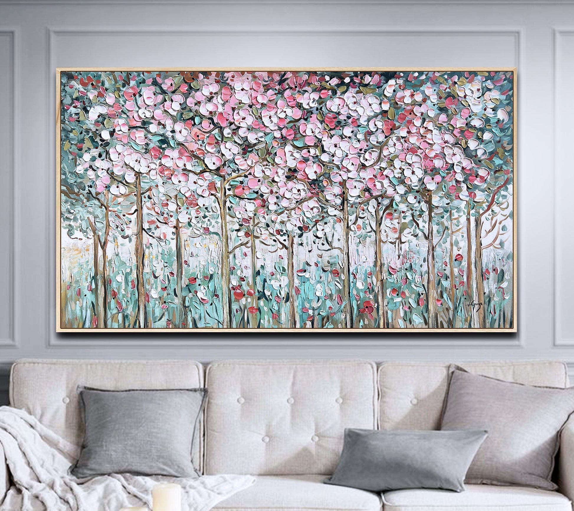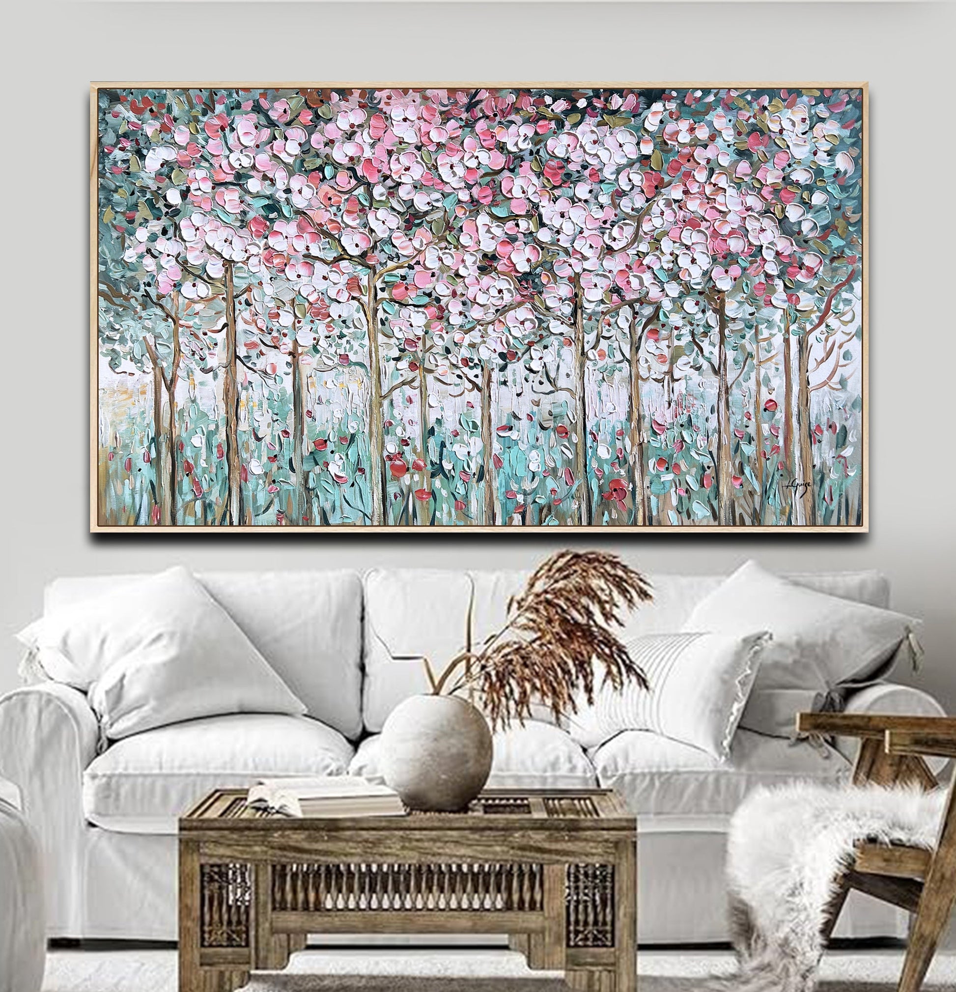 Choose a natural wood frame to ground the painting and enhance its organic spirit in any space.