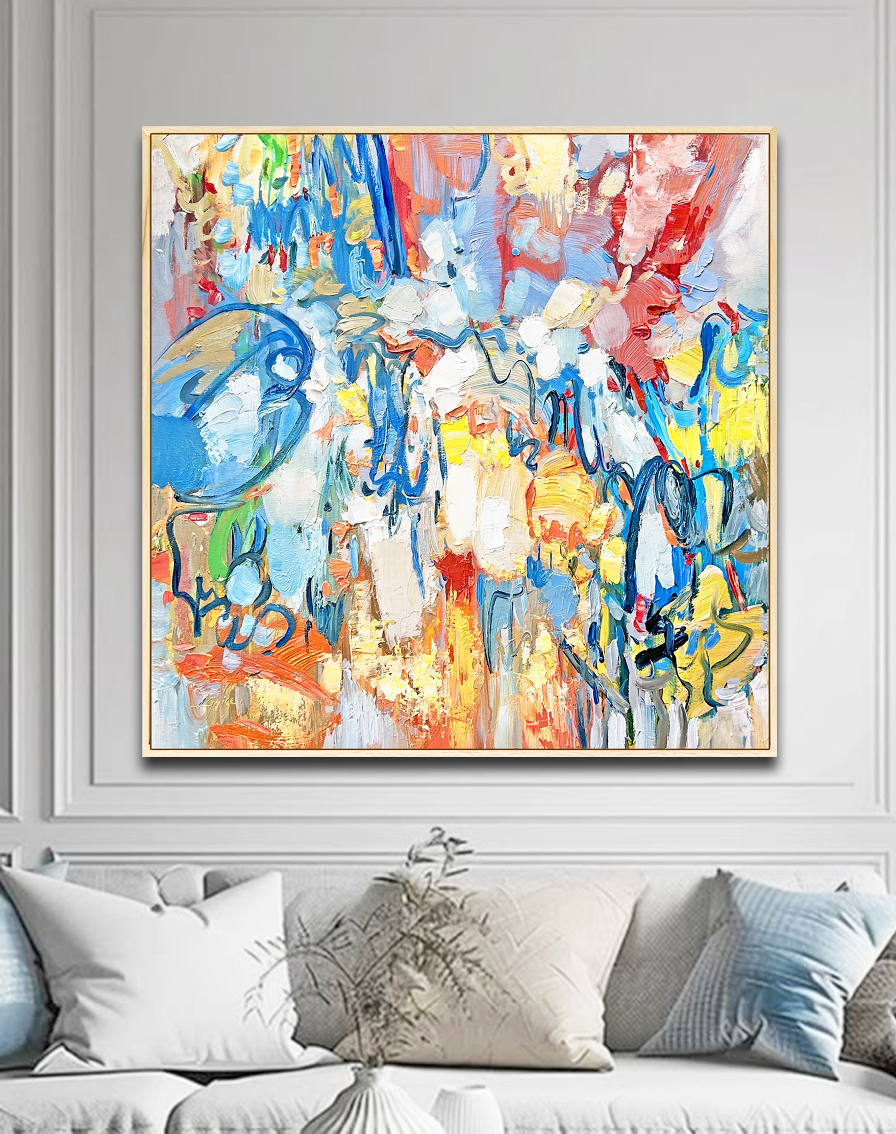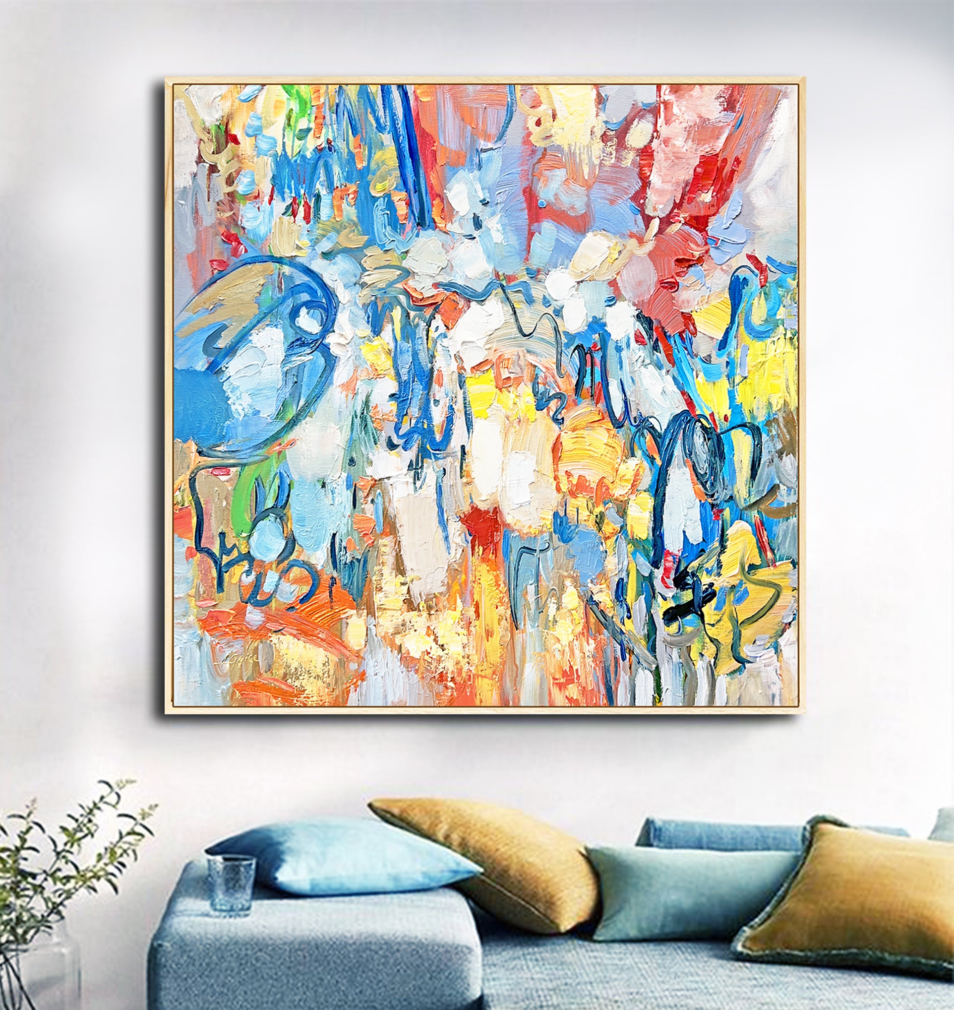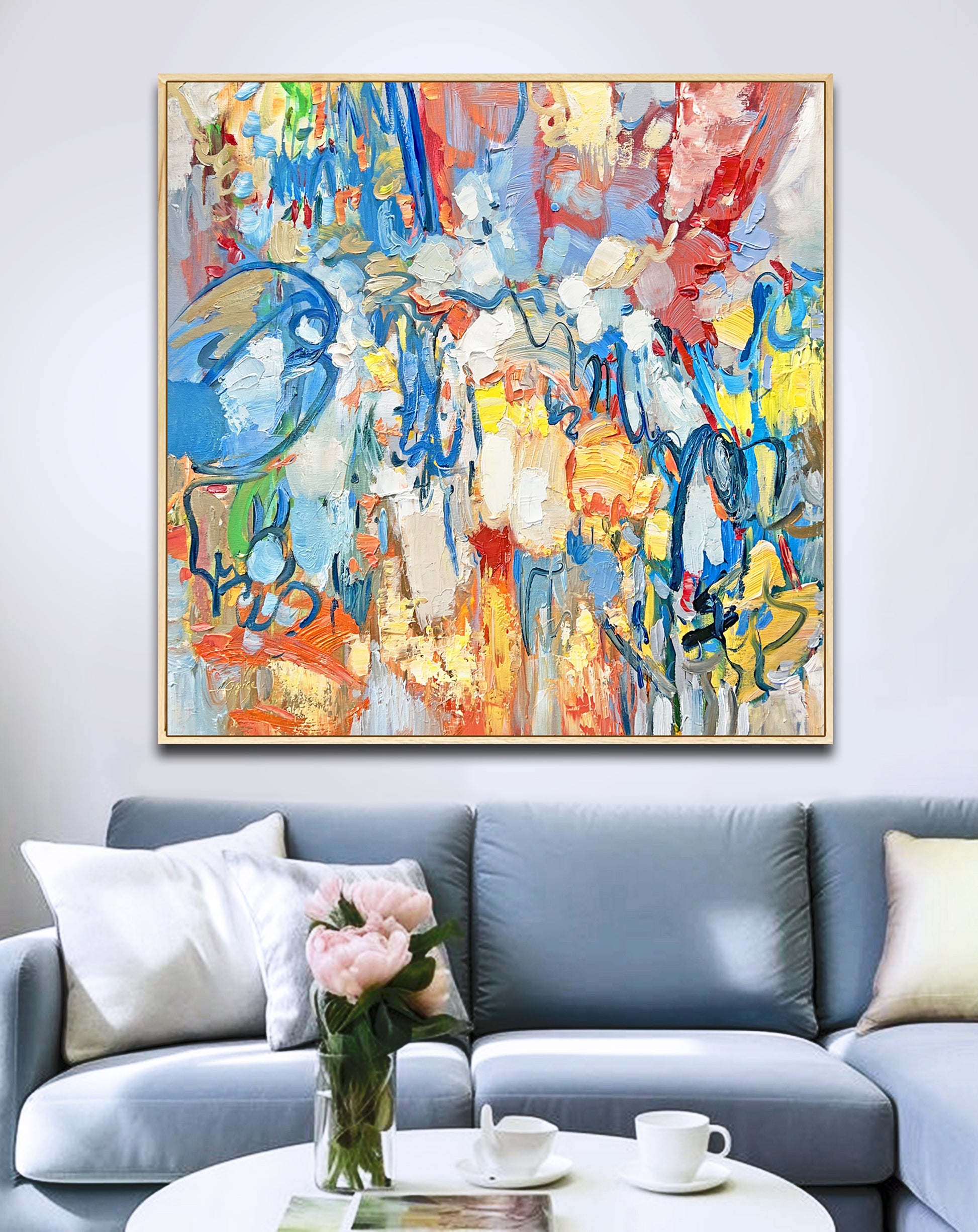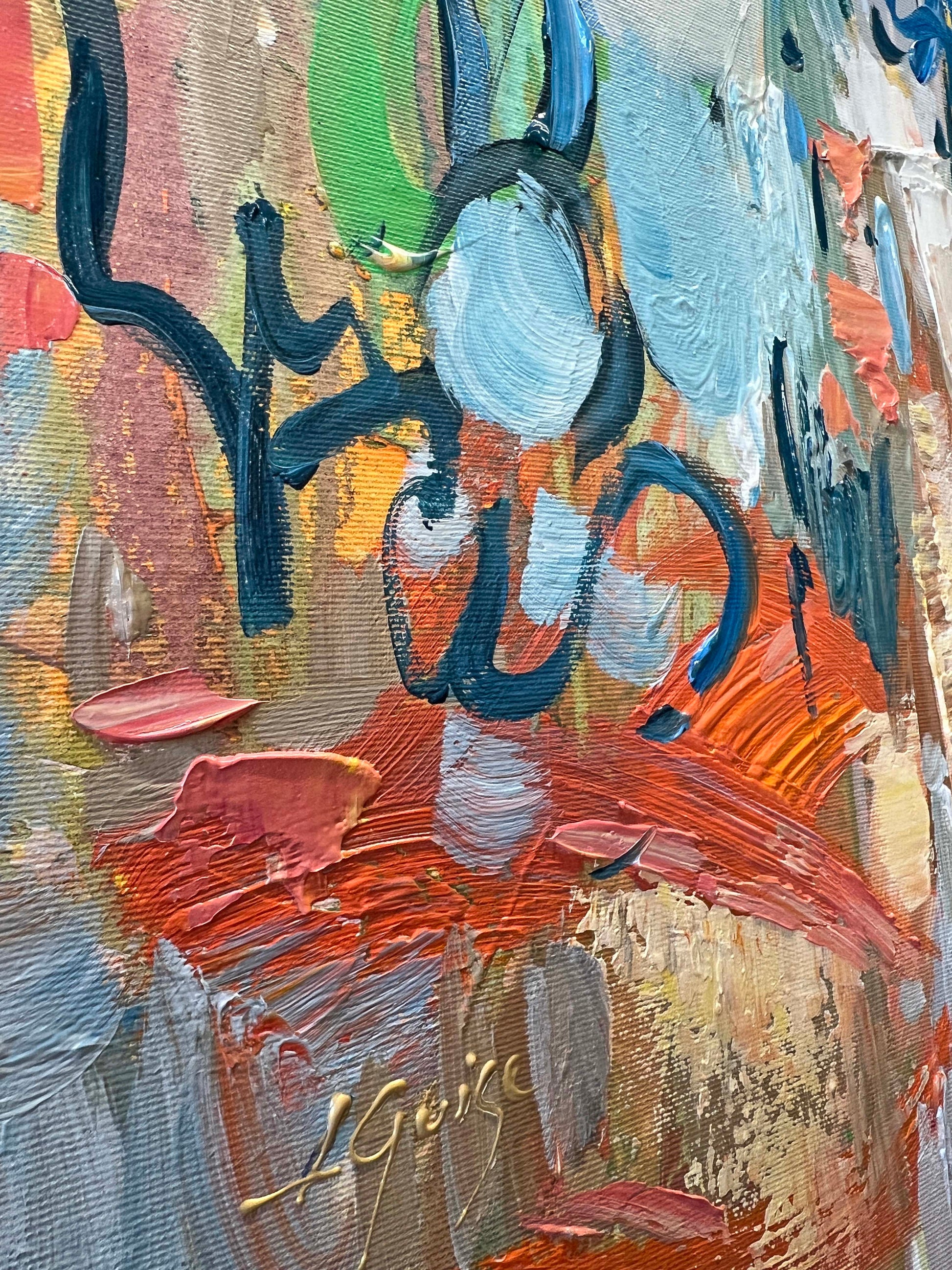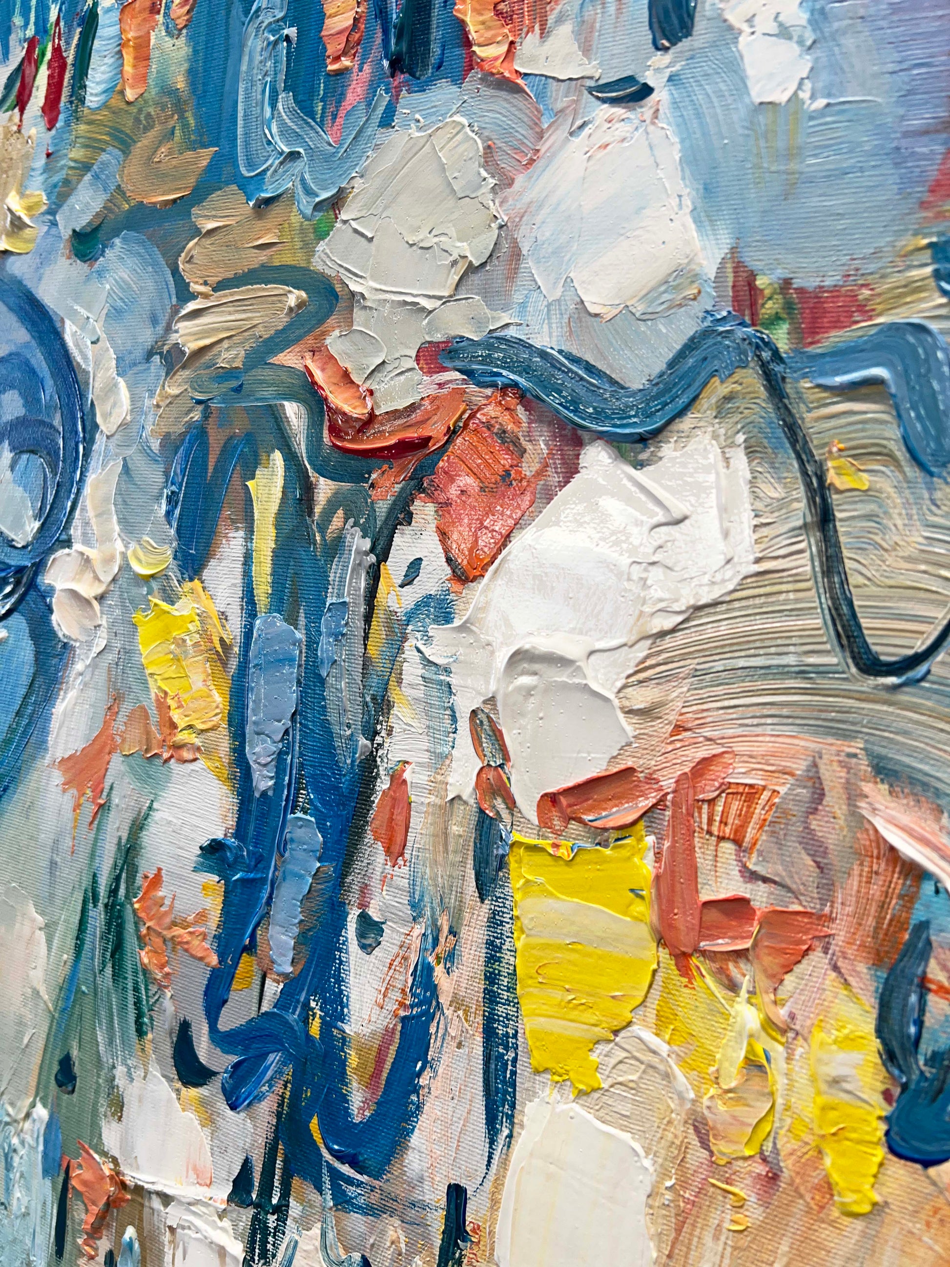 “Fresh Air” is a vibrant abstract painting that radiates energy and spontaneity through its fresh palette and dynamic composition.