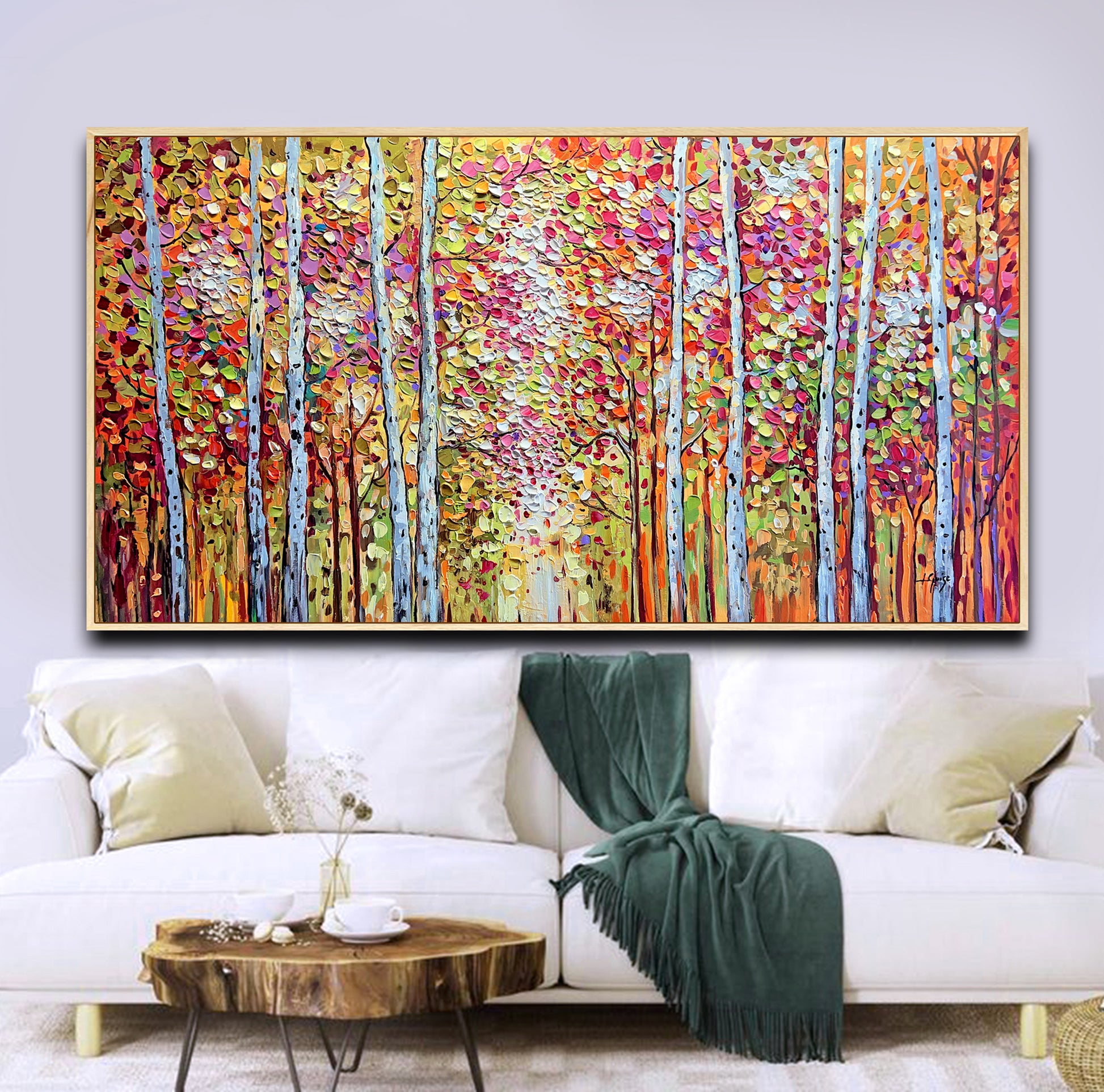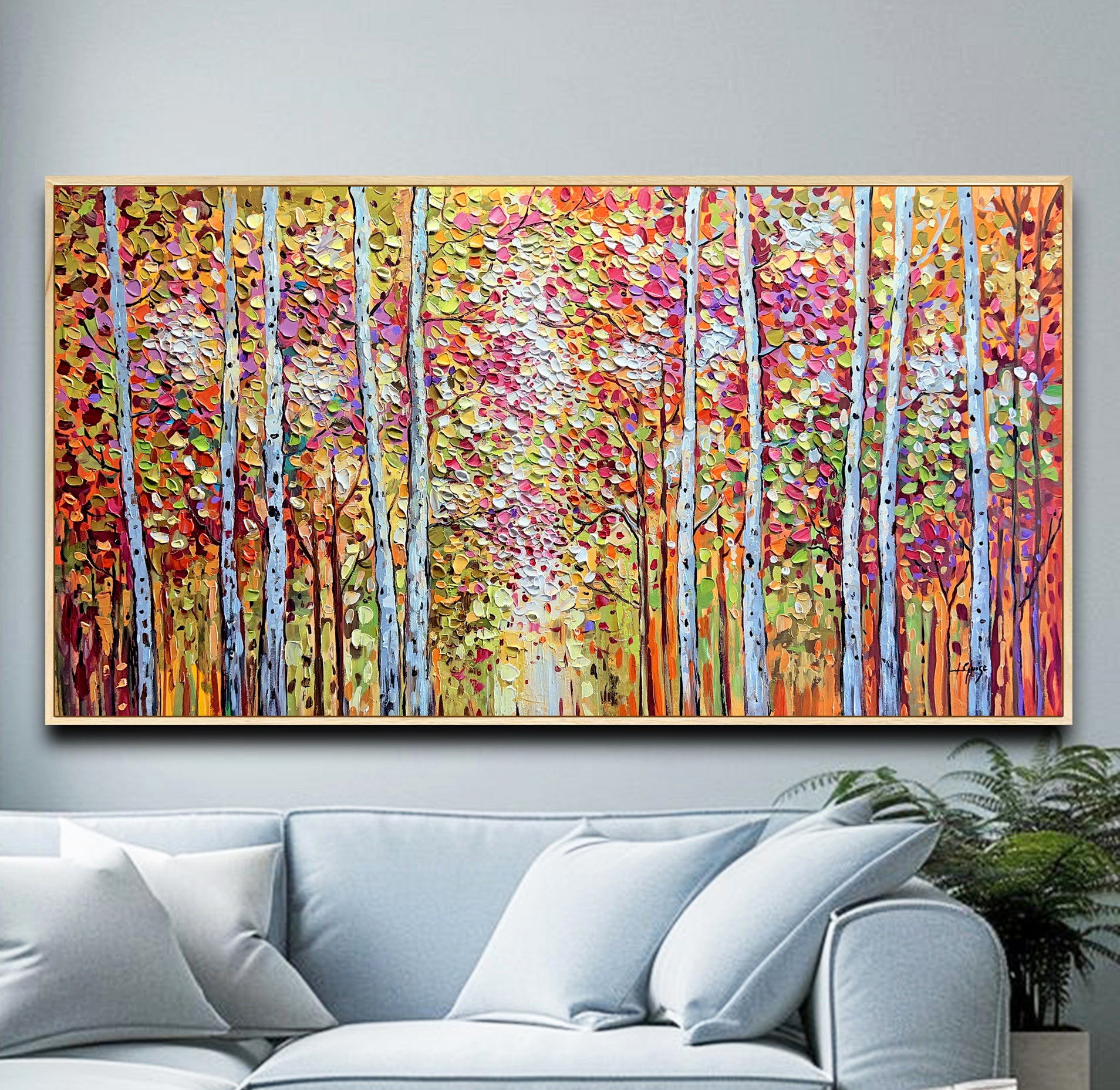 Each brushstroke is rich with texture, bringing the foliage to life as if a gentle breeze is rustling through the leaves.