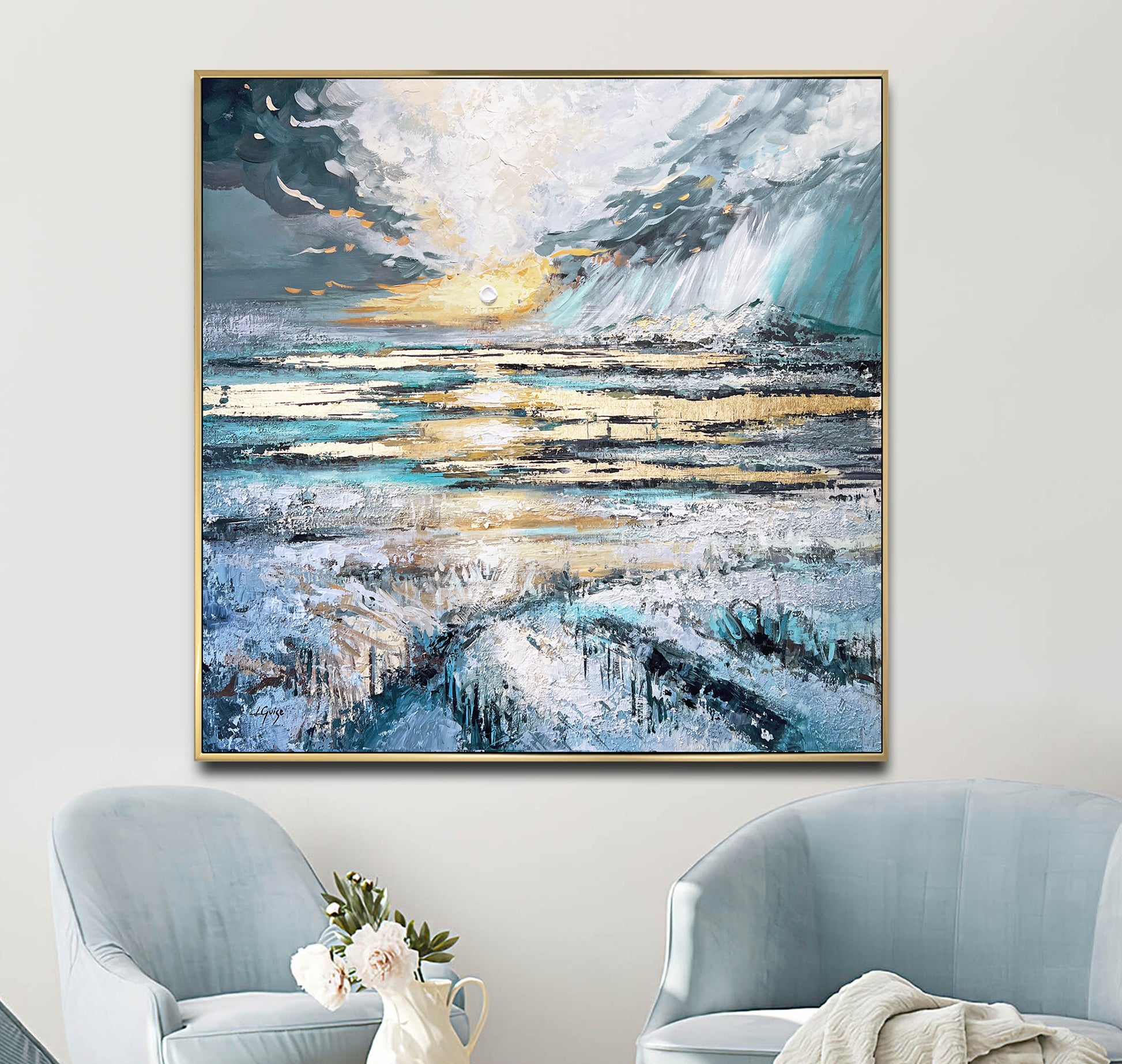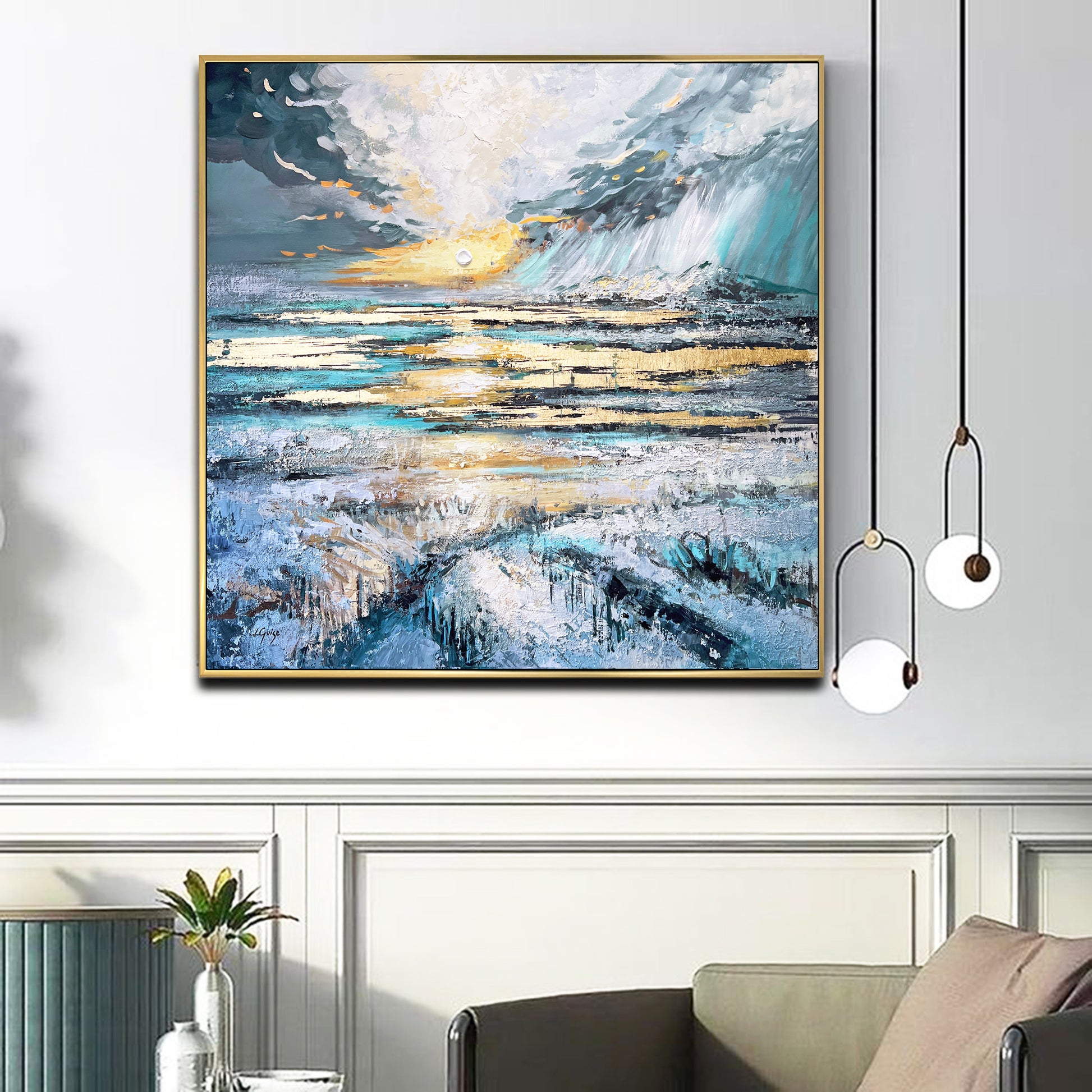 Choose a gold frame to echo the shimmering golden light within the painting, enhancing its warmth and bringing out its radiant brilliance.