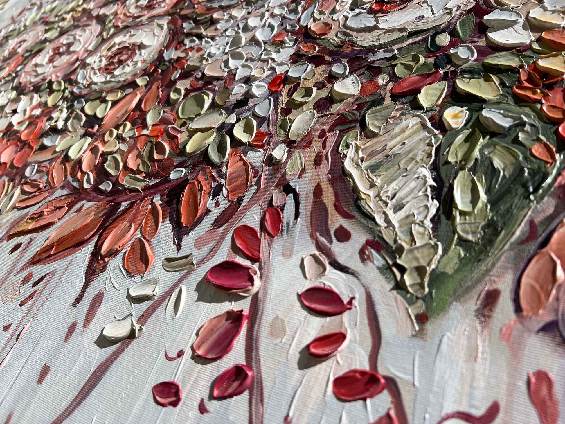 The painting "Holiday Blooms", is a festive and inviting piece that radiates warmth and seasonal cheer.