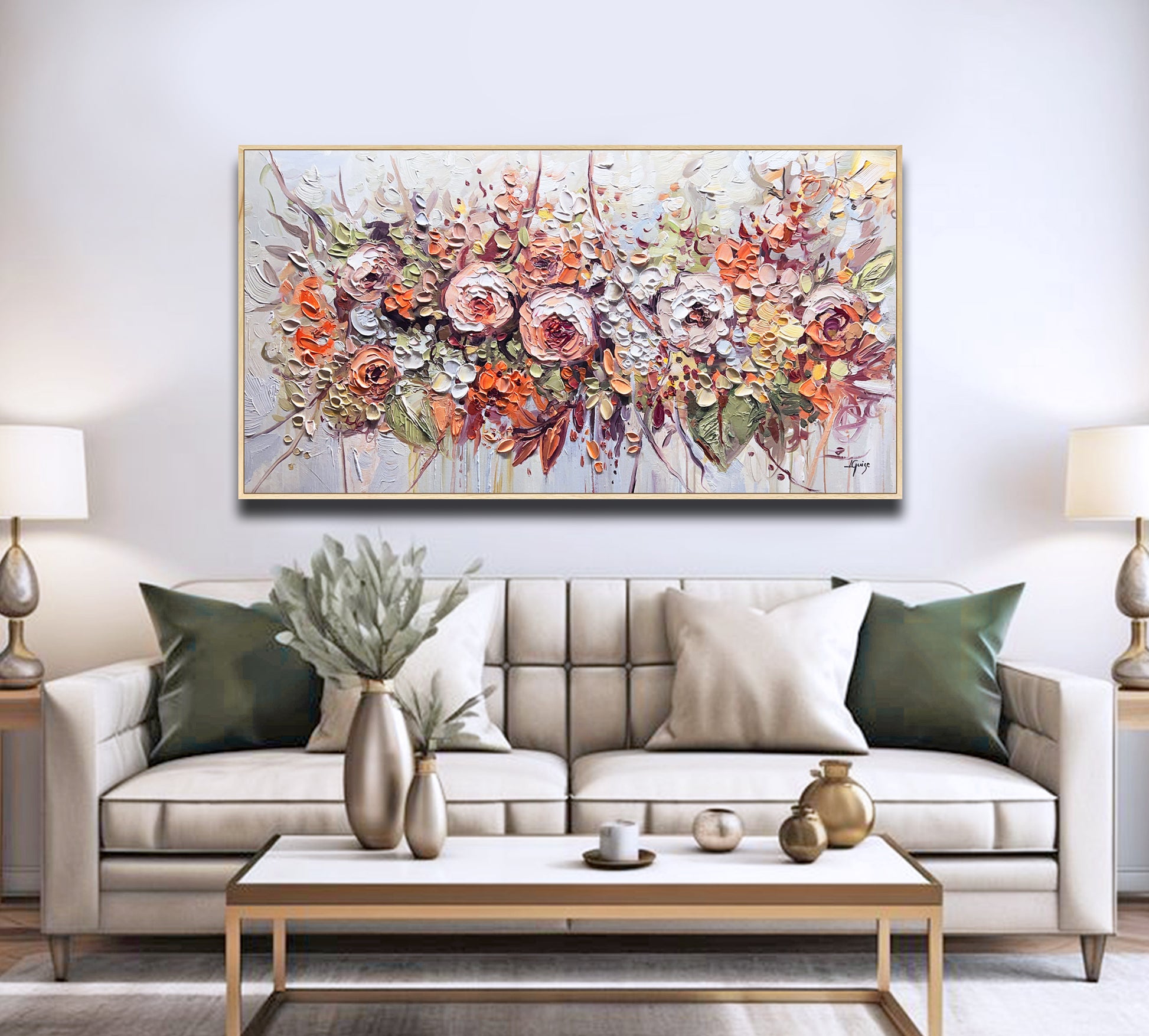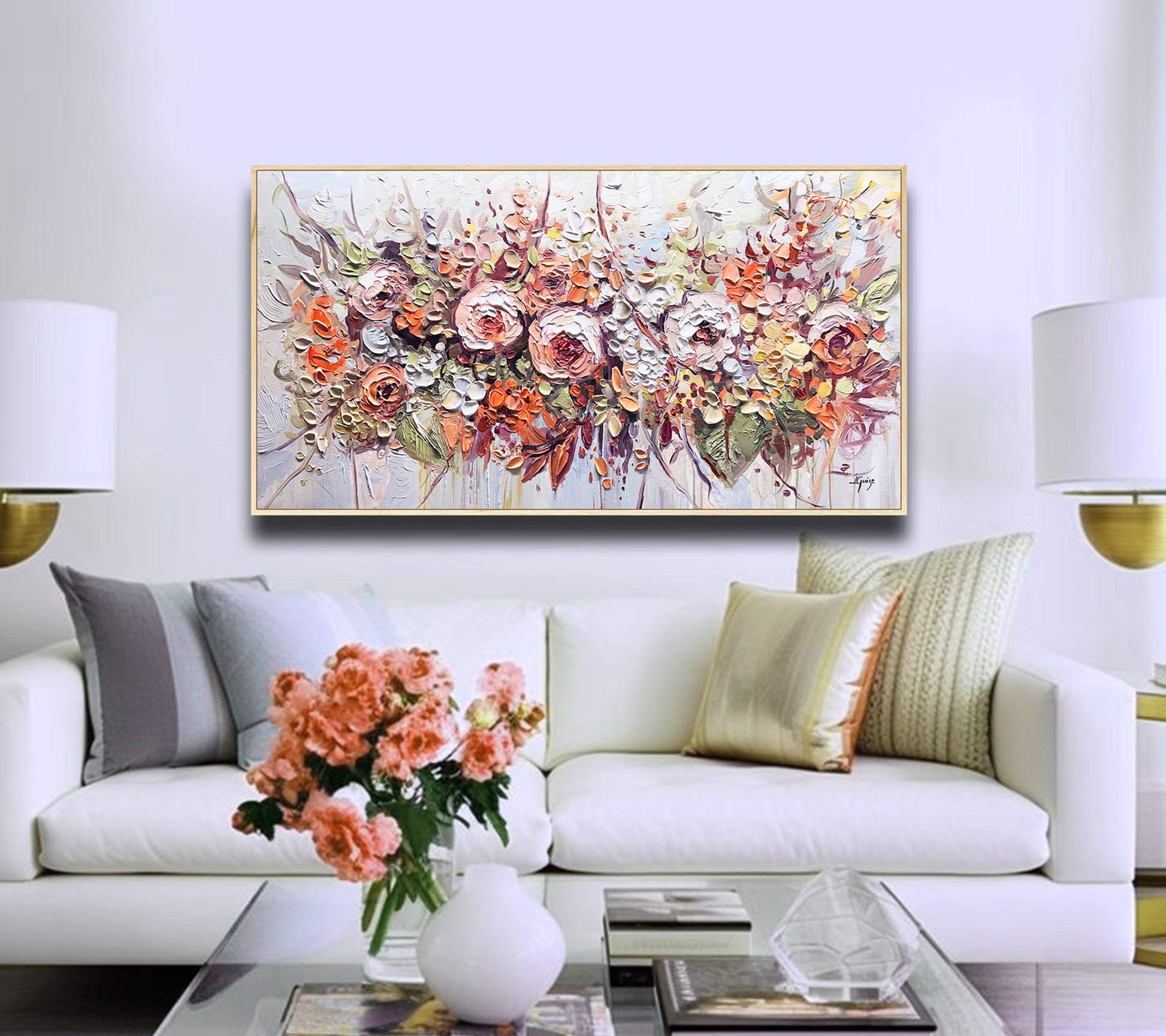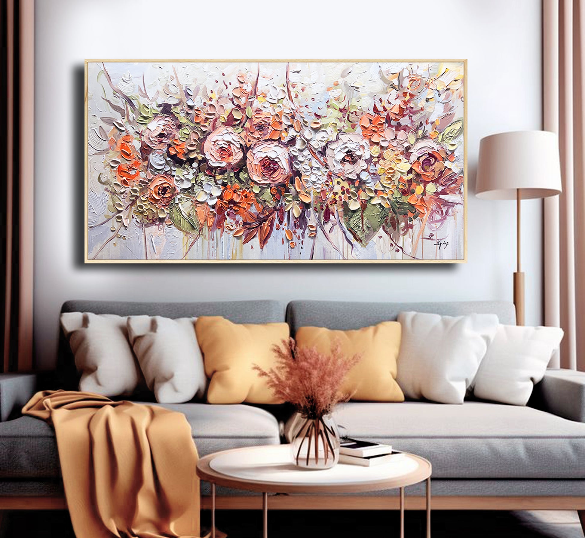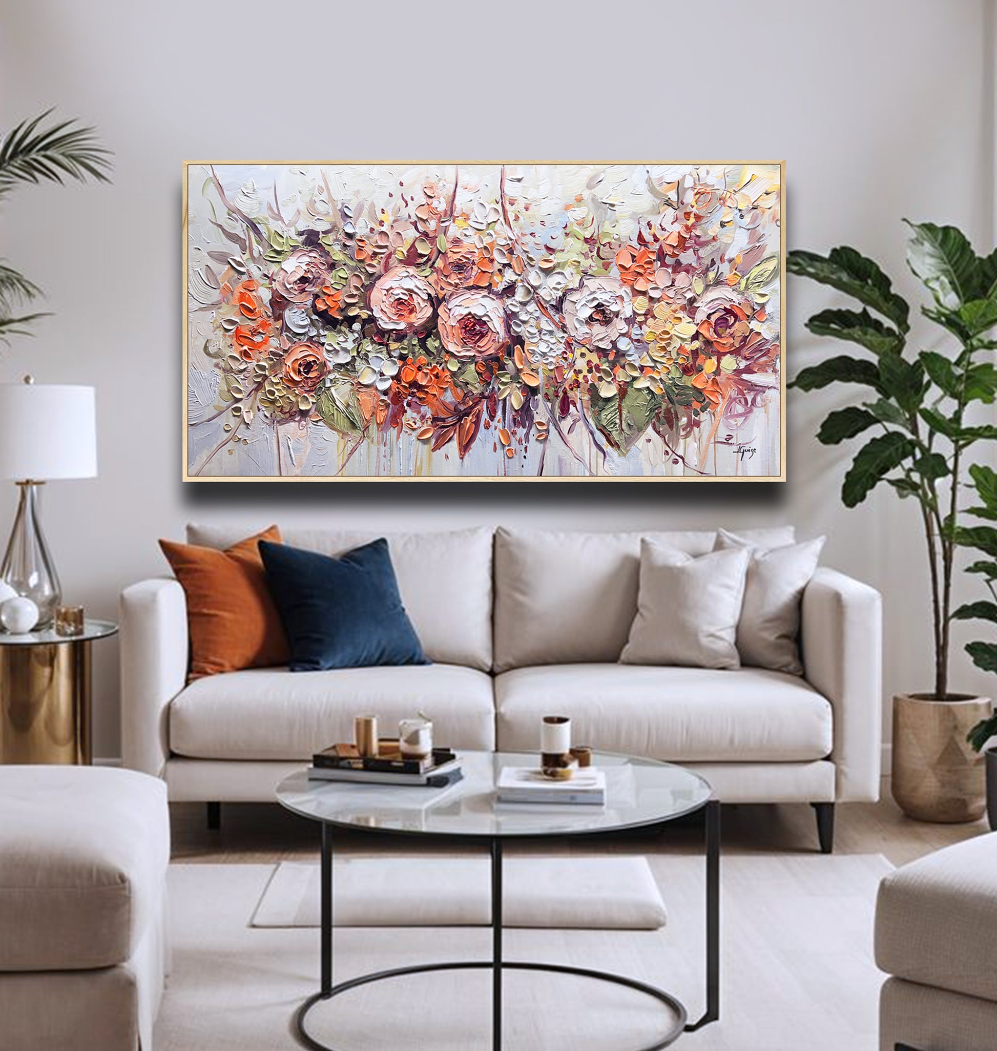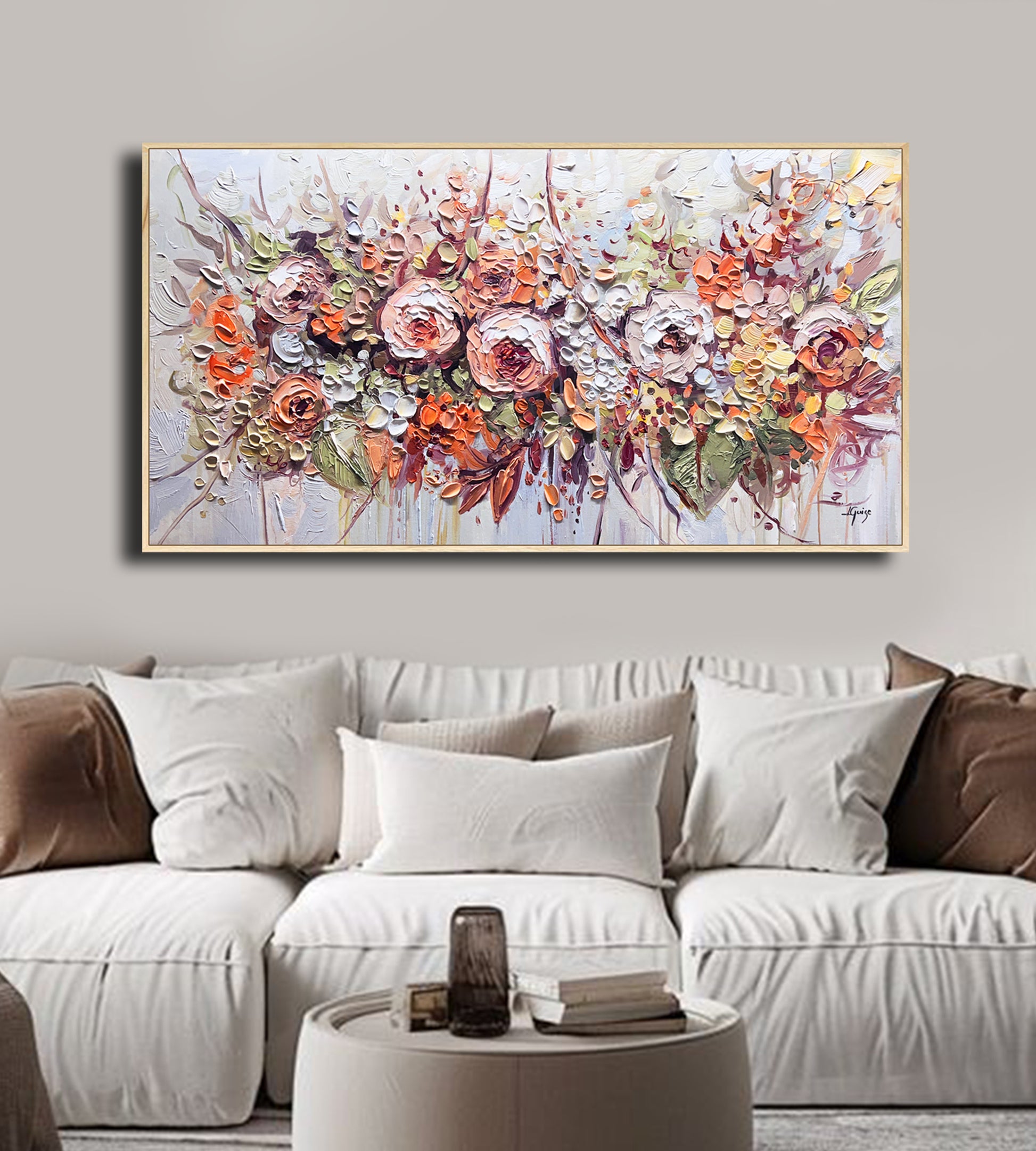 The textured brushstrokes add depth and vibrancy, giving the floral elements a lively, tactile quality.