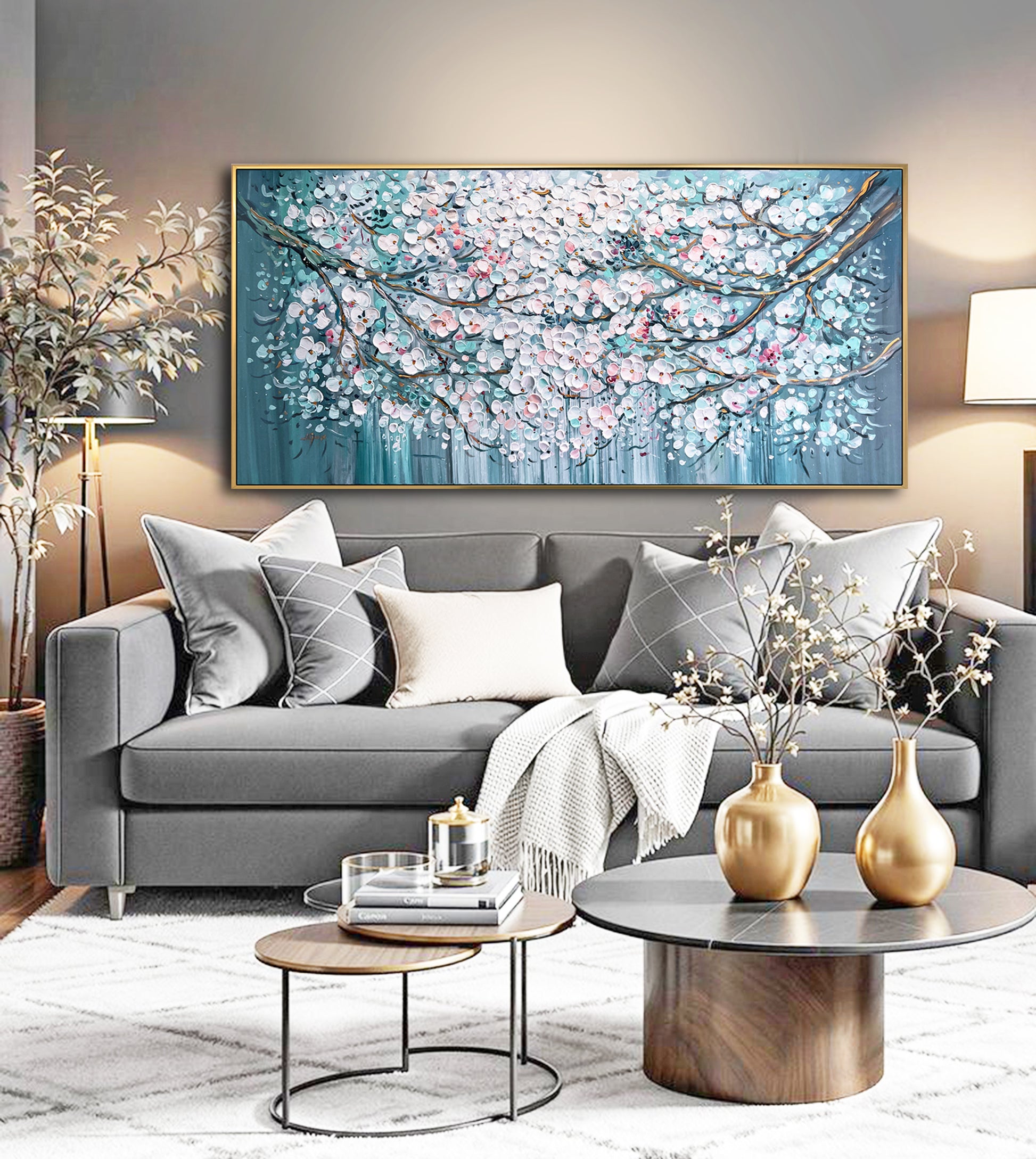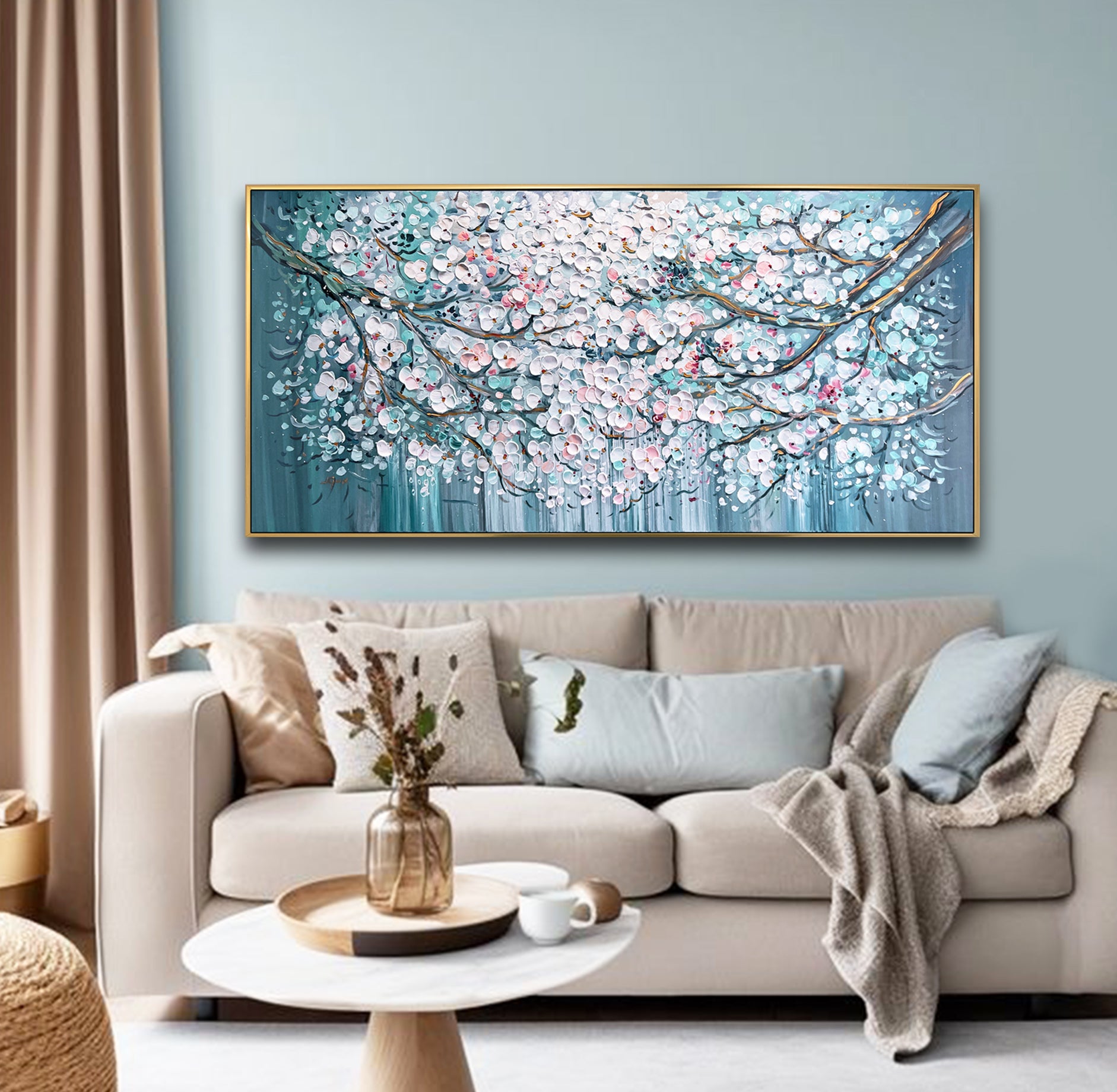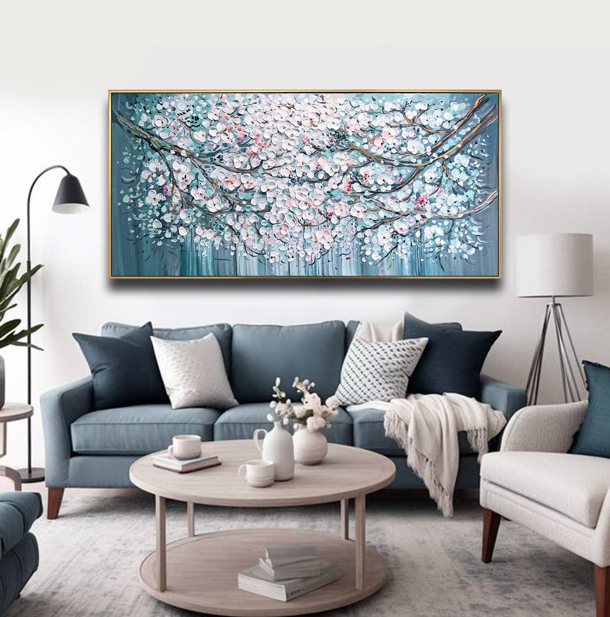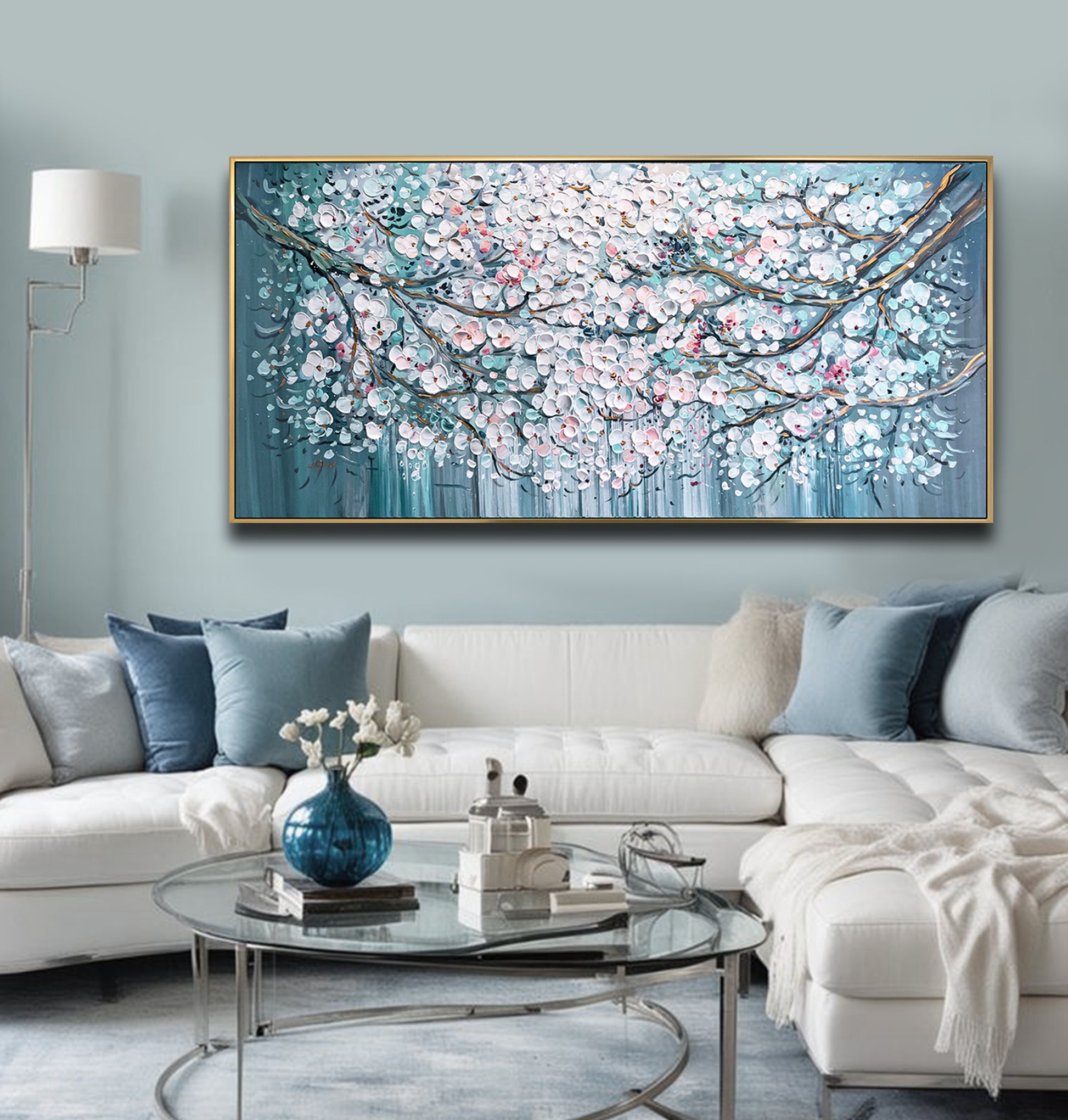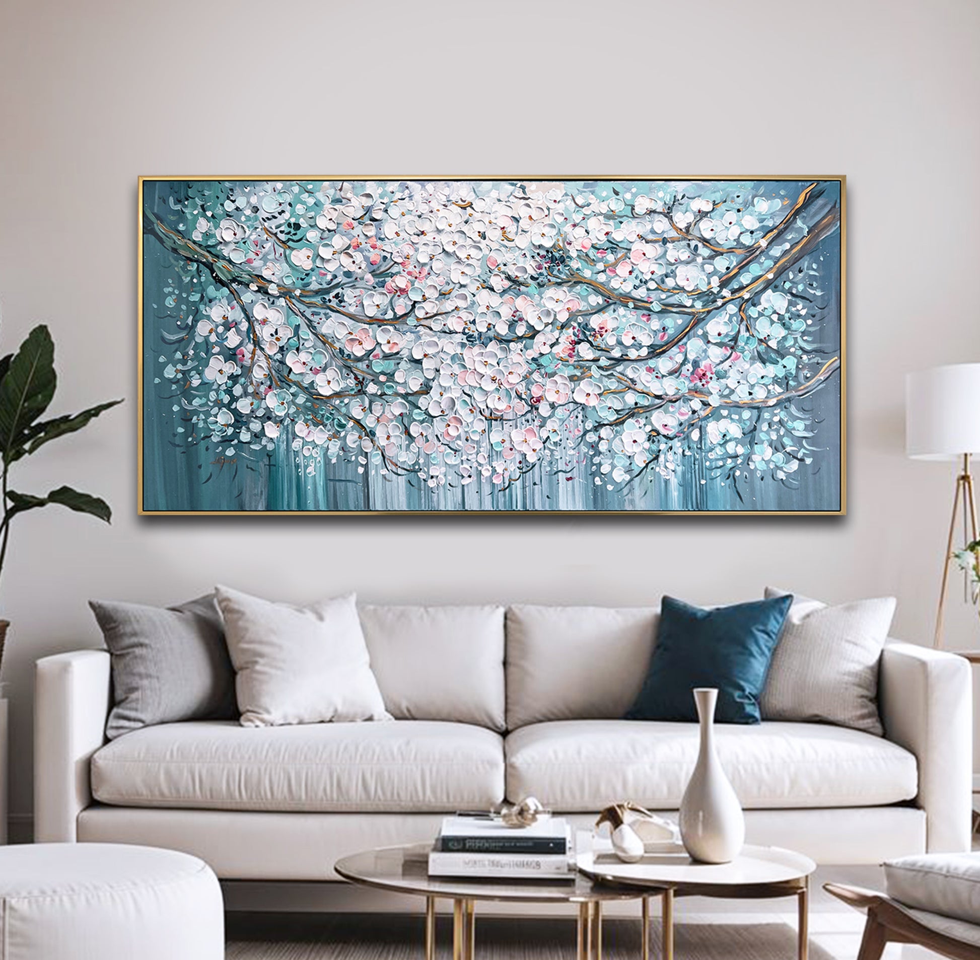 In this painting, textured techniques has been used to bring the blossoms to life, giving them a three-dimensional quality that you can feel.
