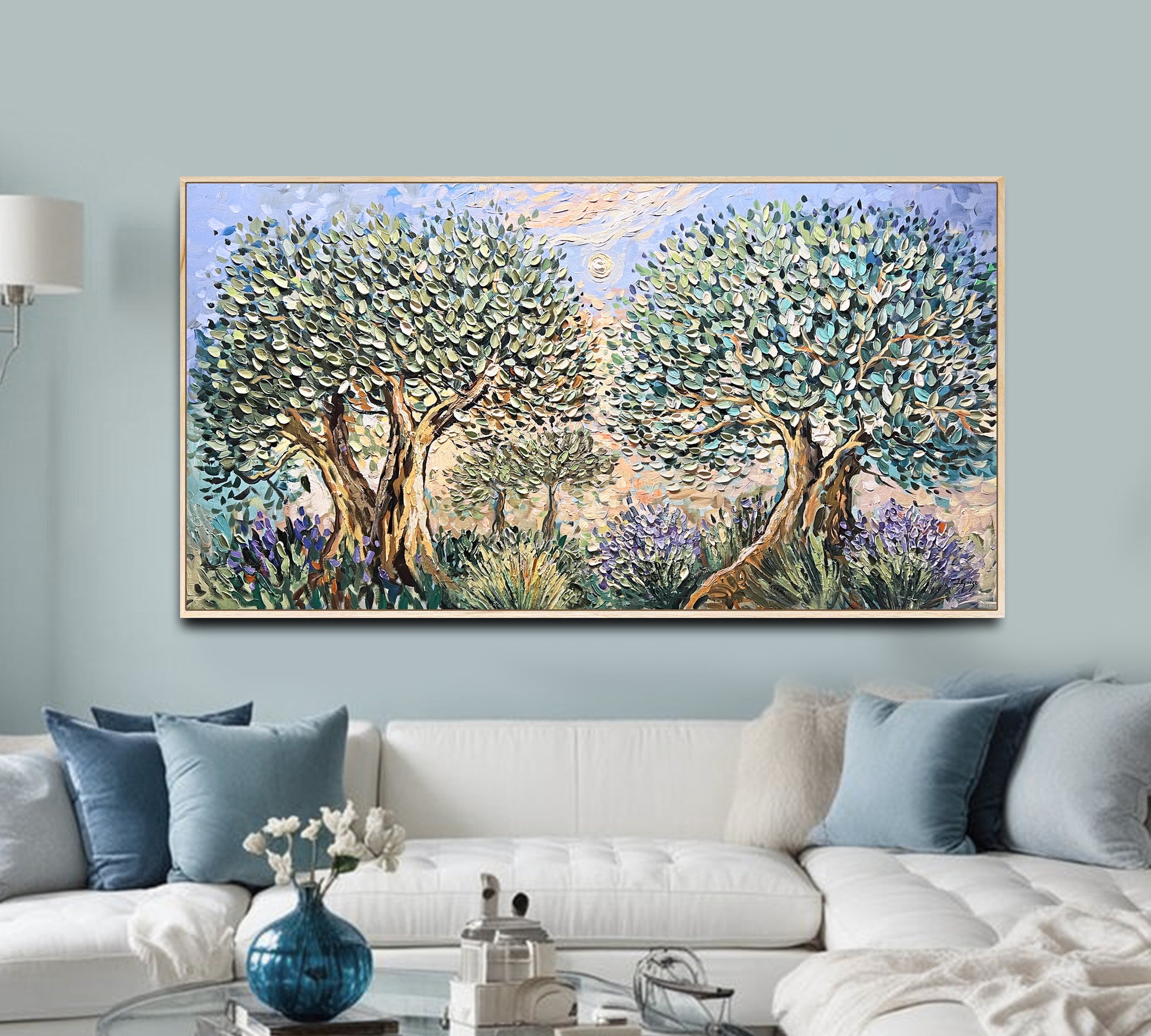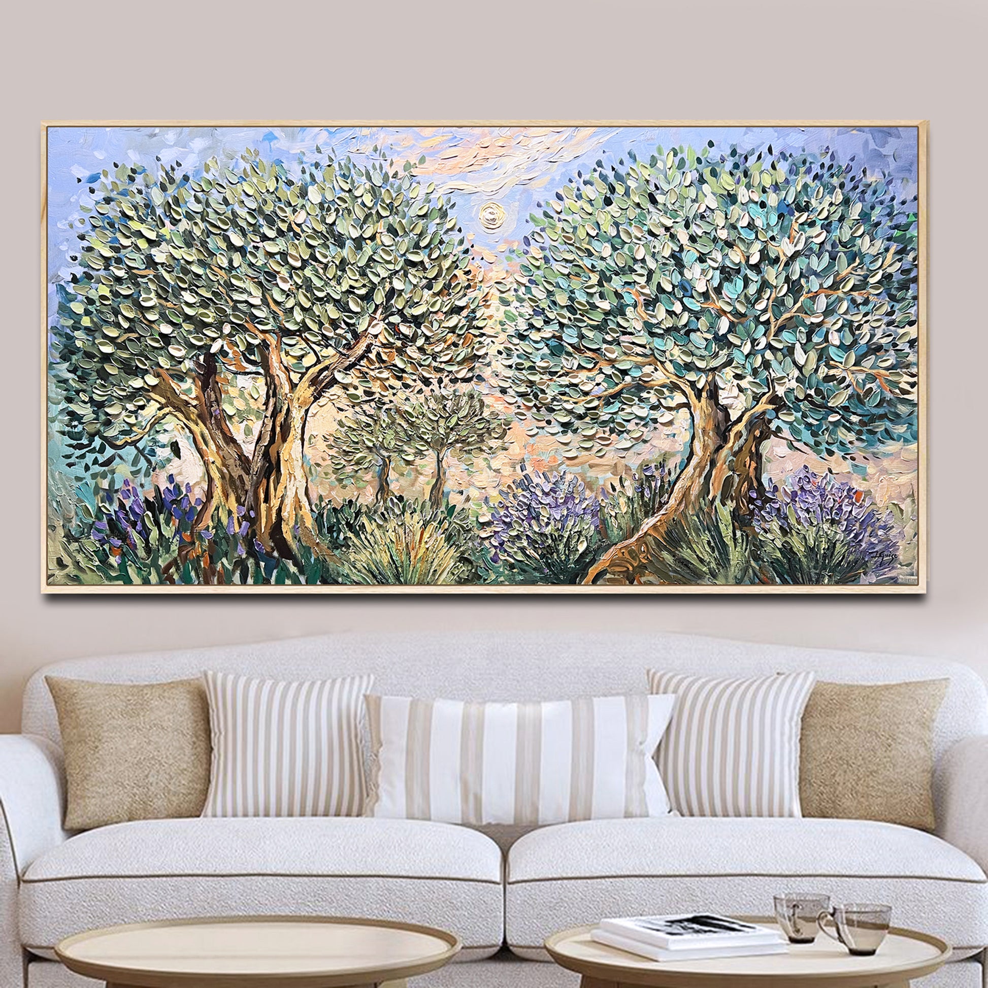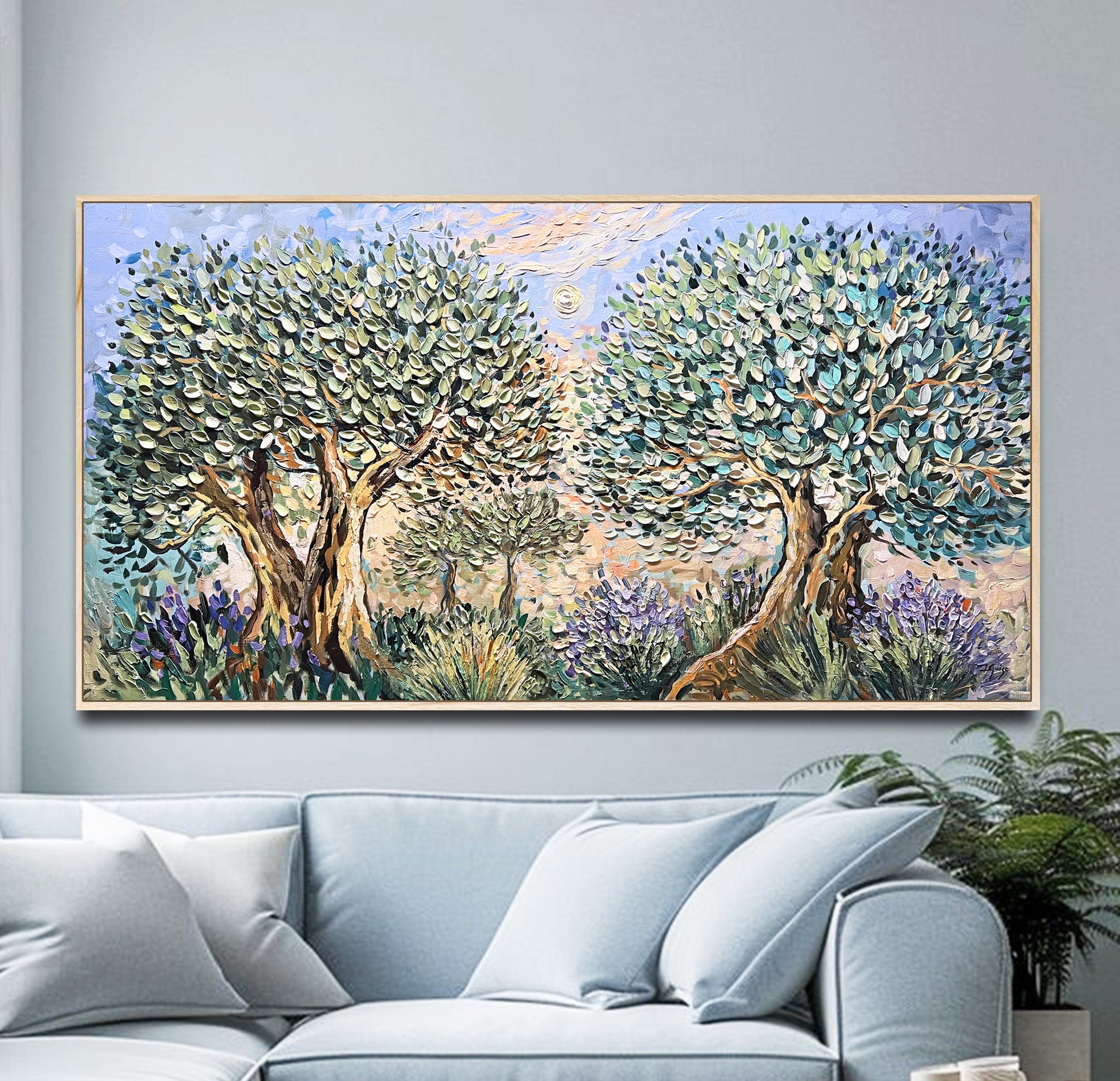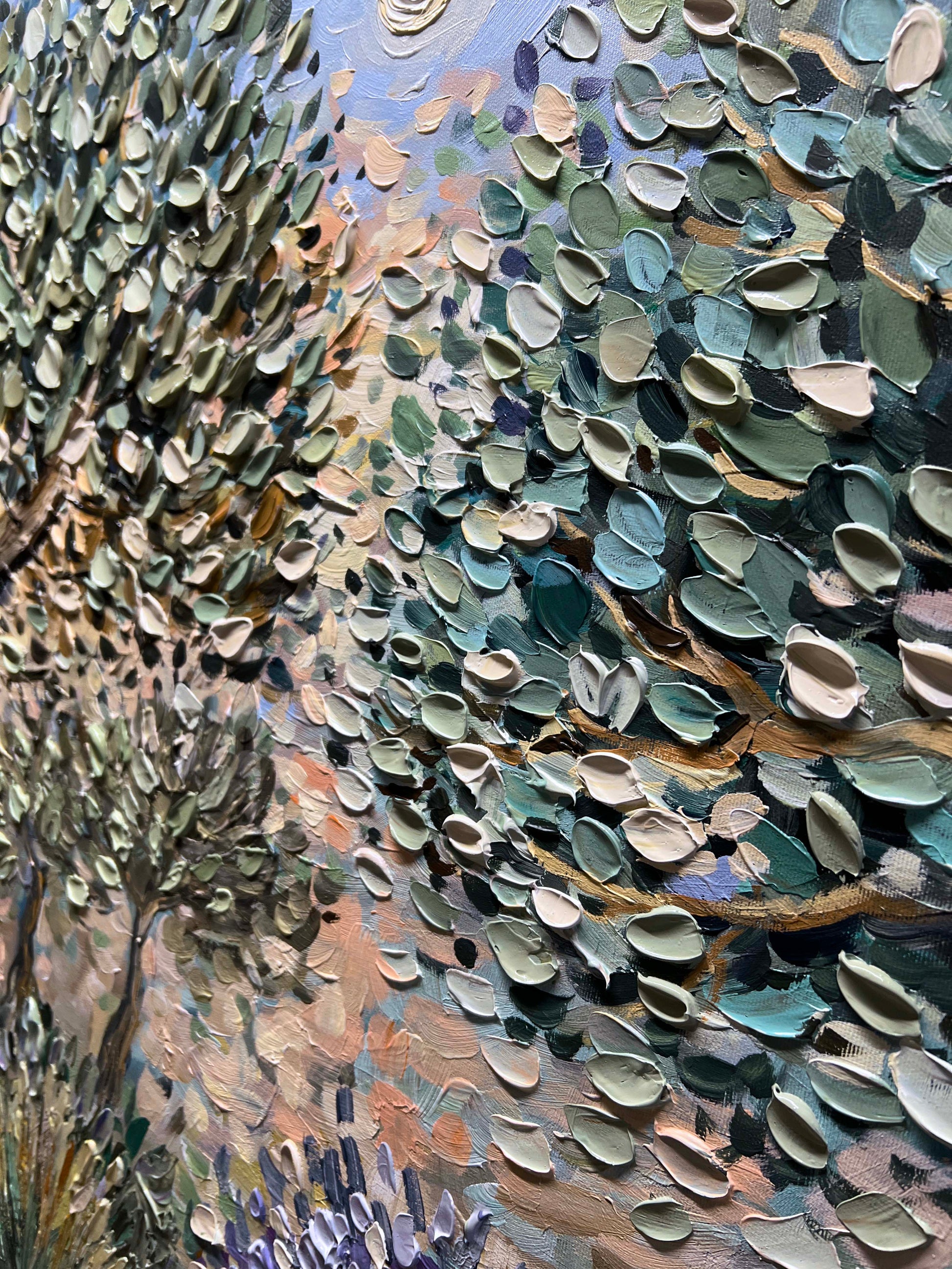 "Lavender and Olive Trees" is a serene landscape painting that captures the timeless beauty of the Mediterranean.