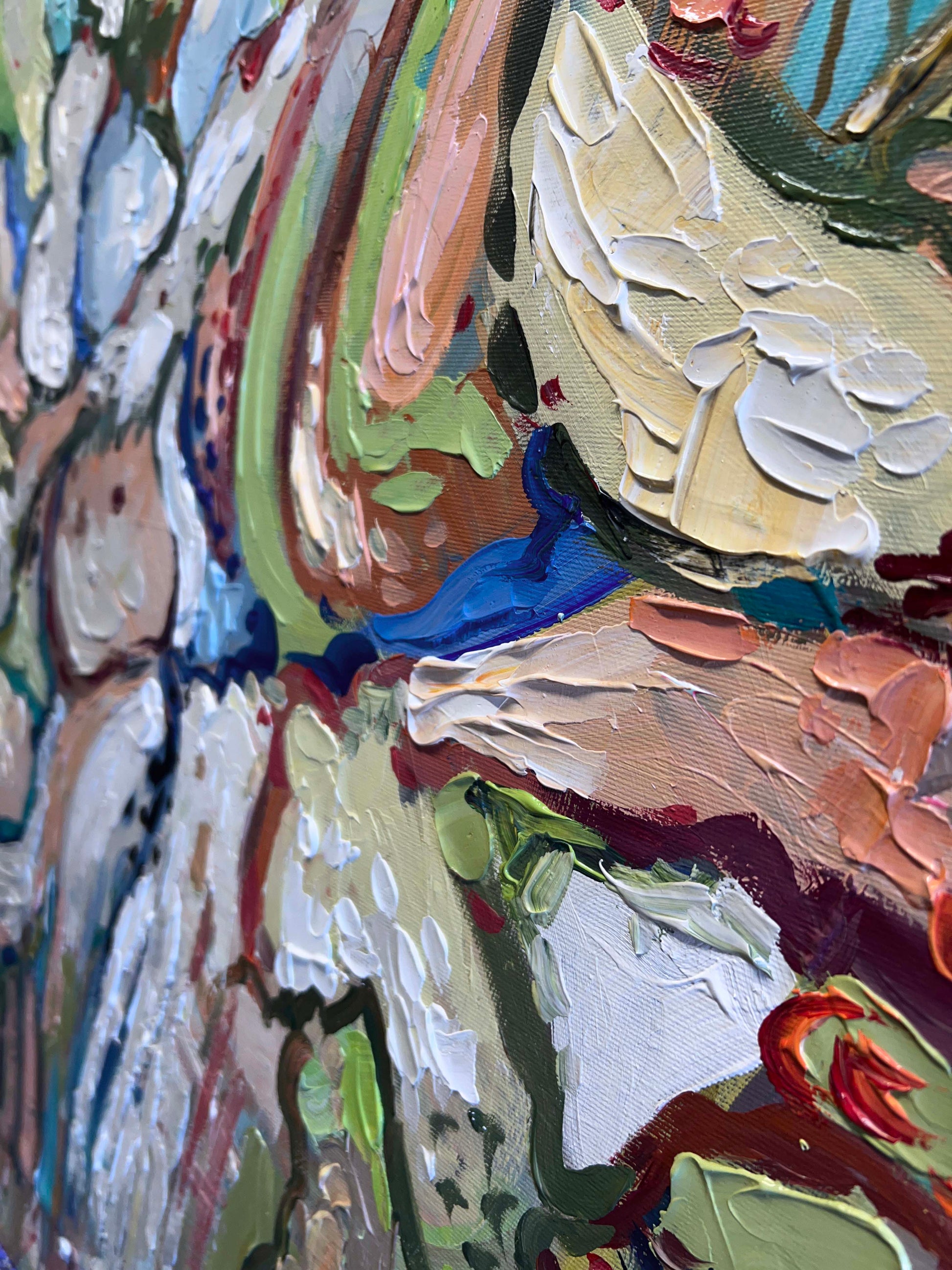 I worked with layers of color and texture to capture that sensation of movement and vitality.