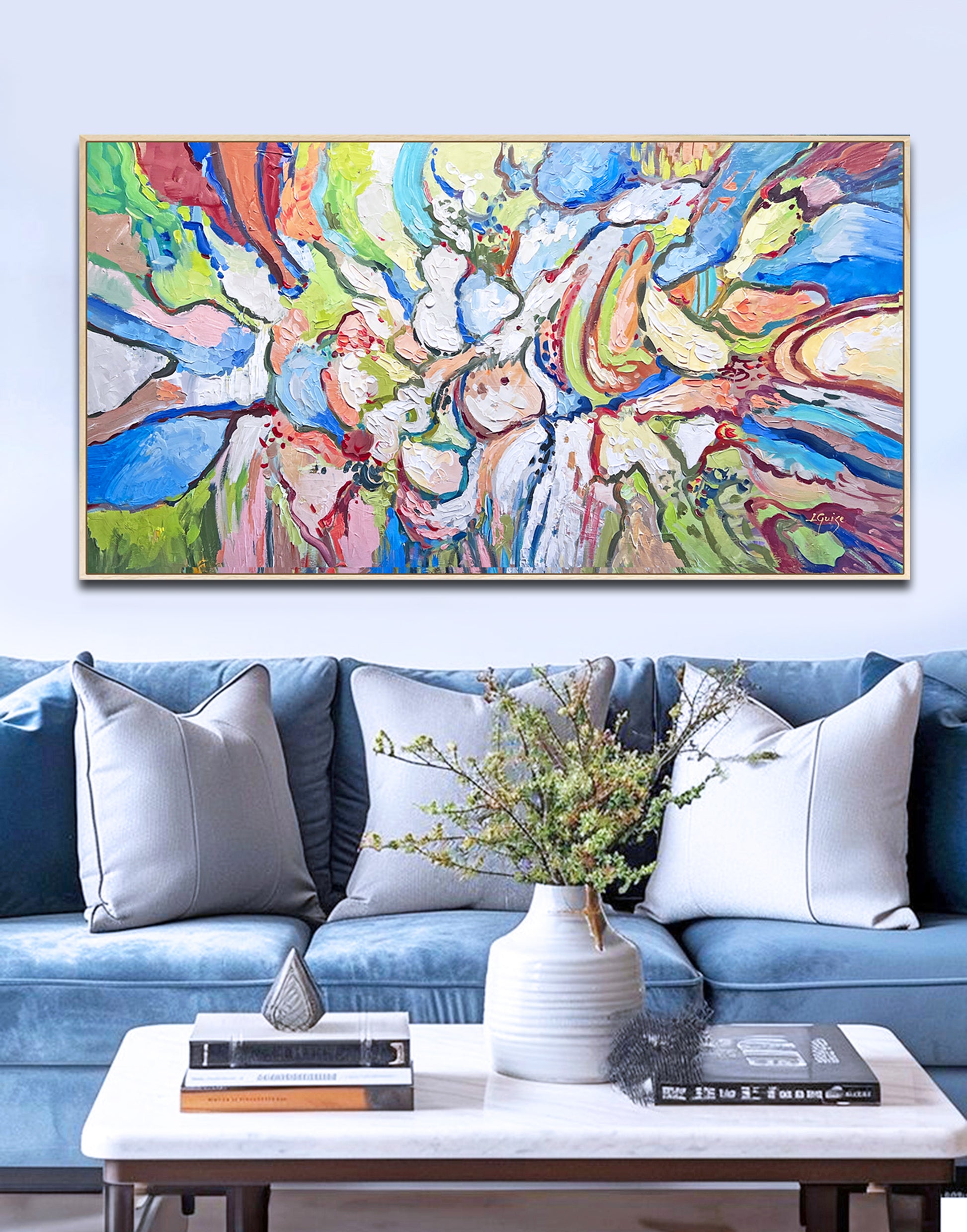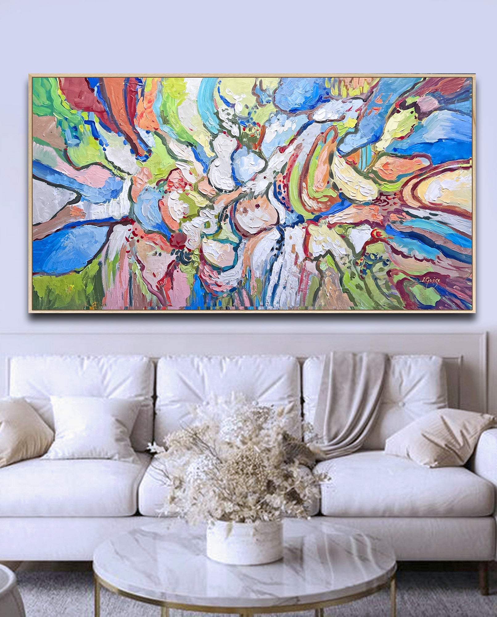 Consider choosing a natural wooden frame to ground the piece, enhancing its organic spirit while providing a warm, authentic finish.