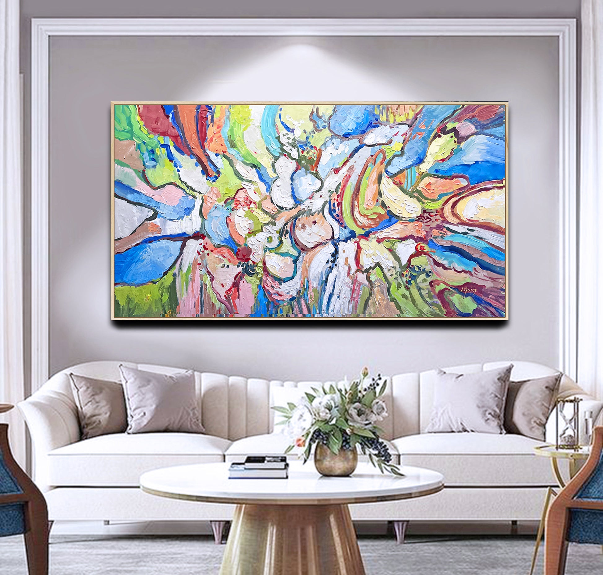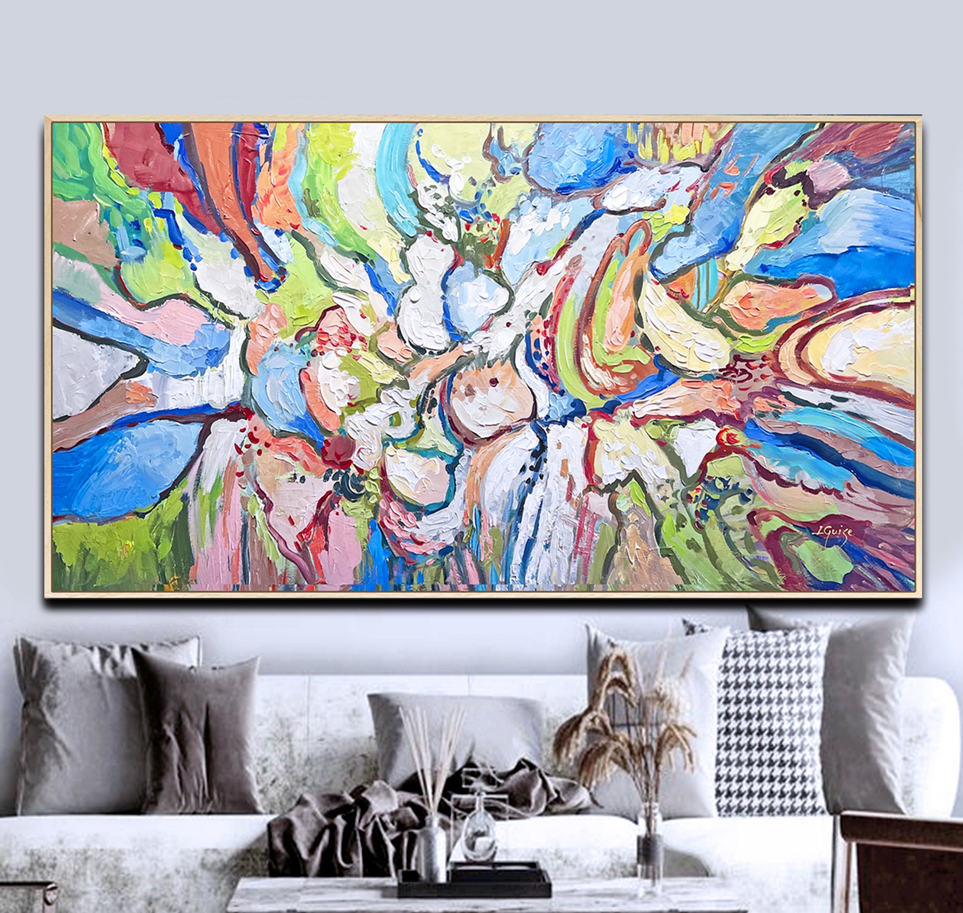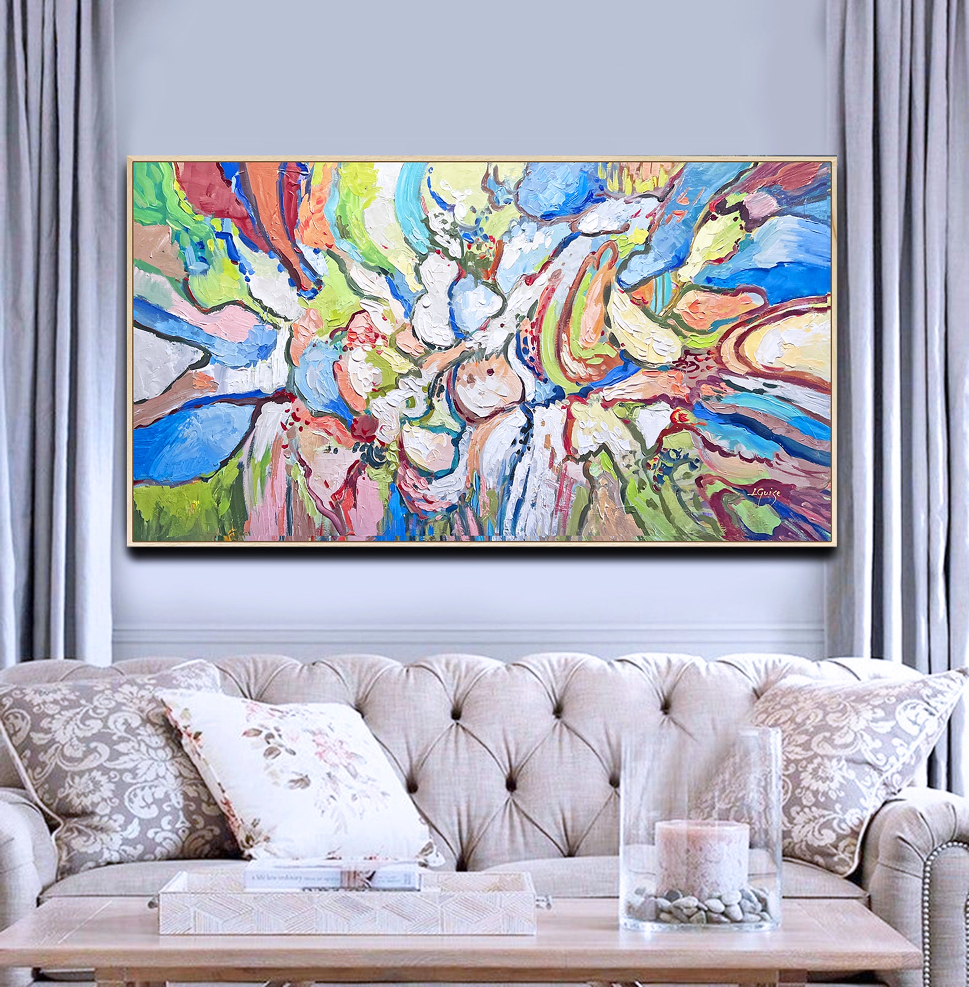 Painting is shipped in a cardboard tube or box, depending on the option you choose, with FedEx or UPS and it’s insured against lost or damage during transport.