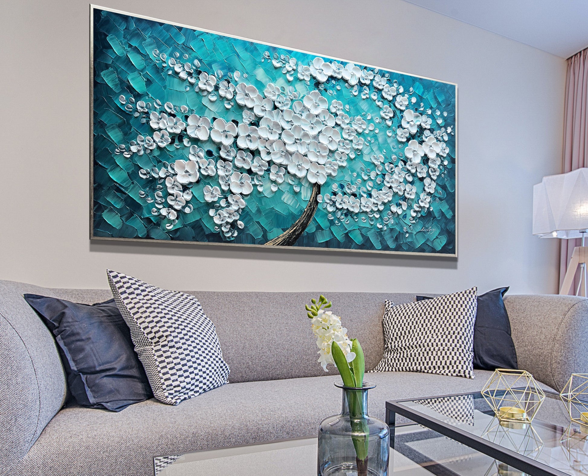 Painting is shipped in a cardboard tube or box, depending on the option you choose, with FedEx or UPS and it’s insured against lost or damage during transport.