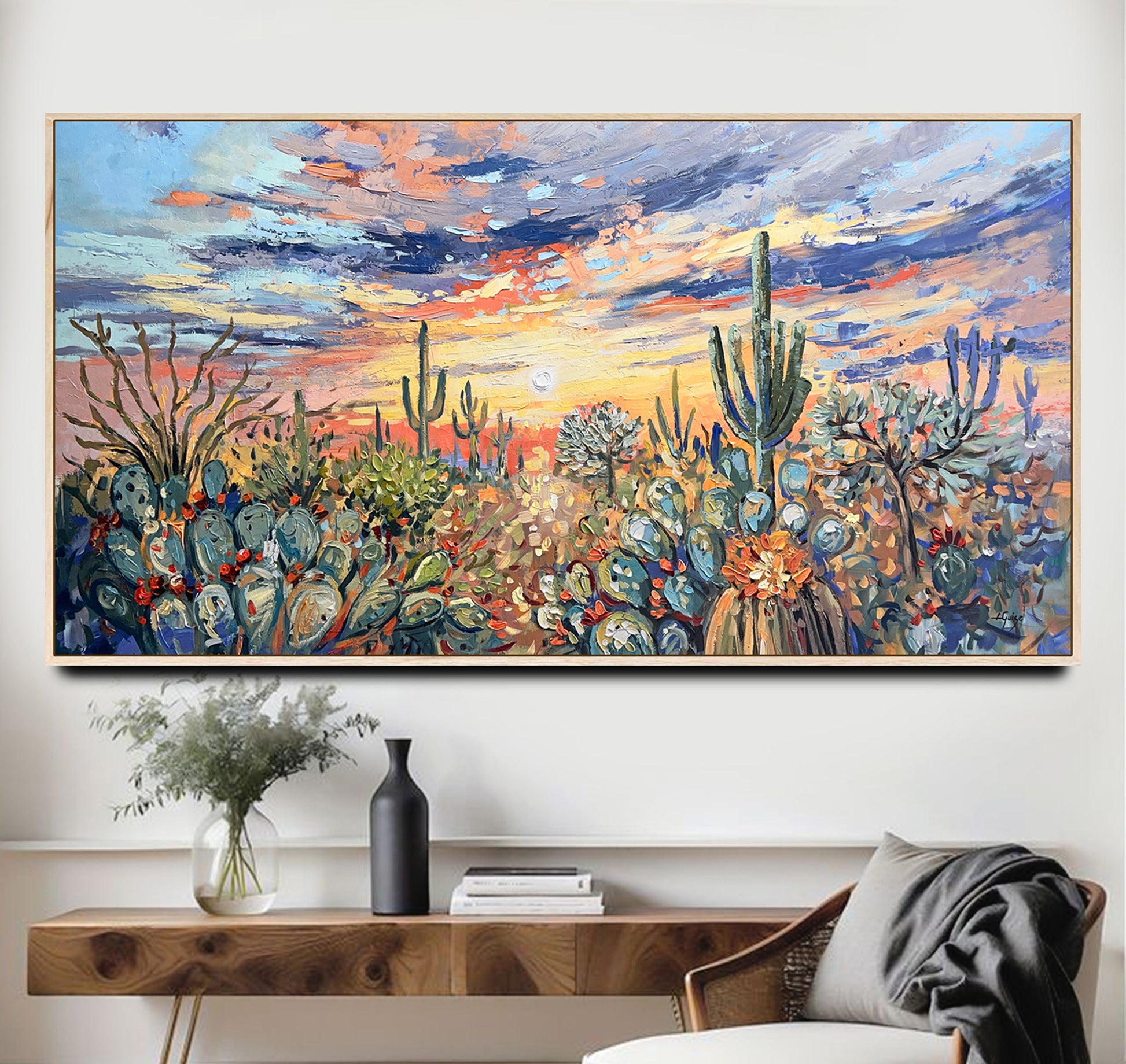 The wood complements the earthy tones of the painting, enhancing its connection to nature and giving it a grounded, authentic presence perfect for warming up any interior space.