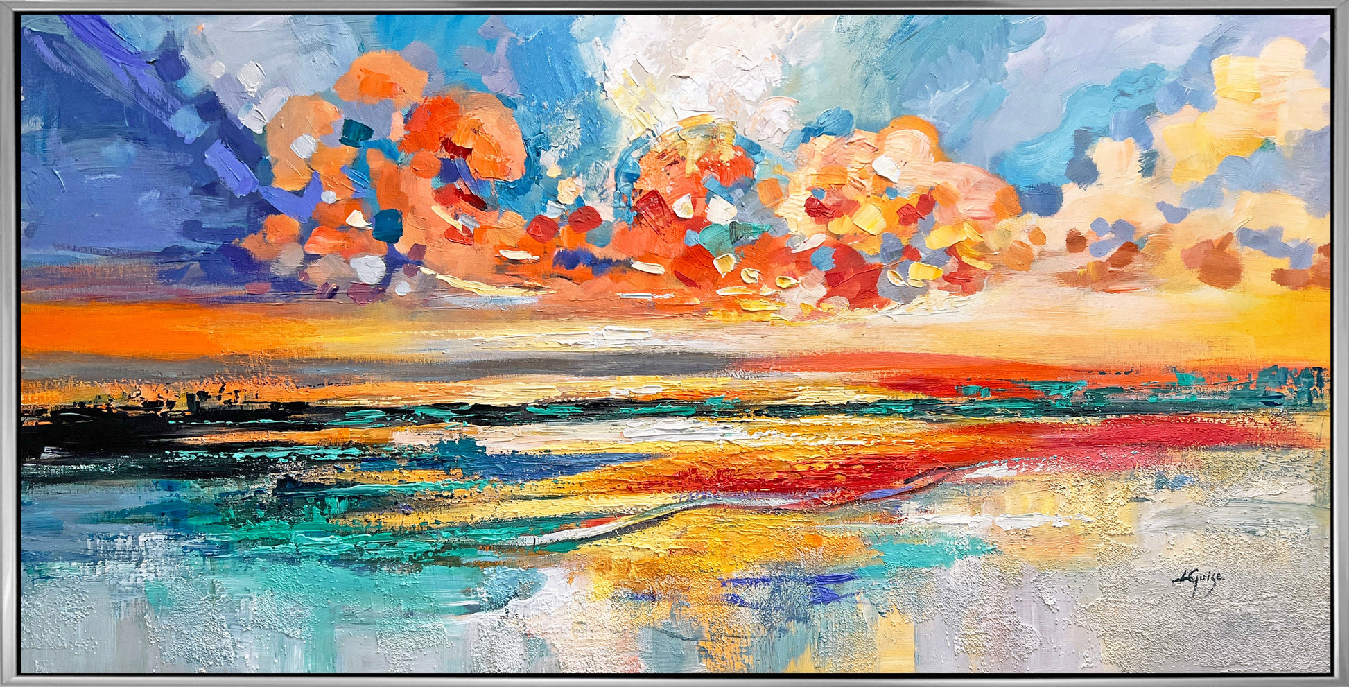 Painting is shipped in a cardboard tube or box, depending on the option you choose, with FedEx or UPS and it’s insured against lost or damage during transport.