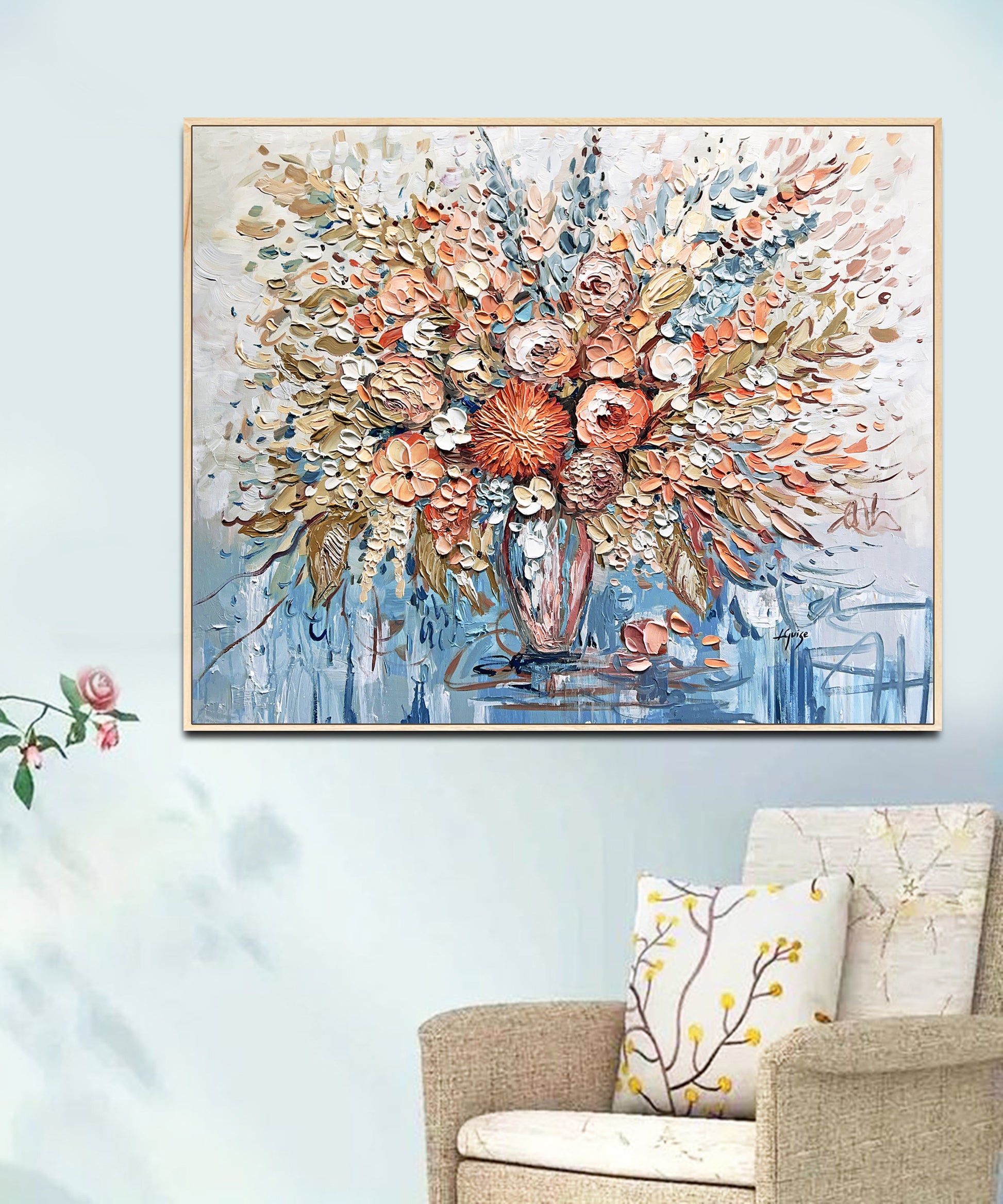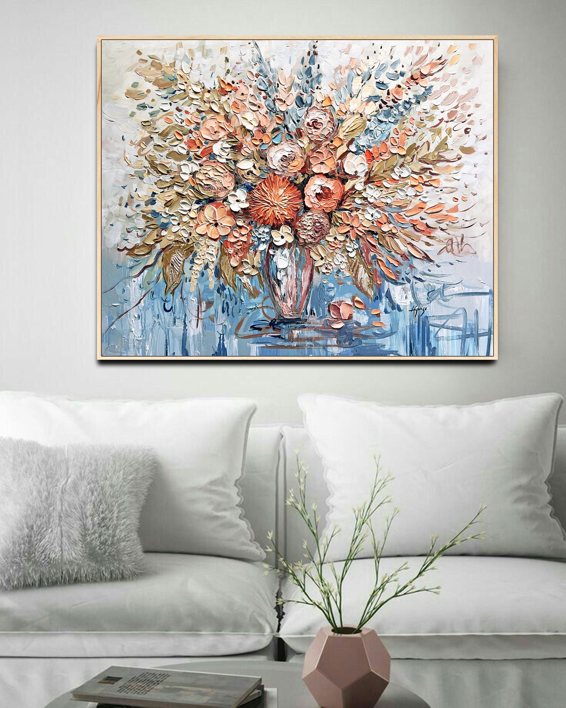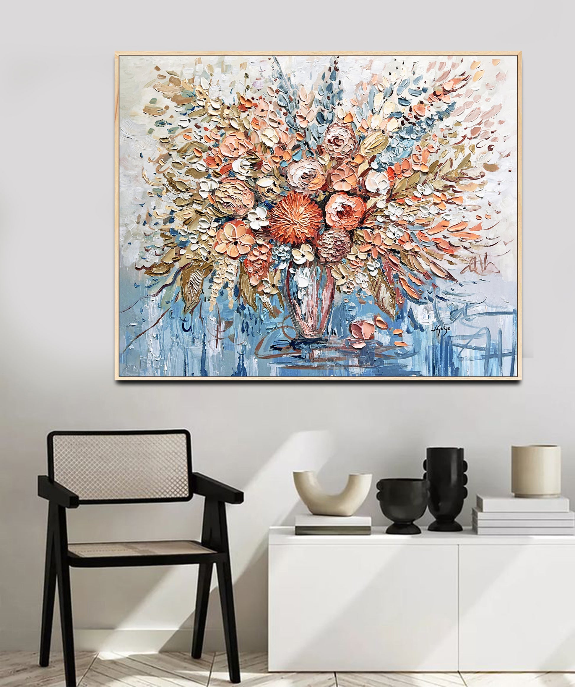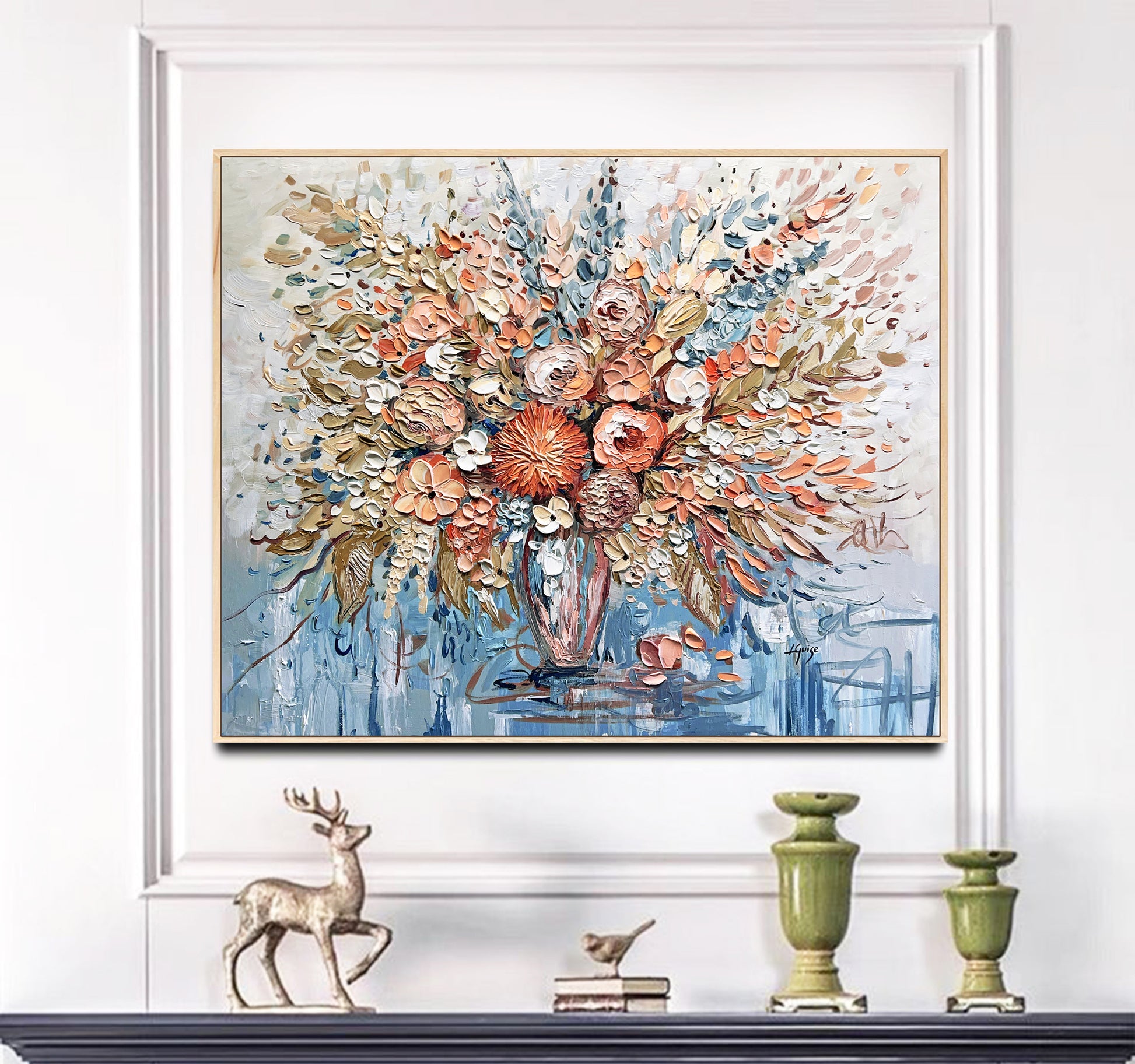 Hints of dripping paint and expressive brushwork add a modern, artistic edge, balancing classical beauty with contemporary abstraction. The overall effect is one of warmth, abundance, and refined sophistication, a piece that brings both tranquility and vibrancy to any space.