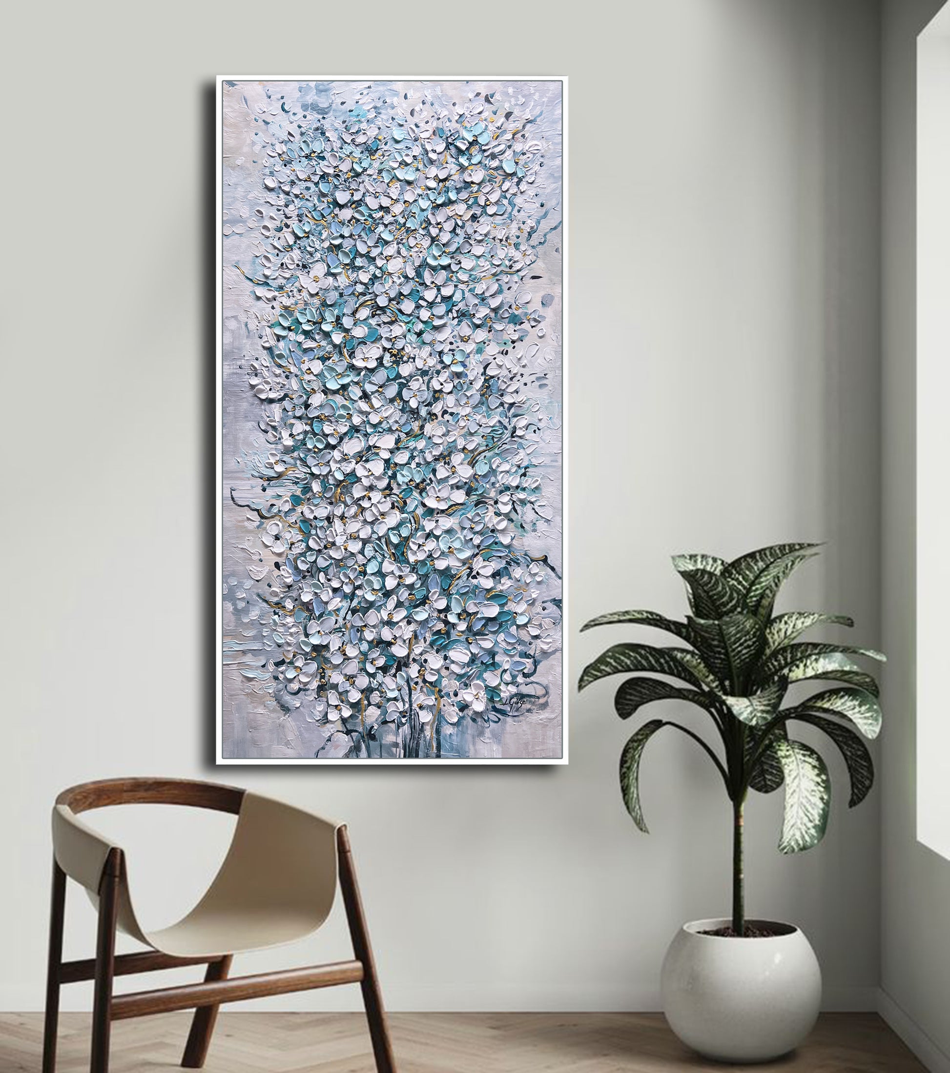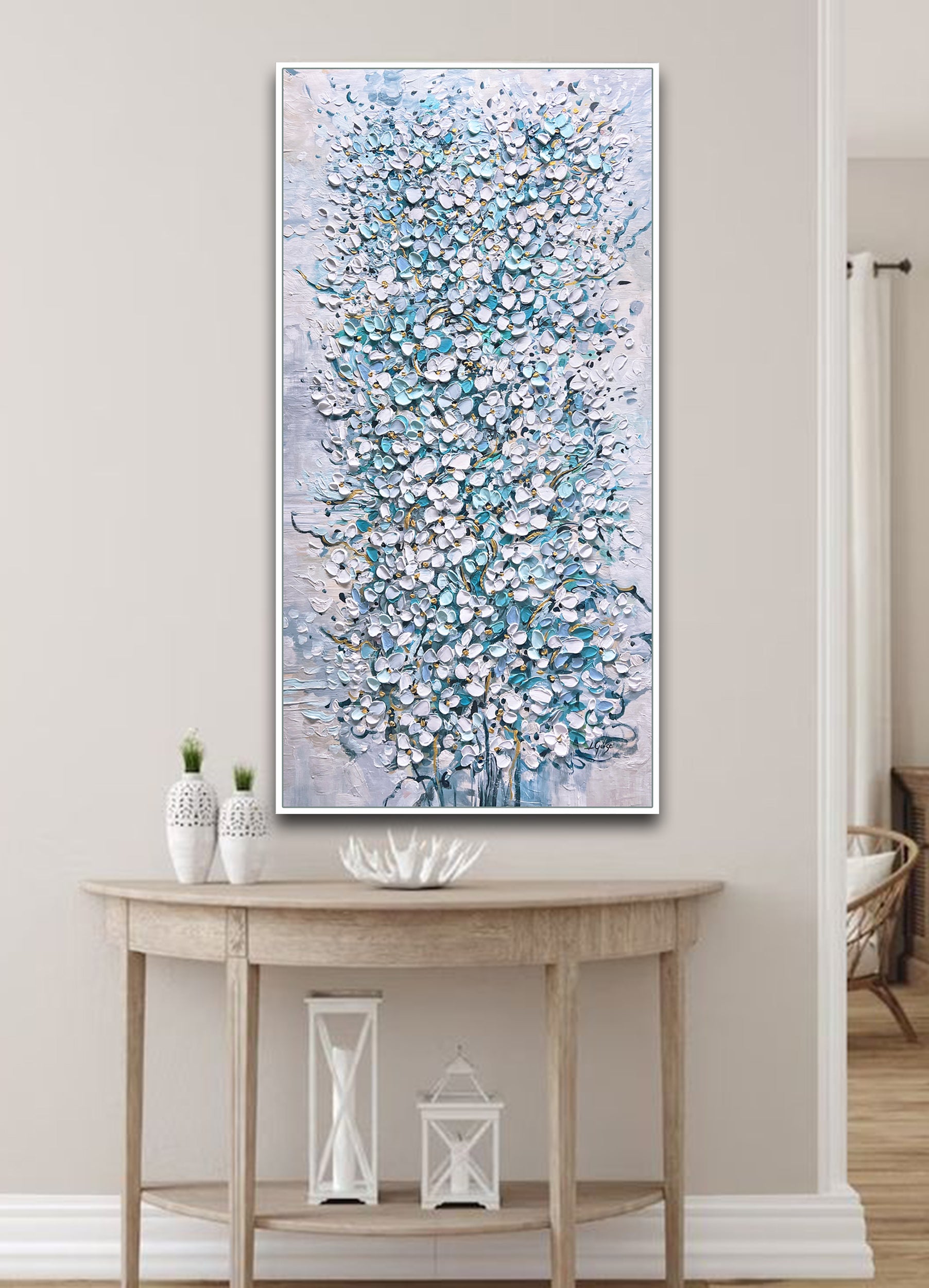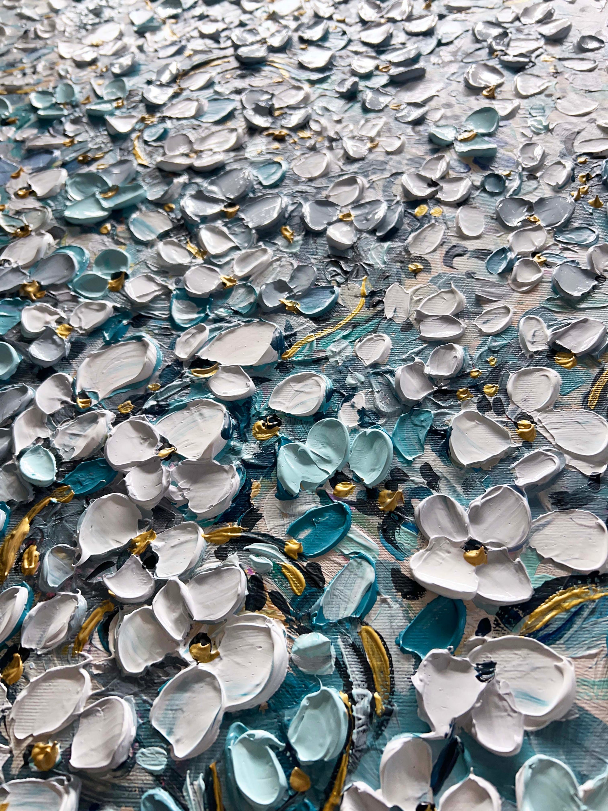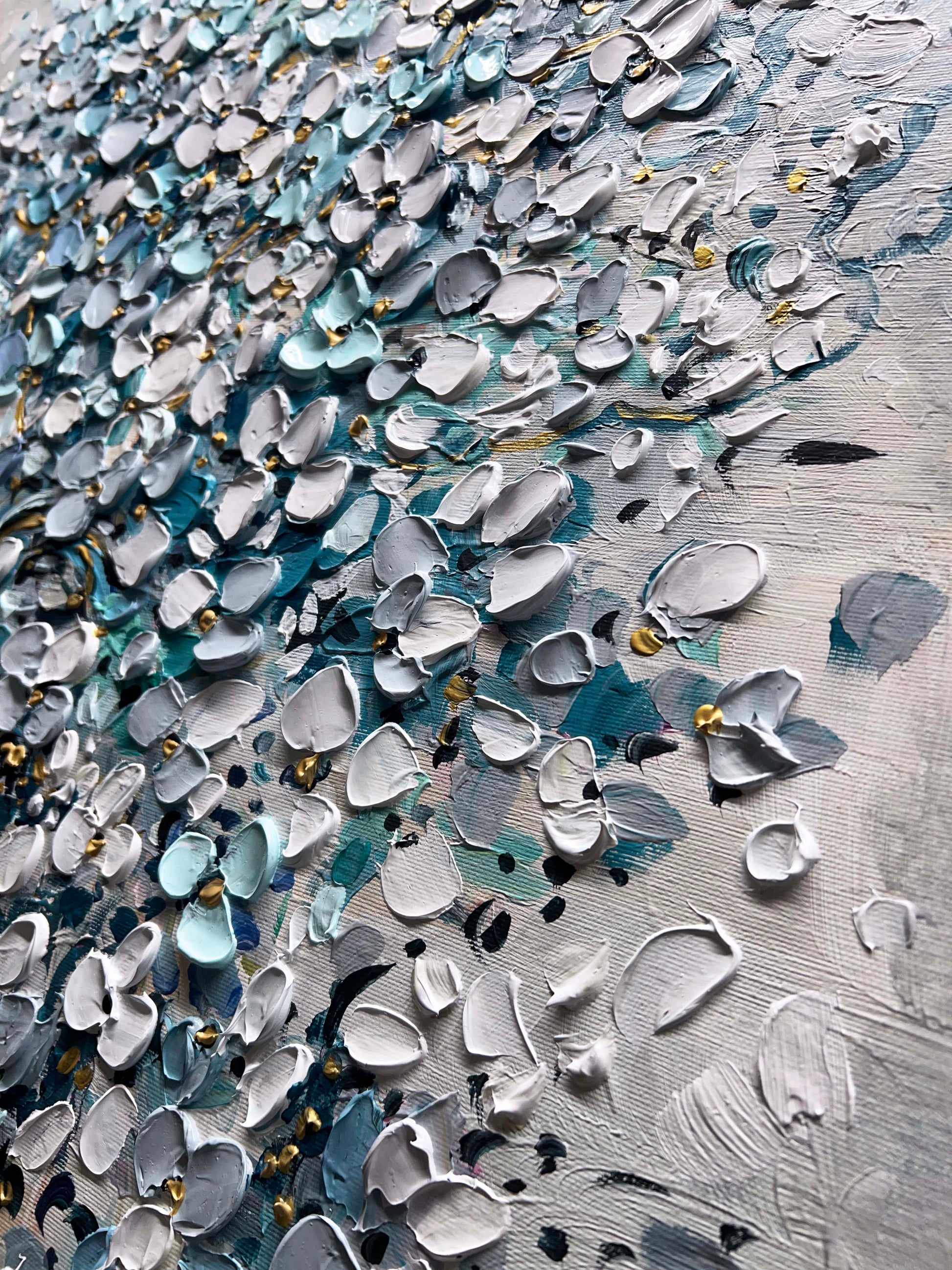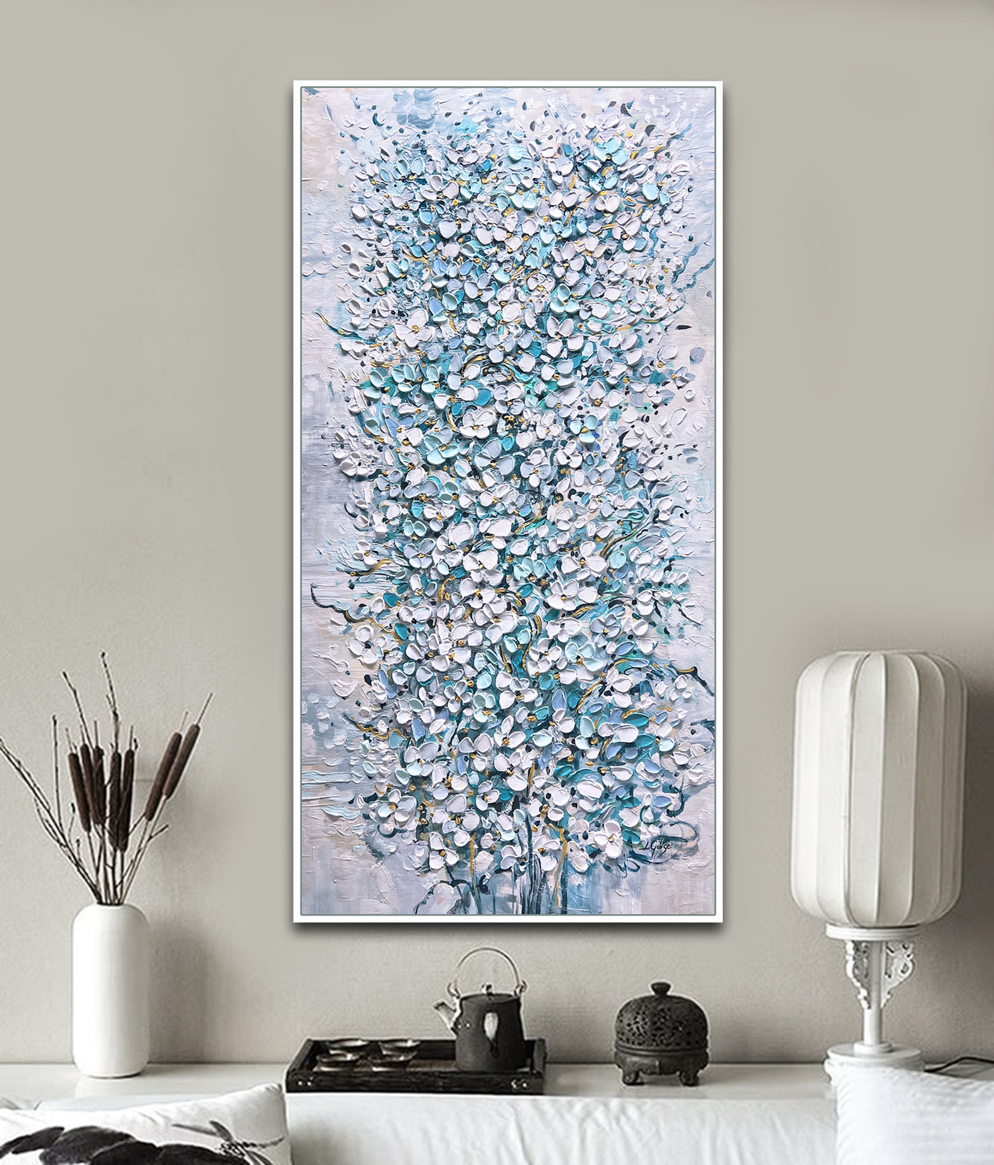 As I painted, I imagined the petals cascading upward, almost floating, creating a vertical rhythm that draws the eye and lifts the spirit.
