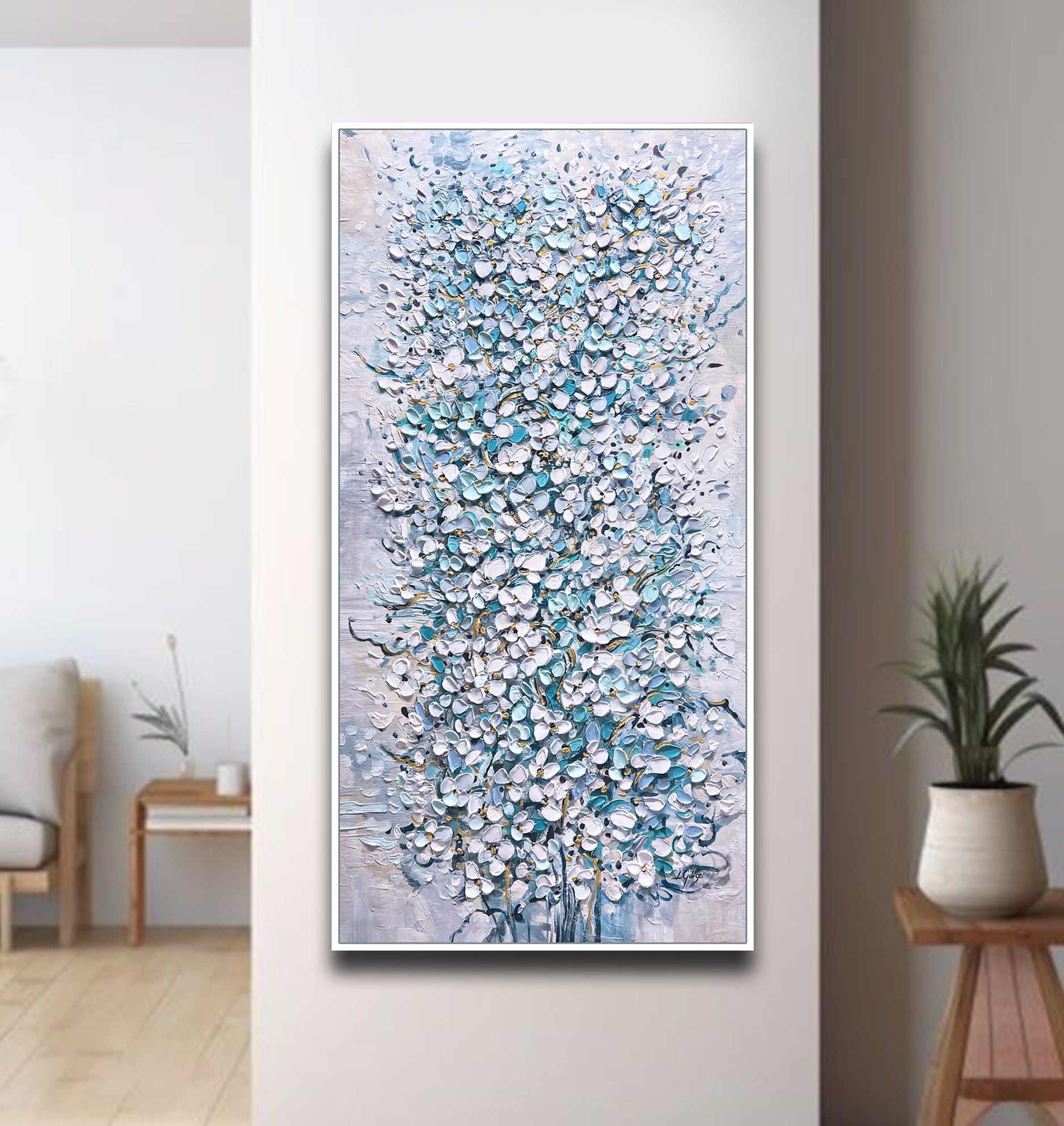 Consider using a white frame to impart a fresh, serene presence—bringing calm beauty and quiet joy as the harmony of texture, movement, and emotion converge in the space it inhabits.