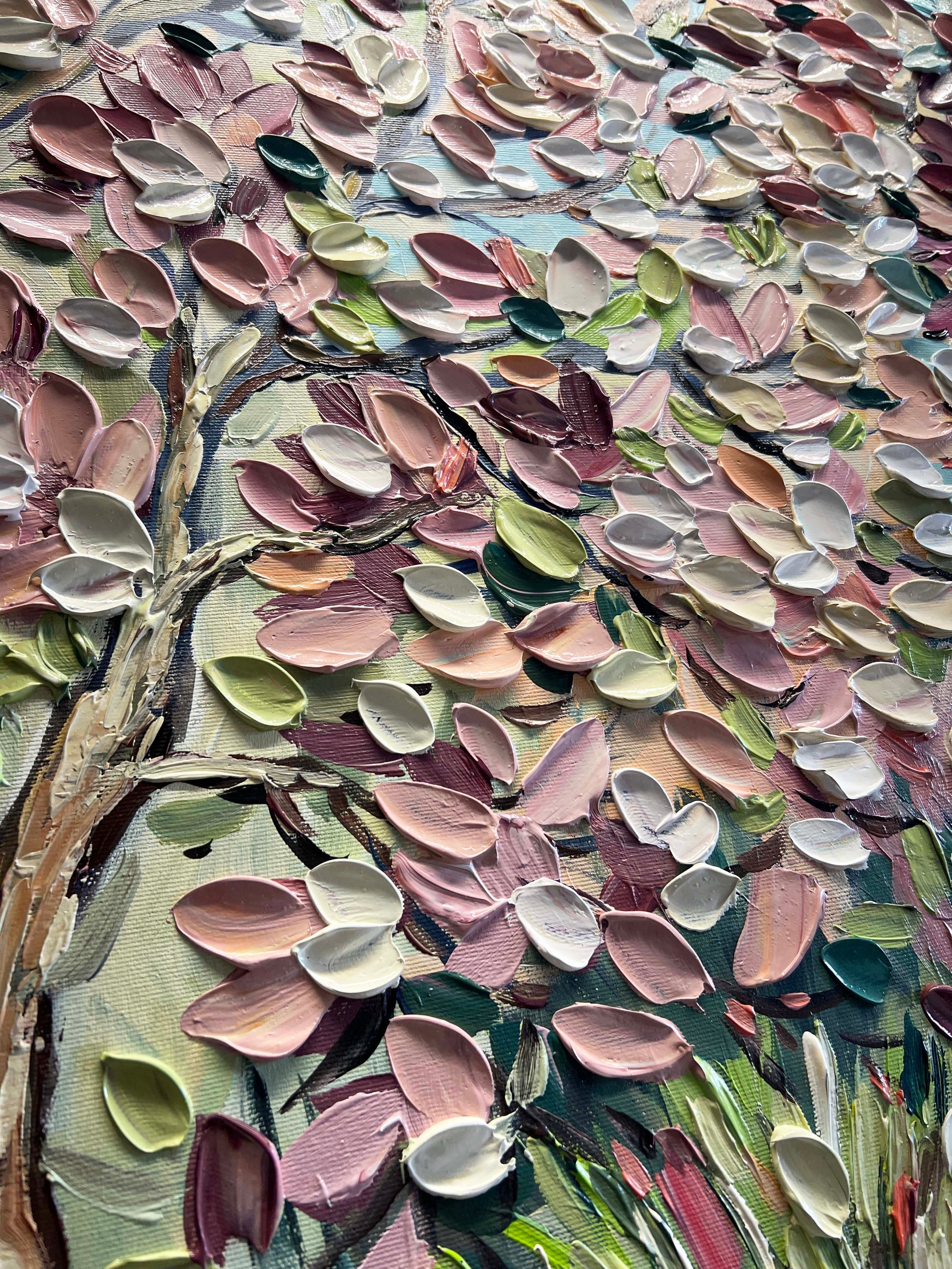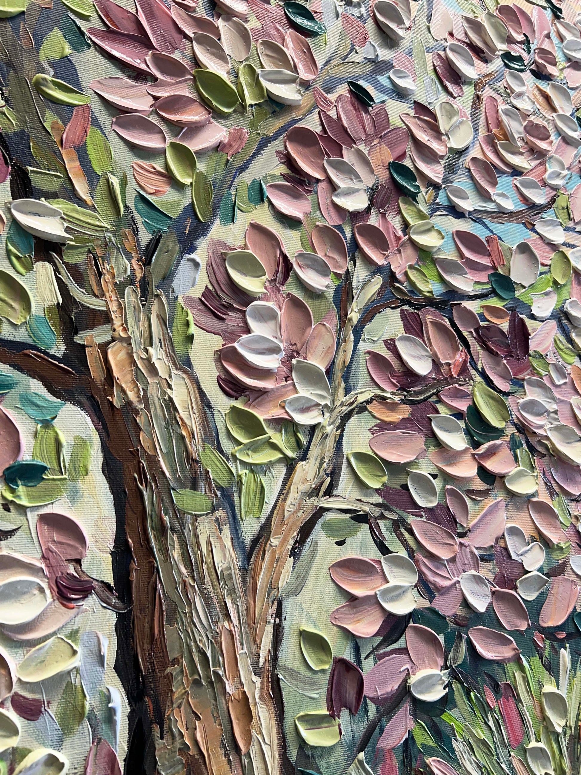 "Petals in the Sunlight" was born from a feeling of standing beneath blooming trees, bathed in warm, golden light.