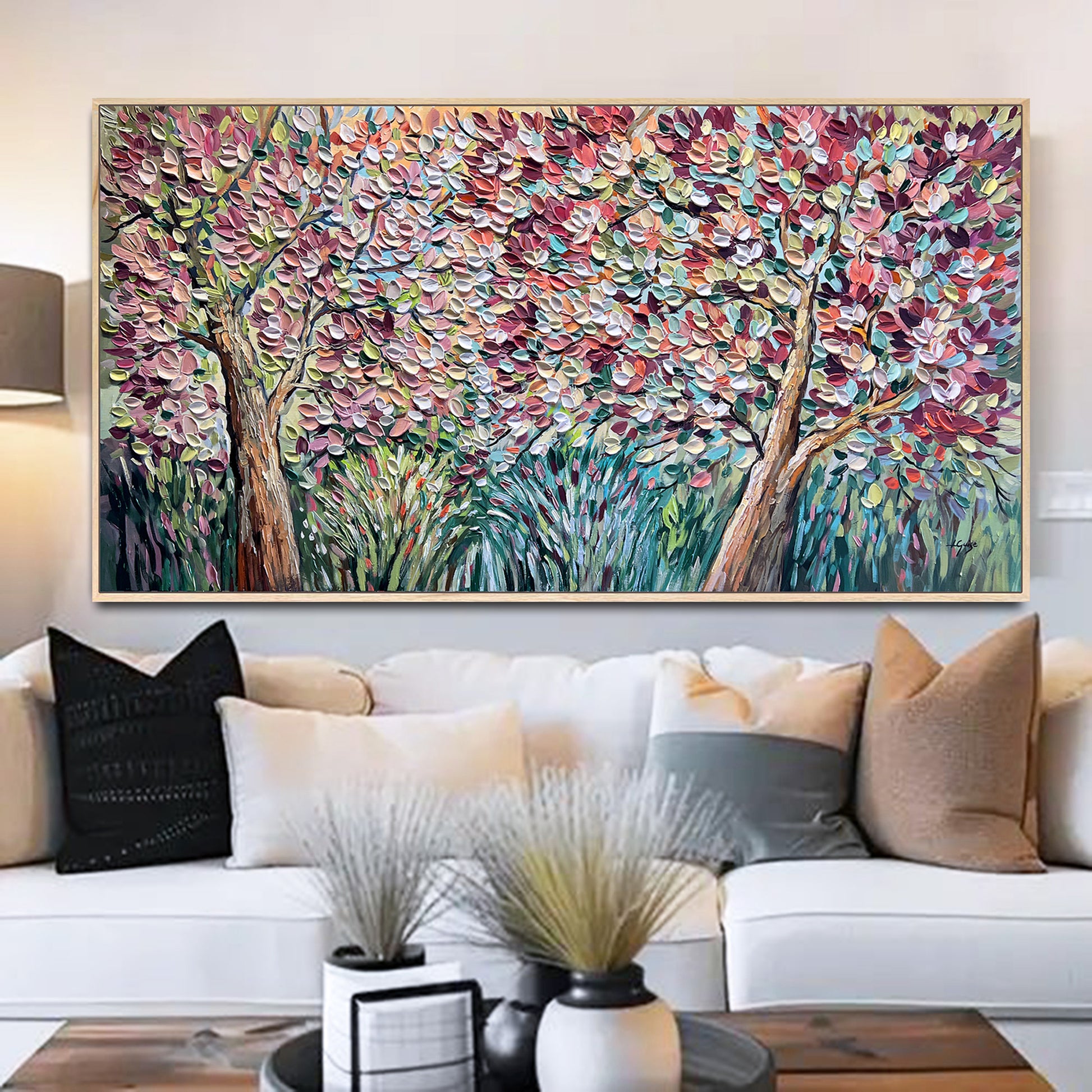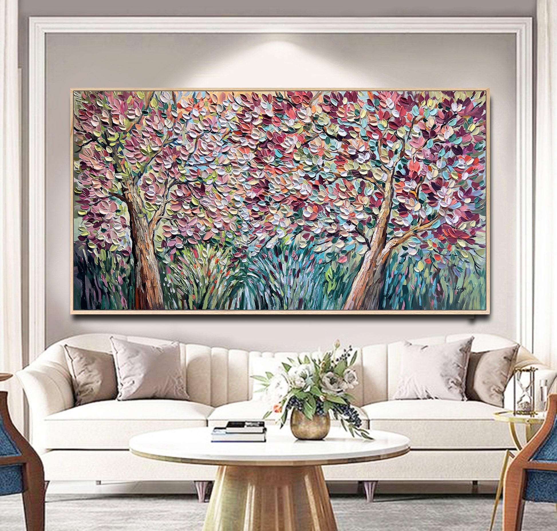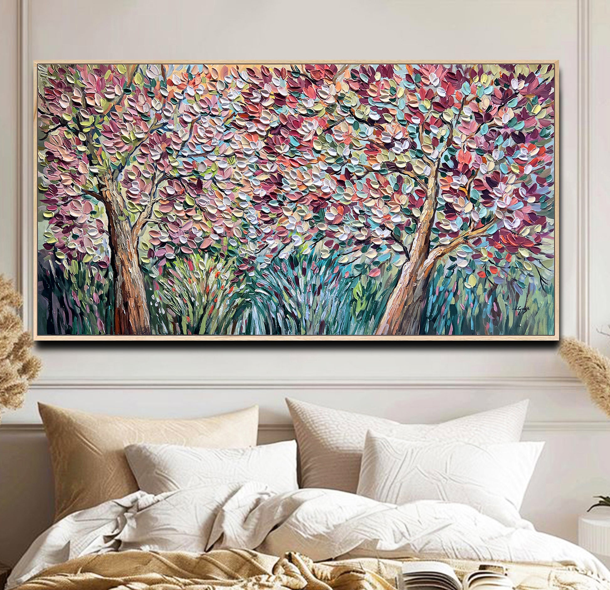 A natural wooden frame grounds the painting in its organic spirit, its warmth and simplicity echoing the scene’s essence to provide a harmonious completion.