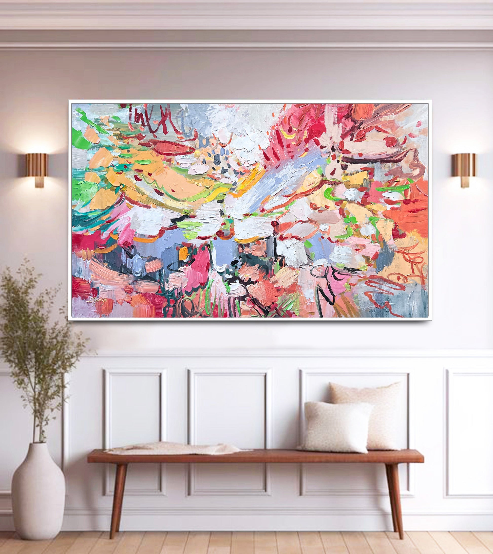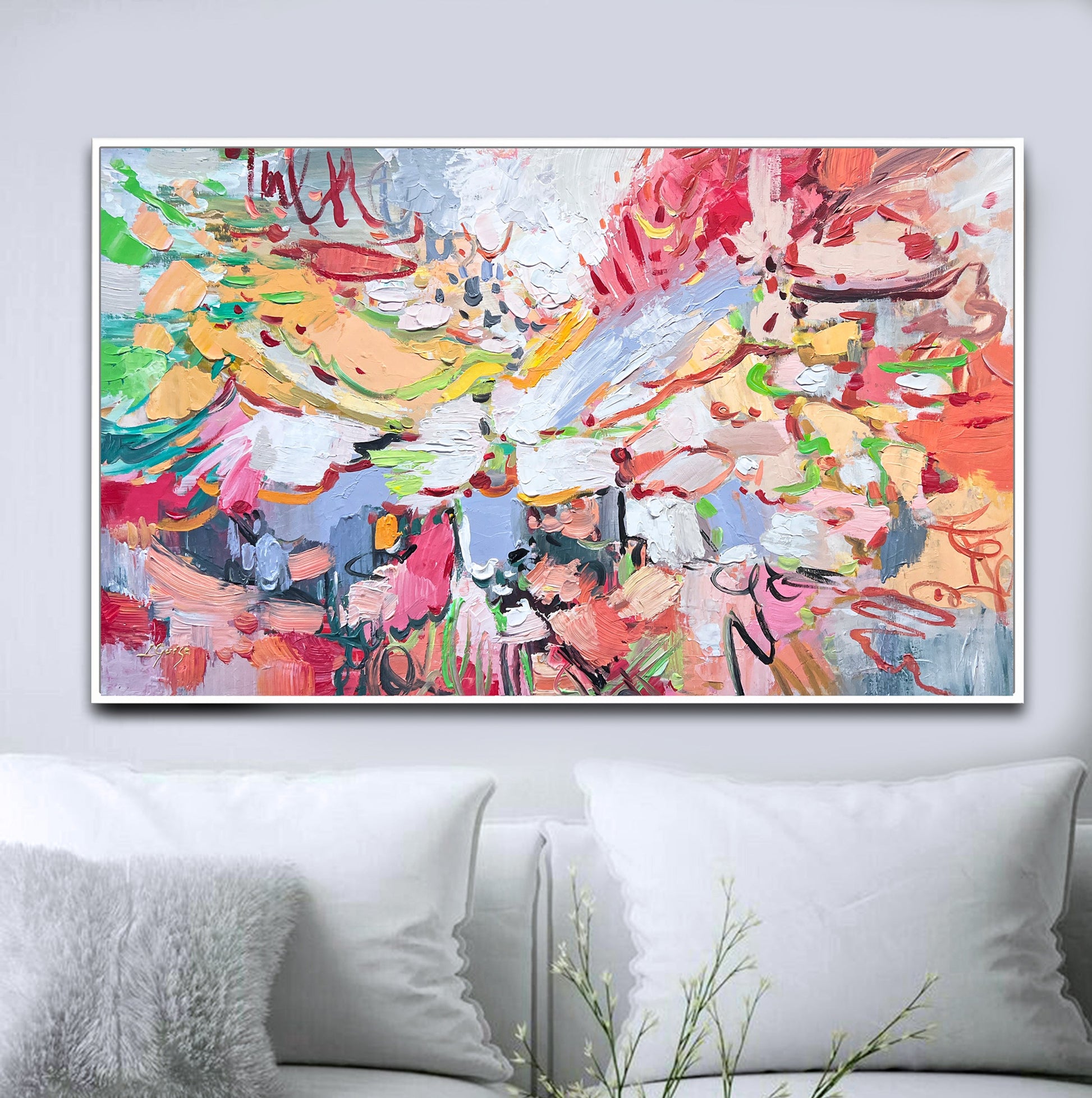 “Pink Kiss” is more than a painting—it’s a breath of summer captured on canvas. Ideal for neutral or gray-toned interiors, it brings a vibrant focal point to any room, uplifting the atmosphere with warmth, joy, and the gentle energy of a sunlit day.
