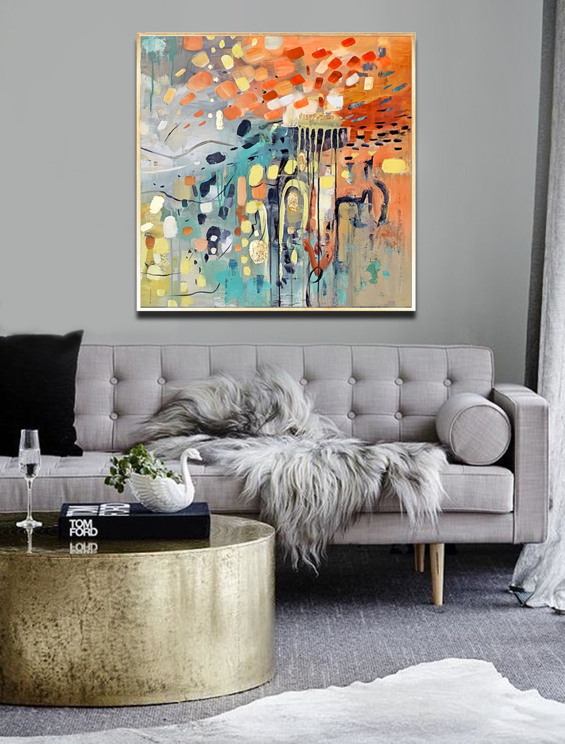 Painting is shipped in a cardboard tube or box, depending on the option you choose, with FedEx or UPS and it’s insured against lost or damage during transport.