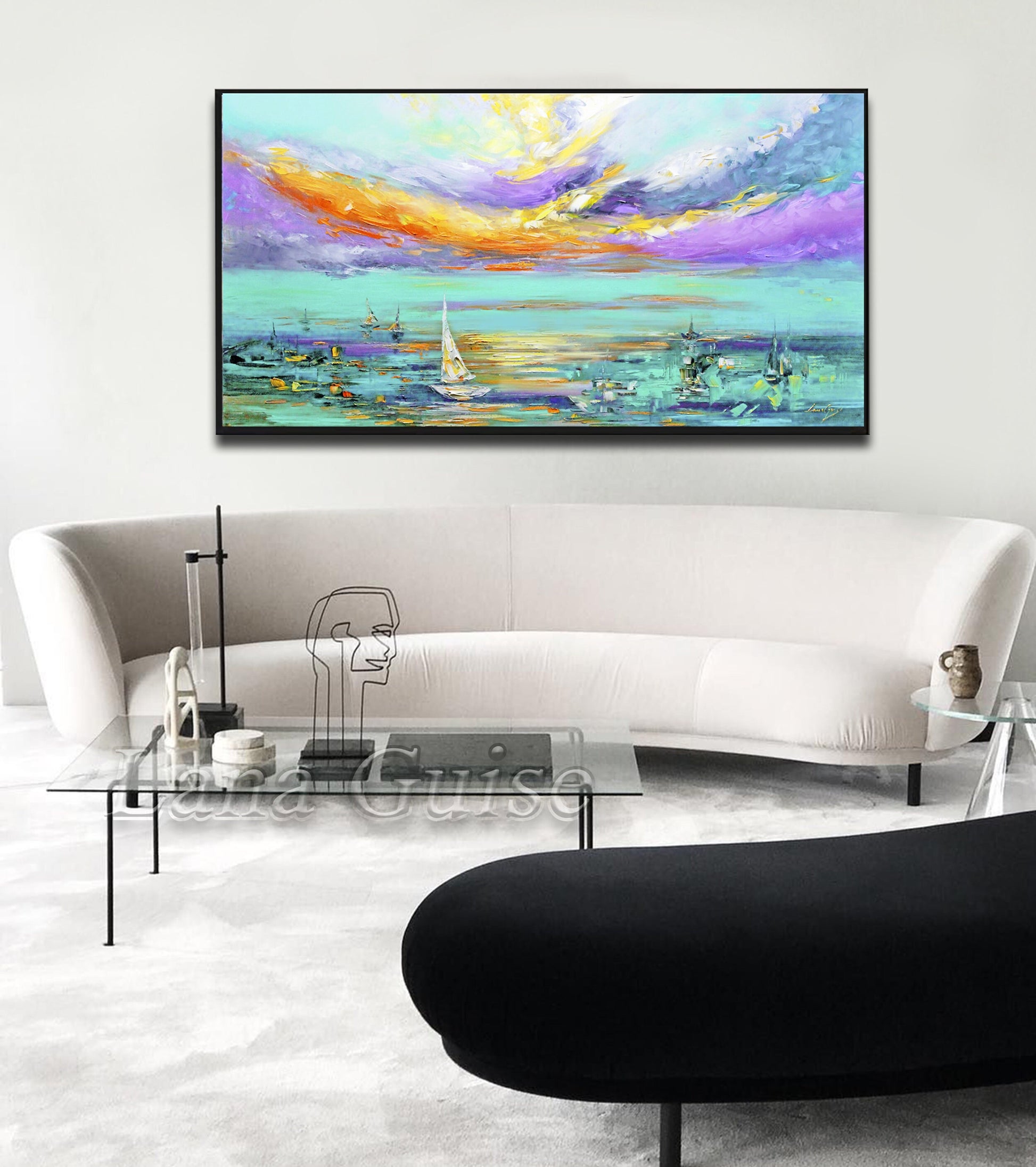 Painting is shipped in a cardboard tube or box, depending on the option you choose, with FedEx or UPS and it’s insured against lost or damage during transport.