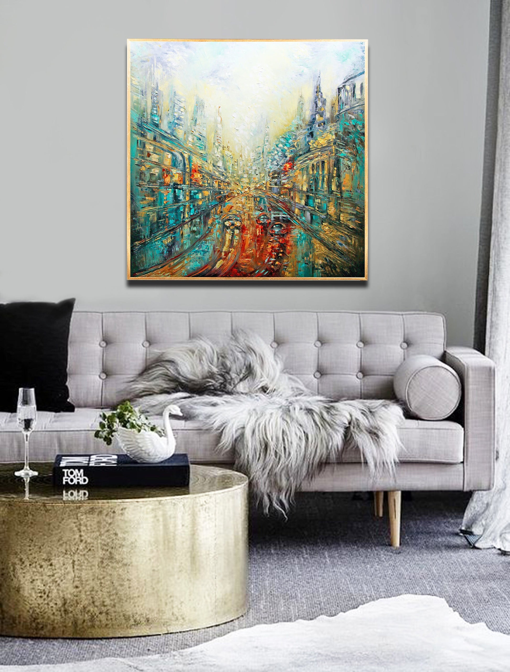 Painting is shipped in a cardboard tube or box, depending on the option you choose, with FedEx or UPS and it’s insured against lost or damage during transport.