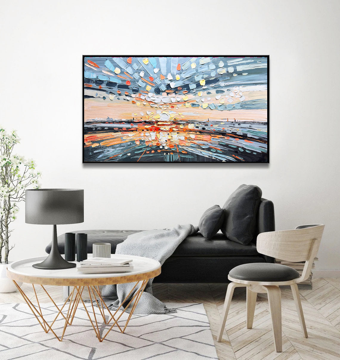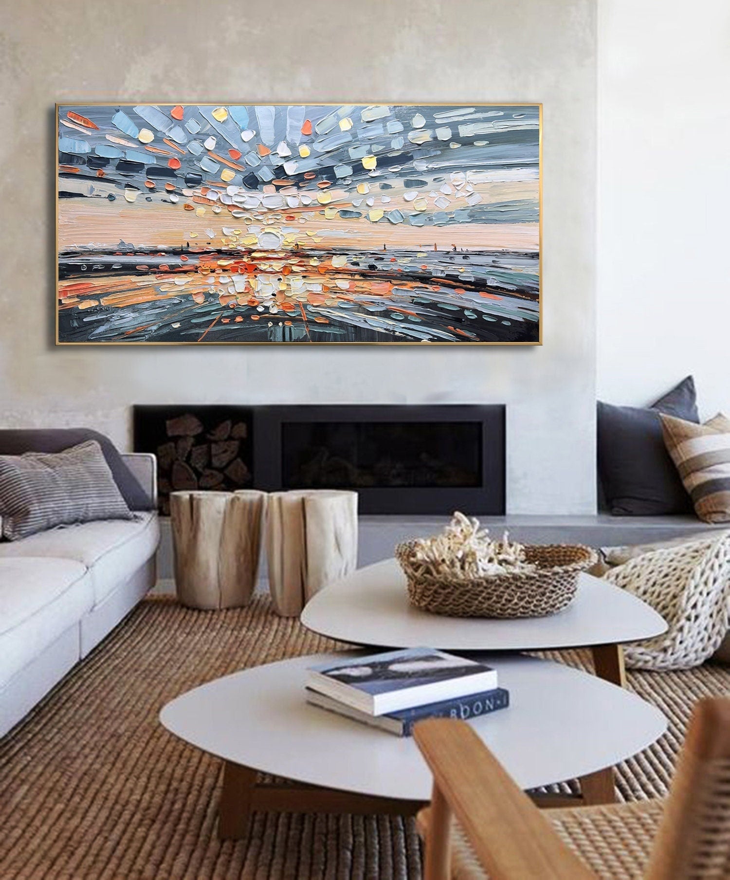 Painting is shipped in a cardboard tube or box, depending on the option you choose, with FedEx or UPS and it’s insured against lost or damage during transport.