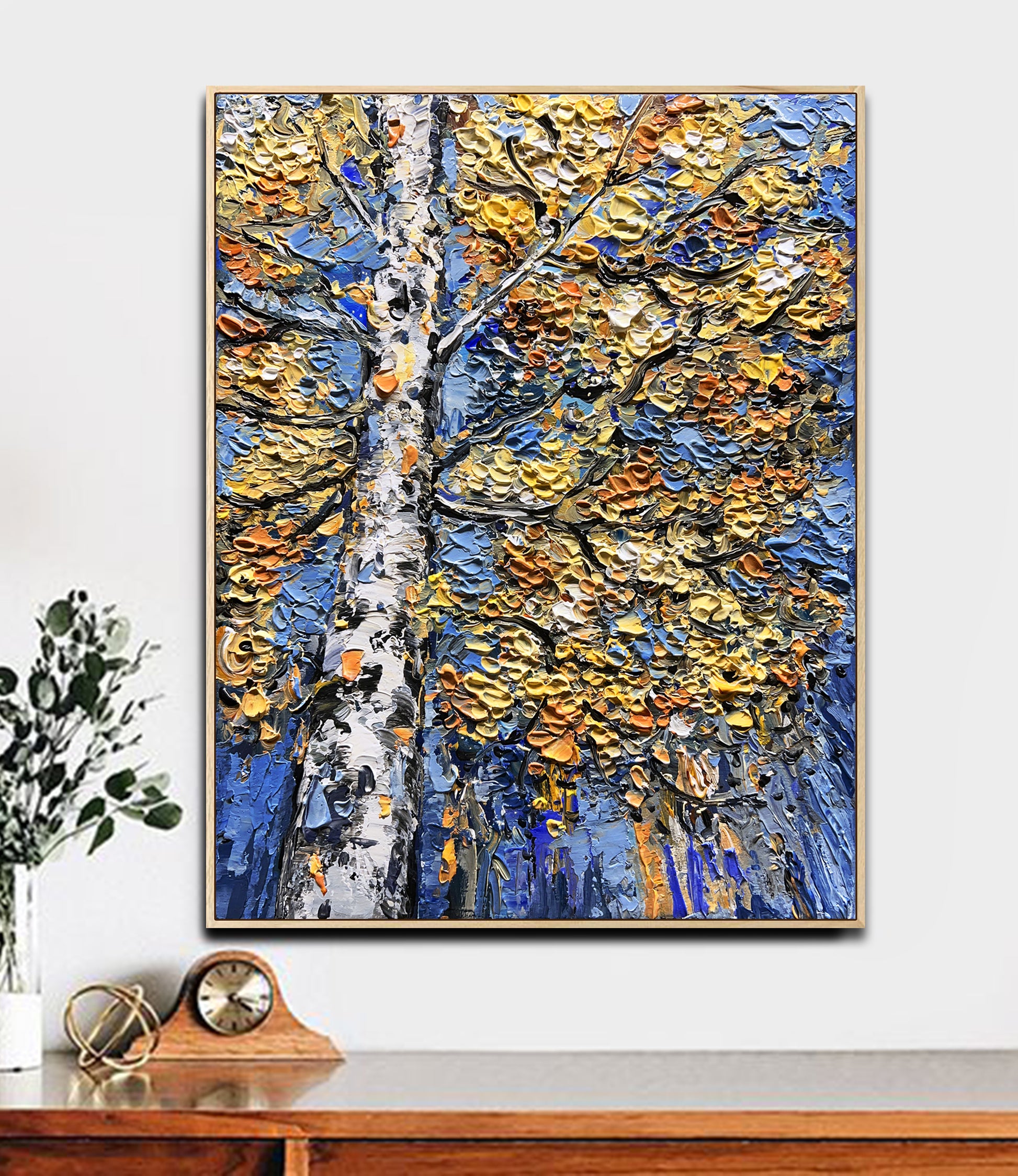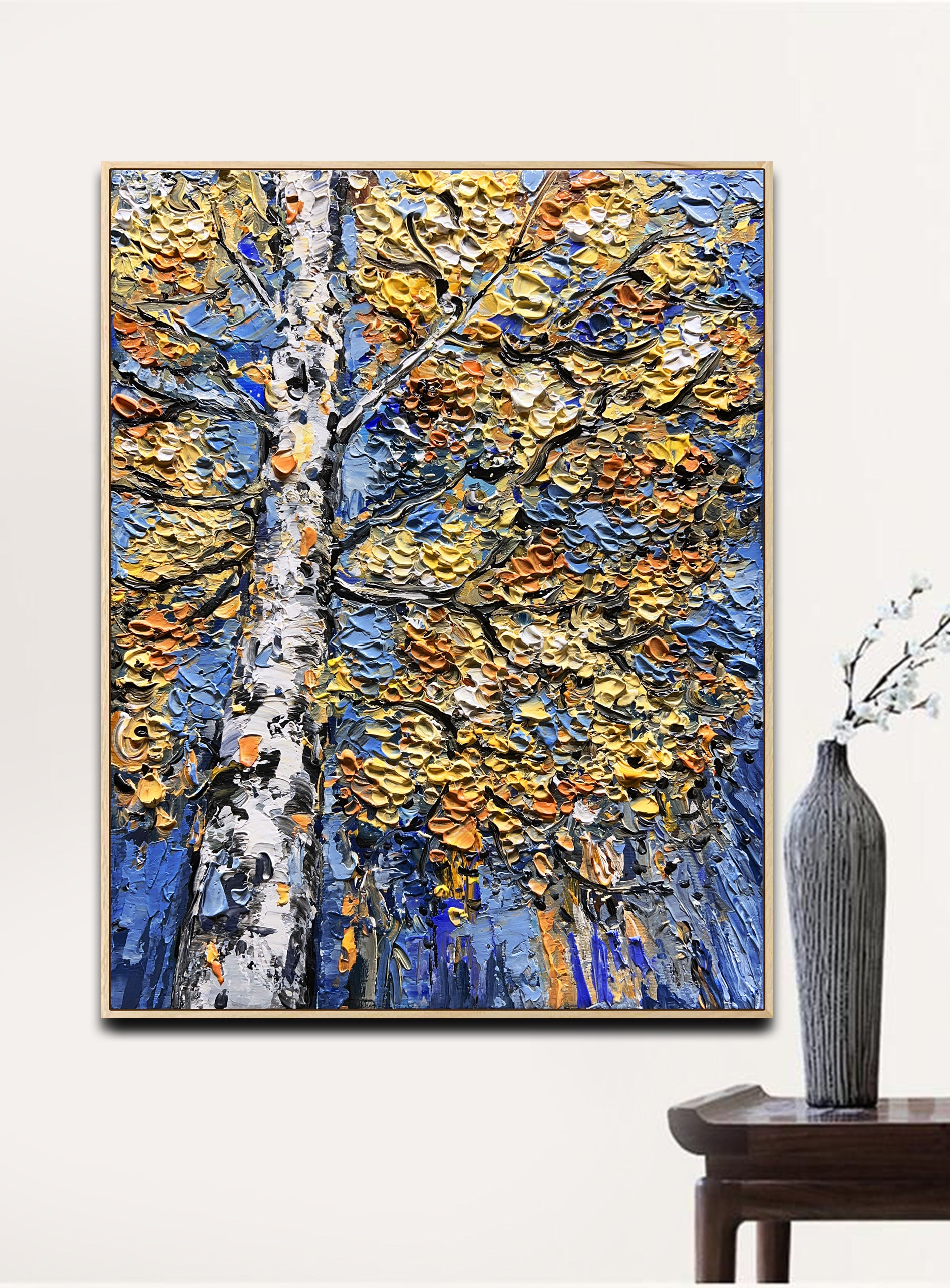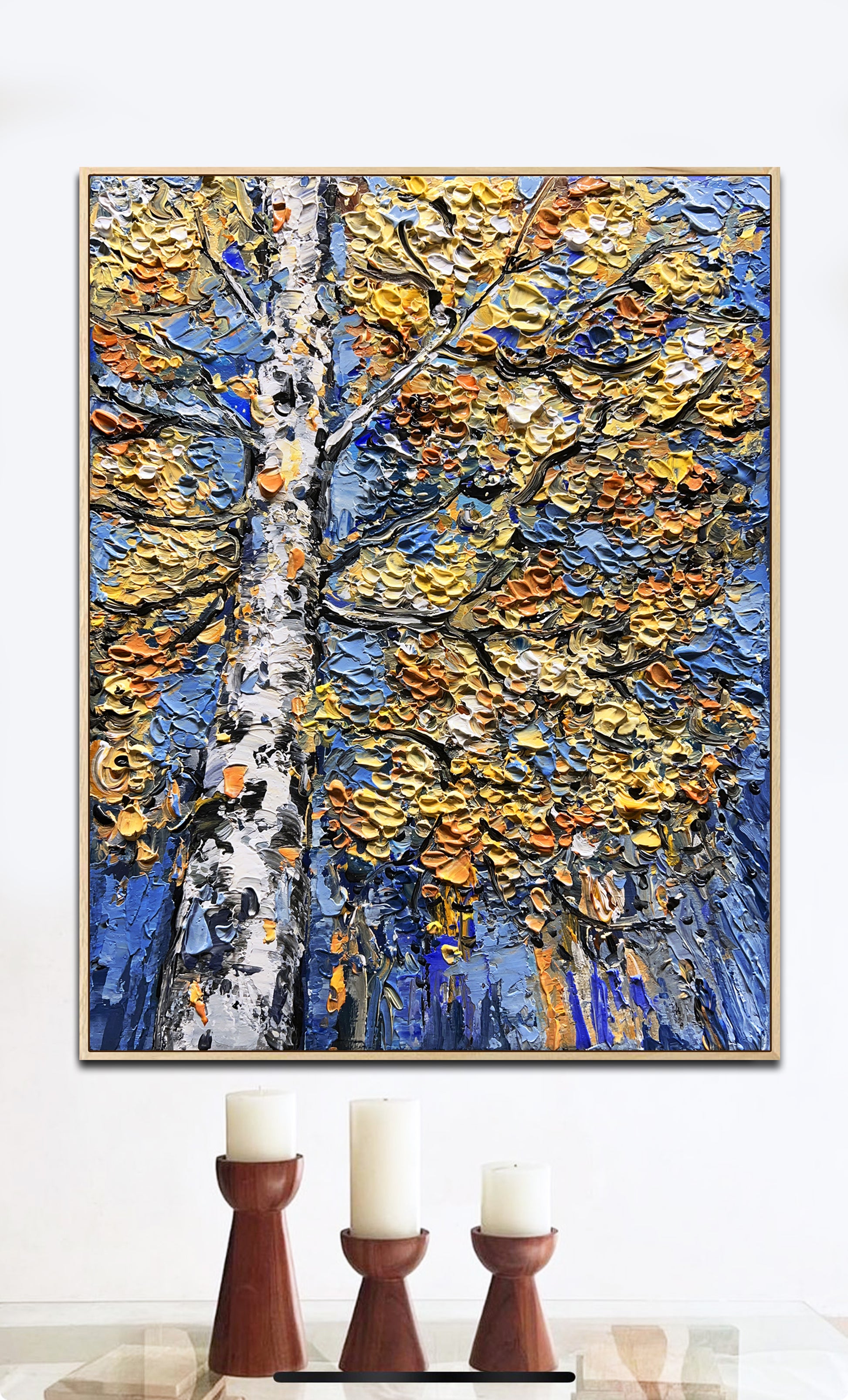 Each stroke carries a gentle rhythm: the rustle of leaves, the hush of air between branches, the slow settling of the season. There is serenity here, and quiet strength — a dreamlike balance between energy and stillness.
