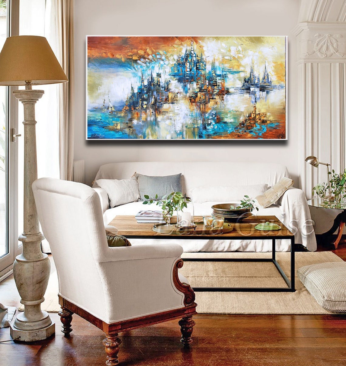 Painting is shipped in a cardboard tube or box, depending on the option you choose, with FedEx or UPS and it’s insured against lost or damage during transport.