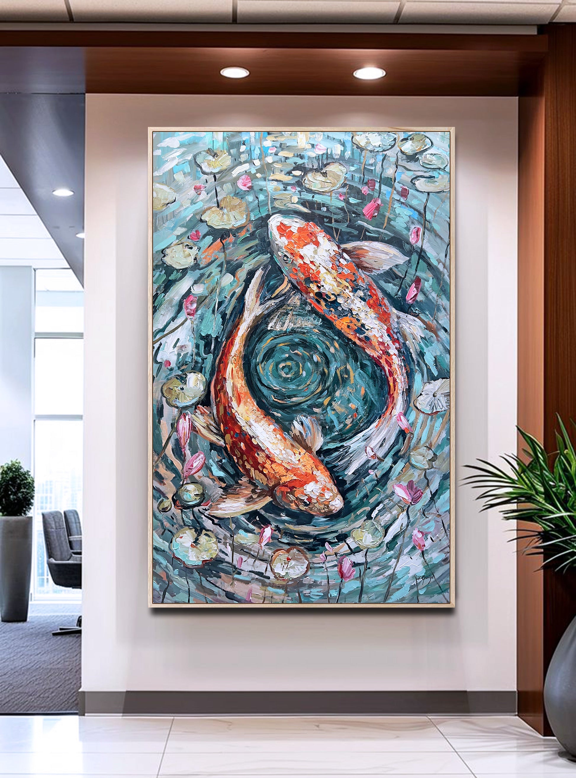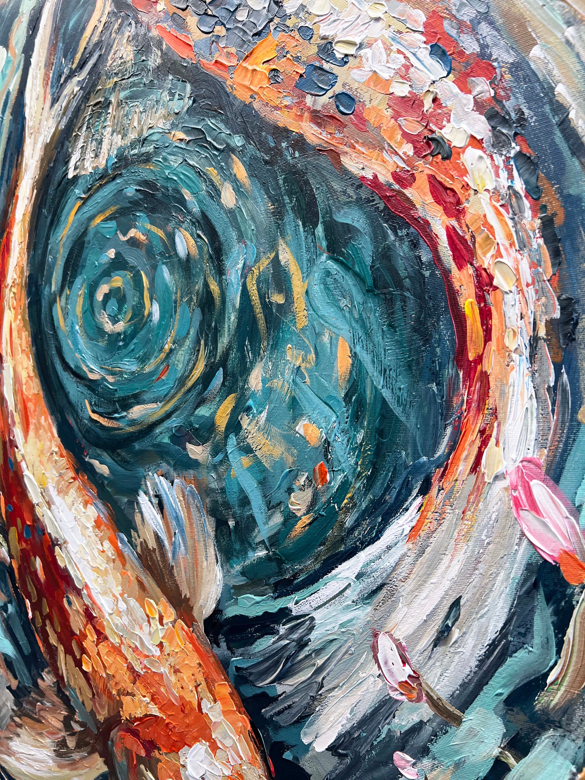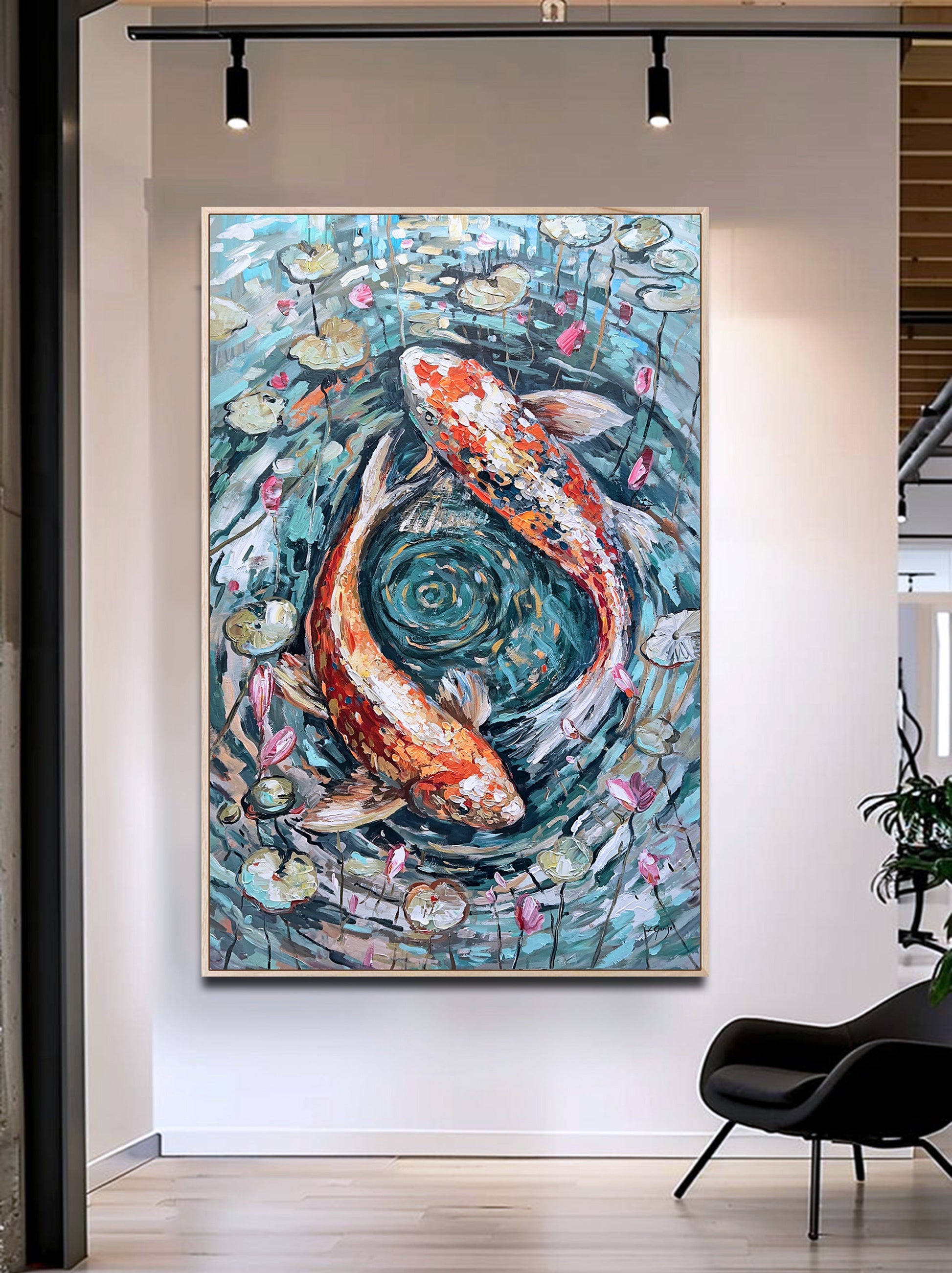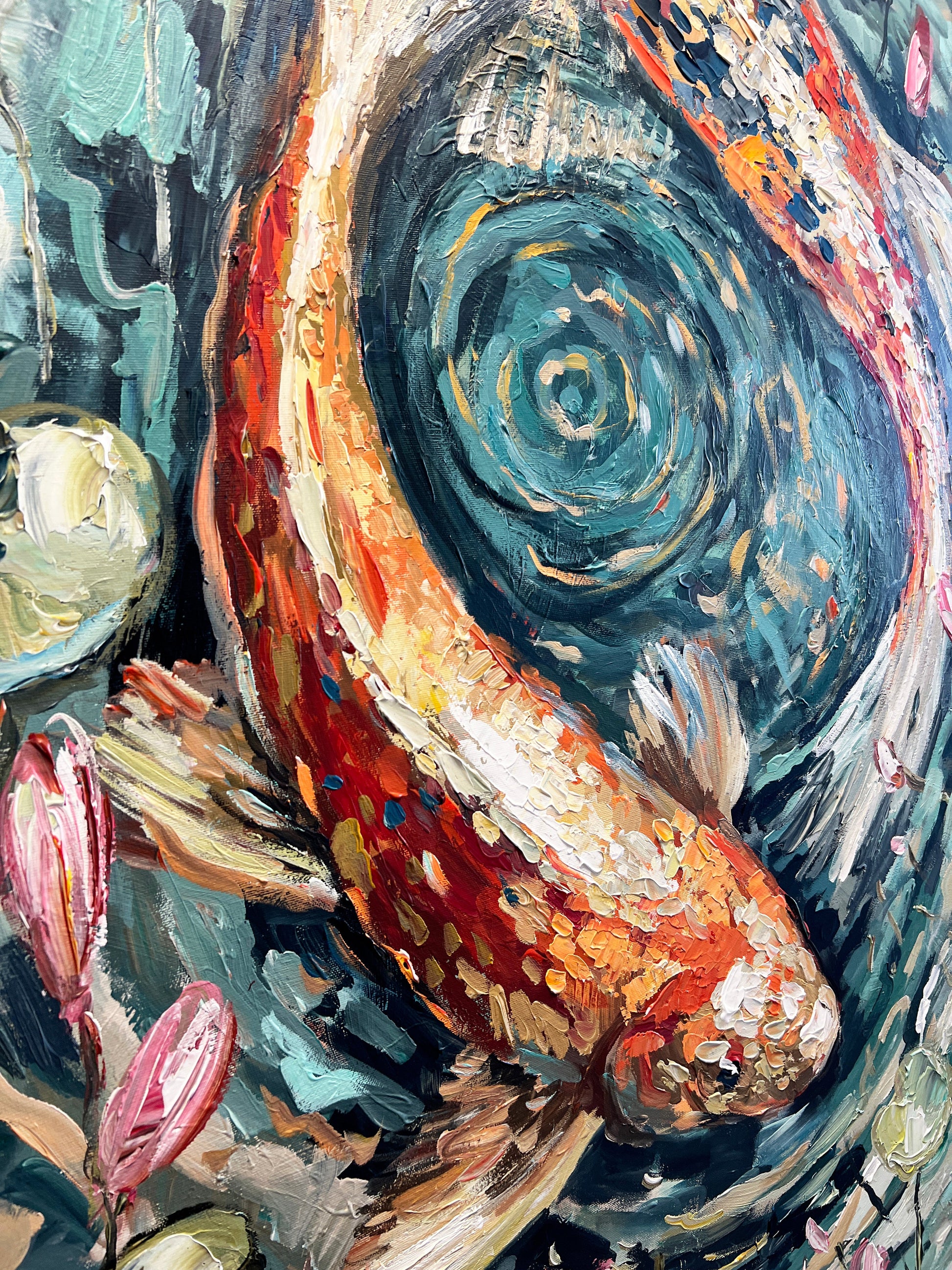 "Circle of Infinity " This artwork captures the symbolic eternal cycle, where two koi swim in graceful harmony through turquoise waters.