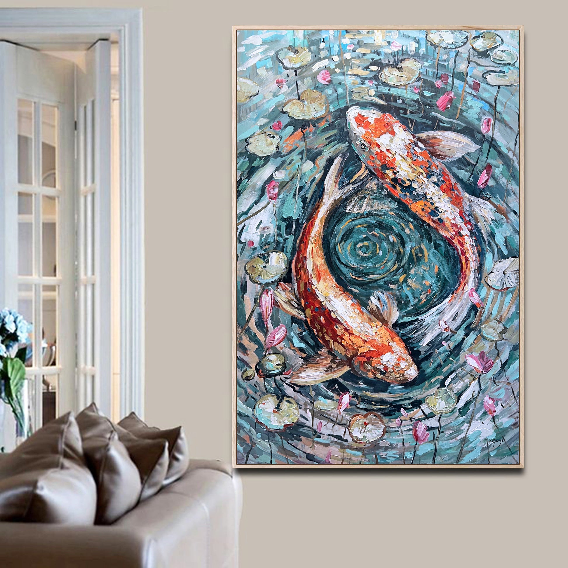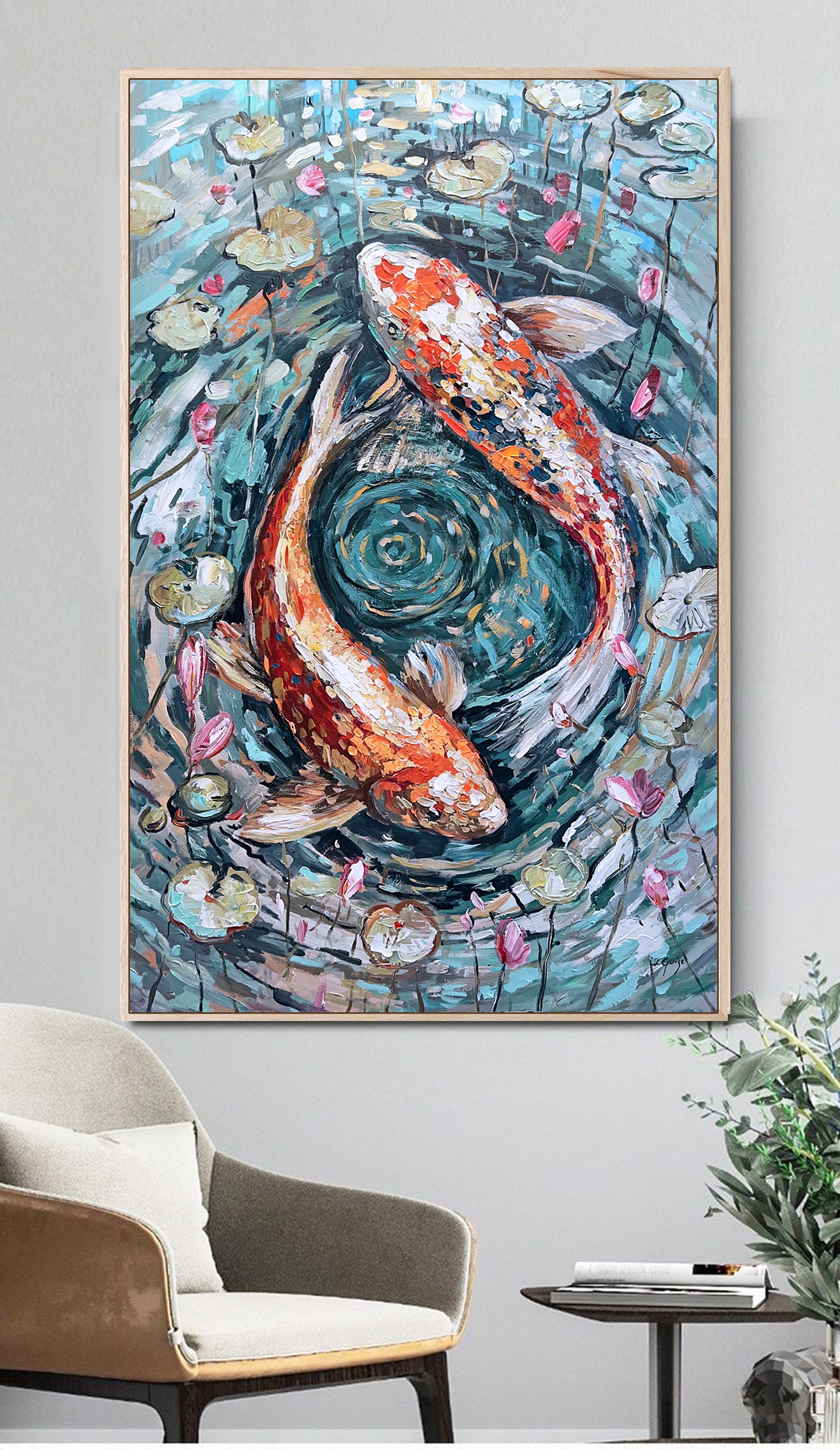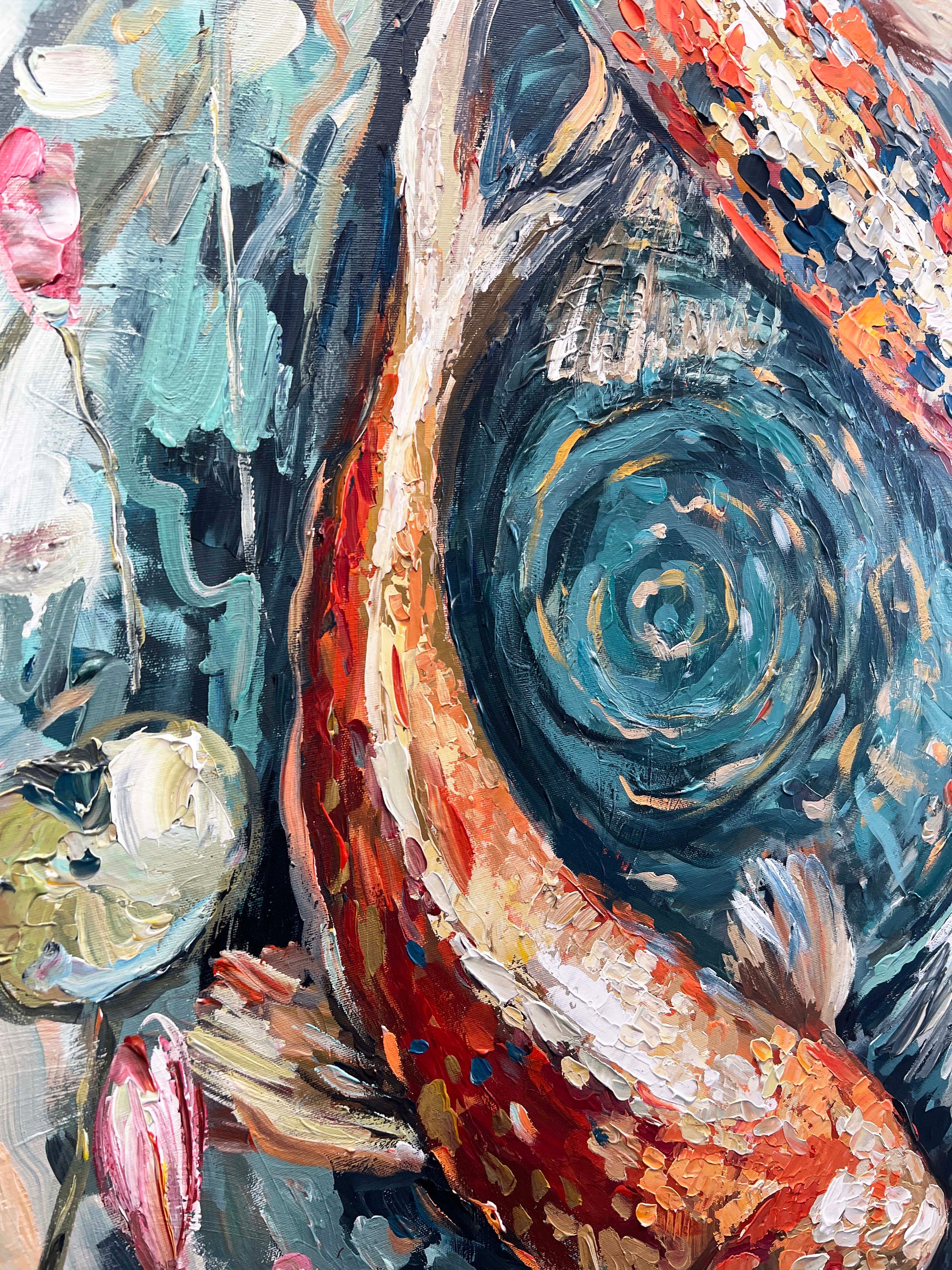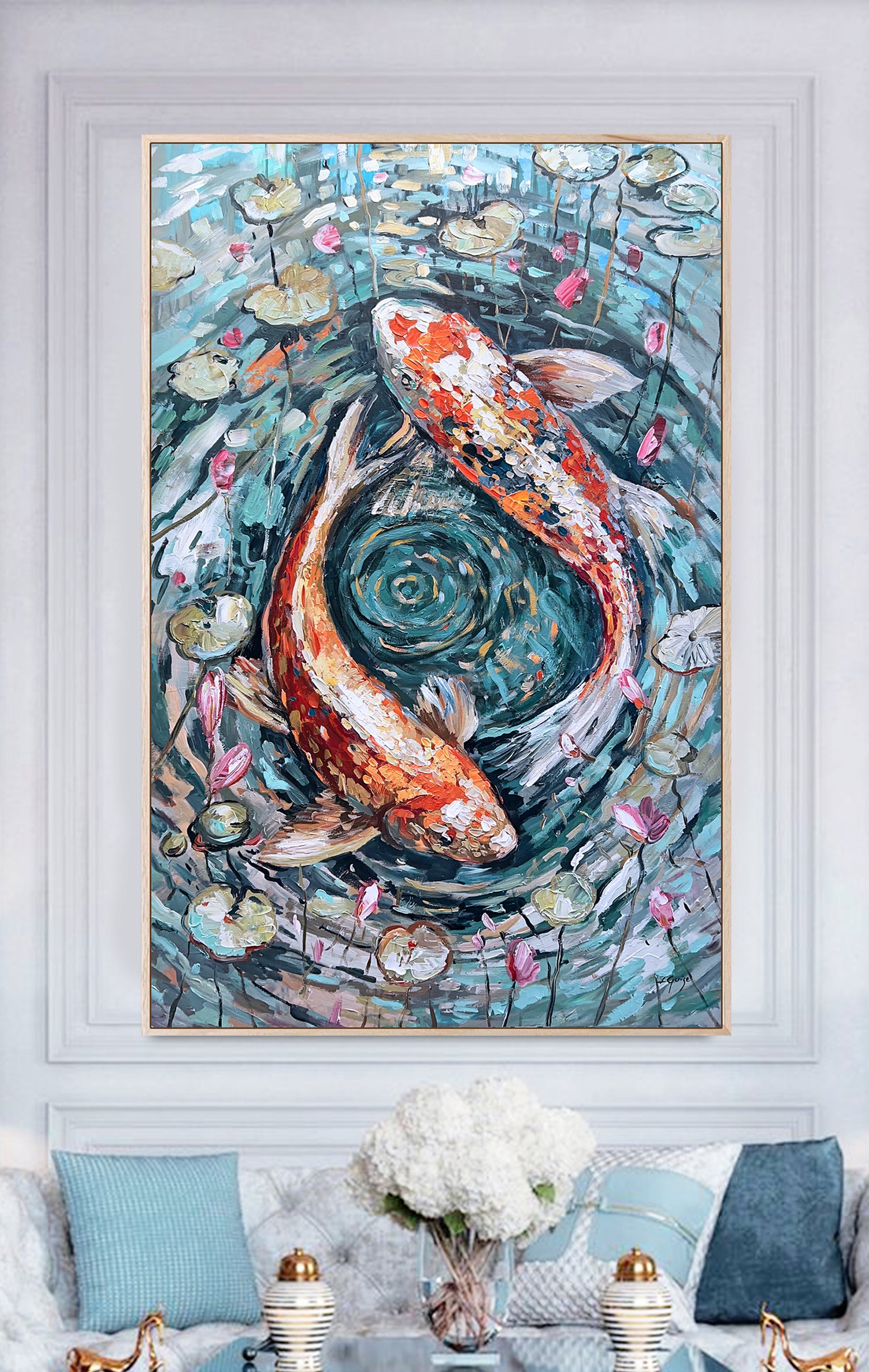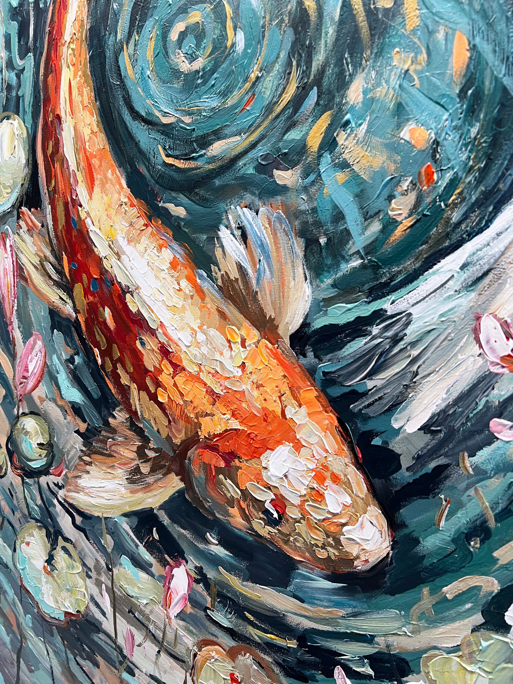 "Circle of Infinity " This artwork captures the symbolic eternal cycle, where two koi swim in graceful harmony through turquoise waters.