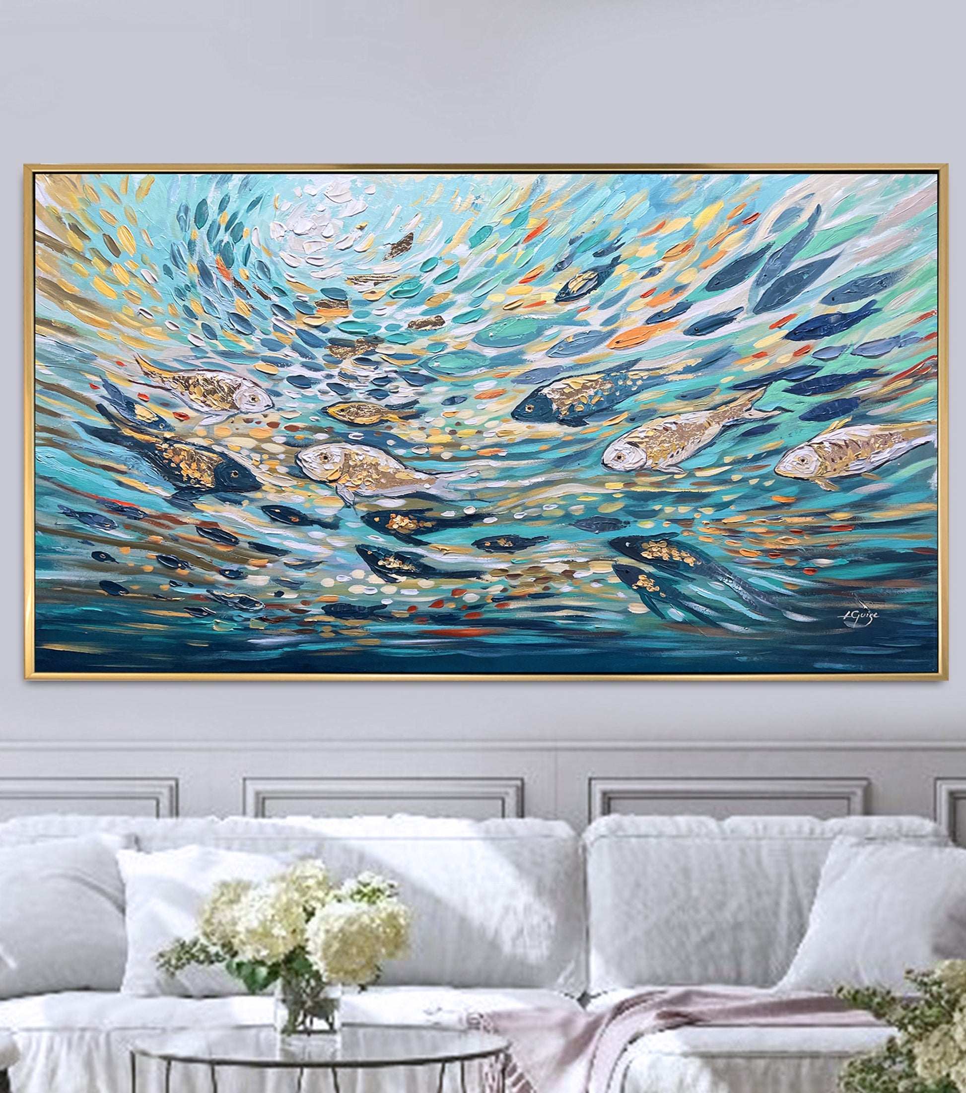 To bring out the vivid colors and serene flow of the piece, consider a gold frame — it adds a touch of luxury while enhancing the sense of life and tranquility in any space.