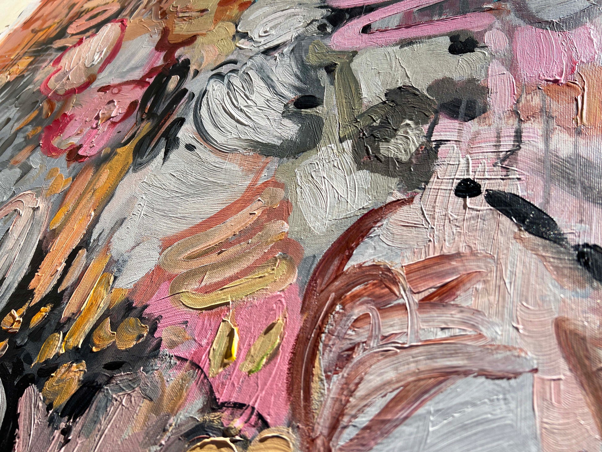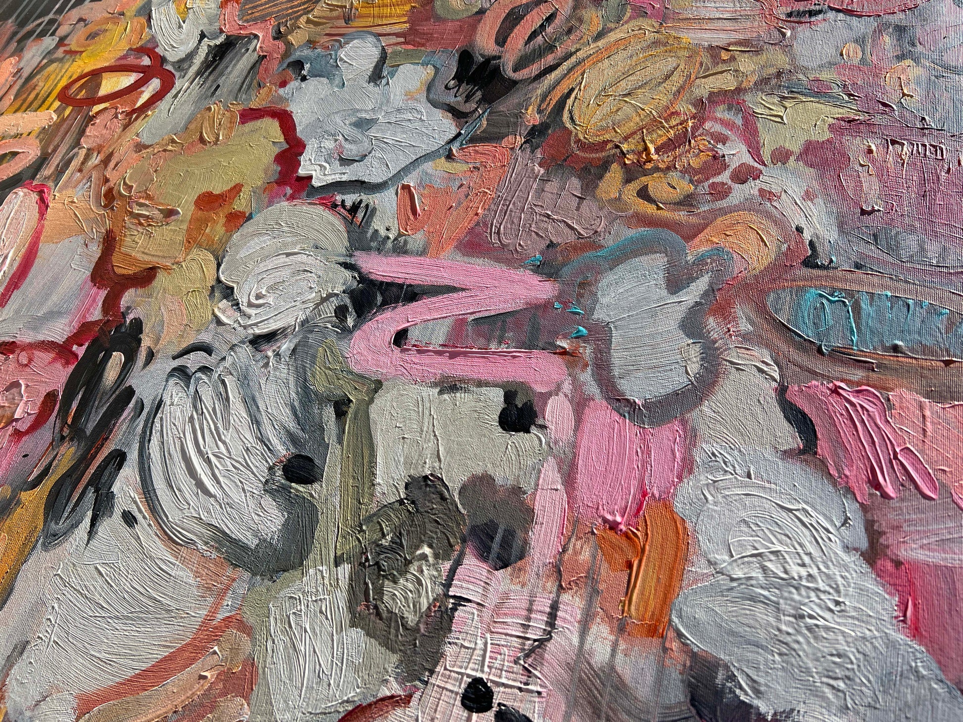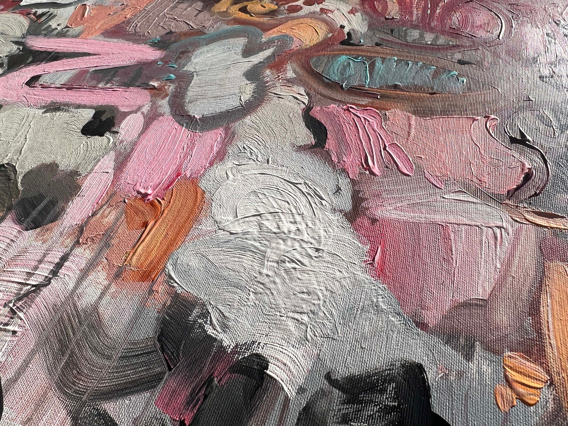 The textured brushwork adds depth and rhythm, guiding the eye through a lively dance of color and form.