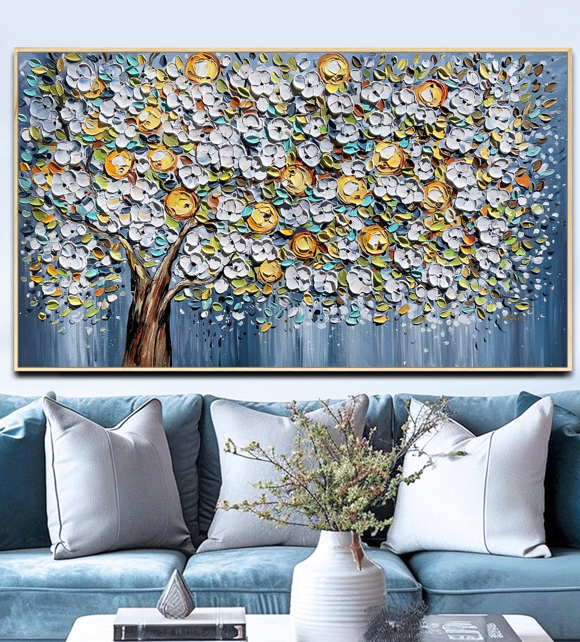 “Golden Essence Tree” brings an uplifting yet soothing presence to any modern spaceit is a celebration of nature’s harmony and the golden light within it.