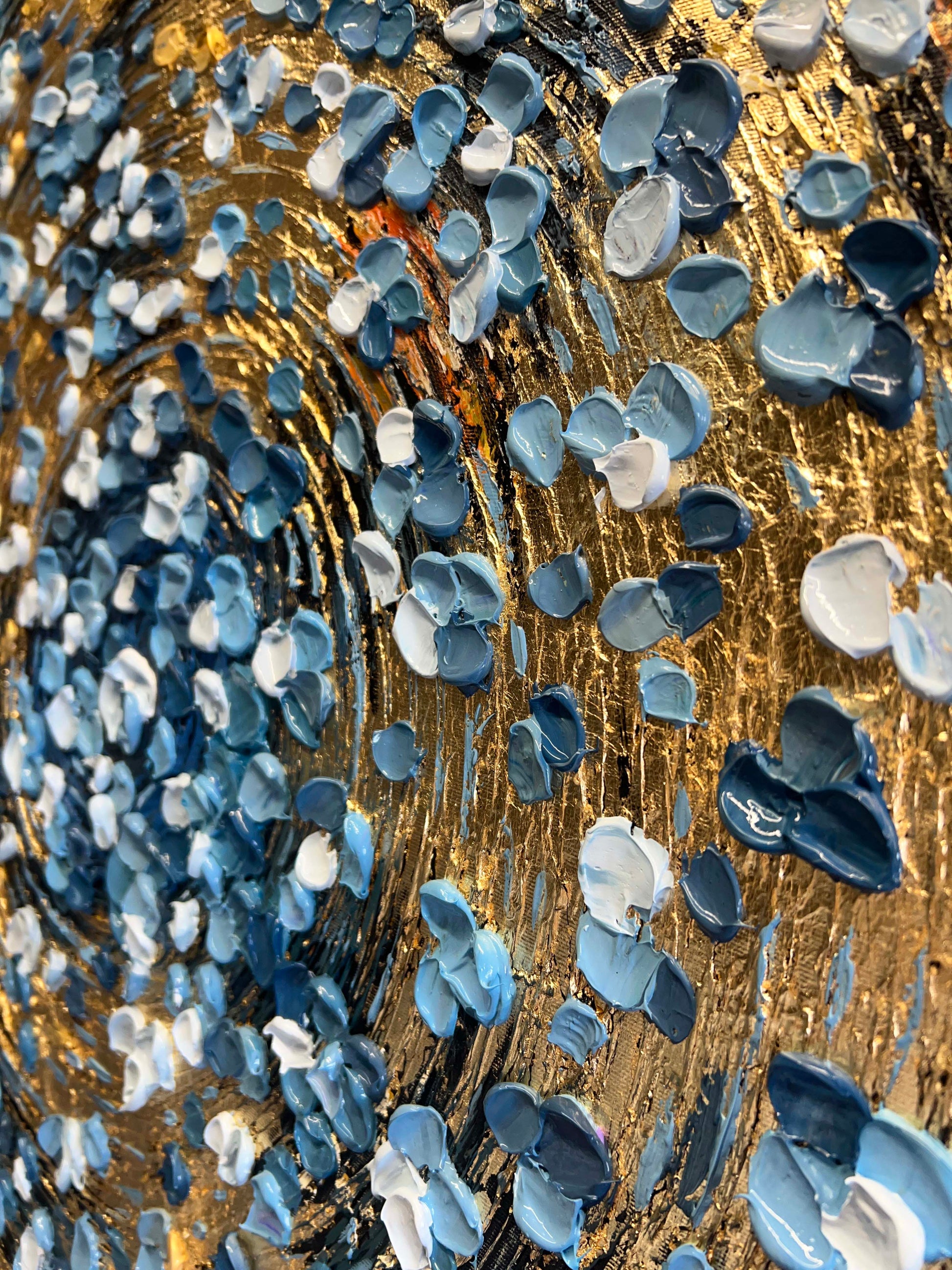 The thick, textured brushstrokes were deliberately layered to give depth and a tactile sense of rhythm.