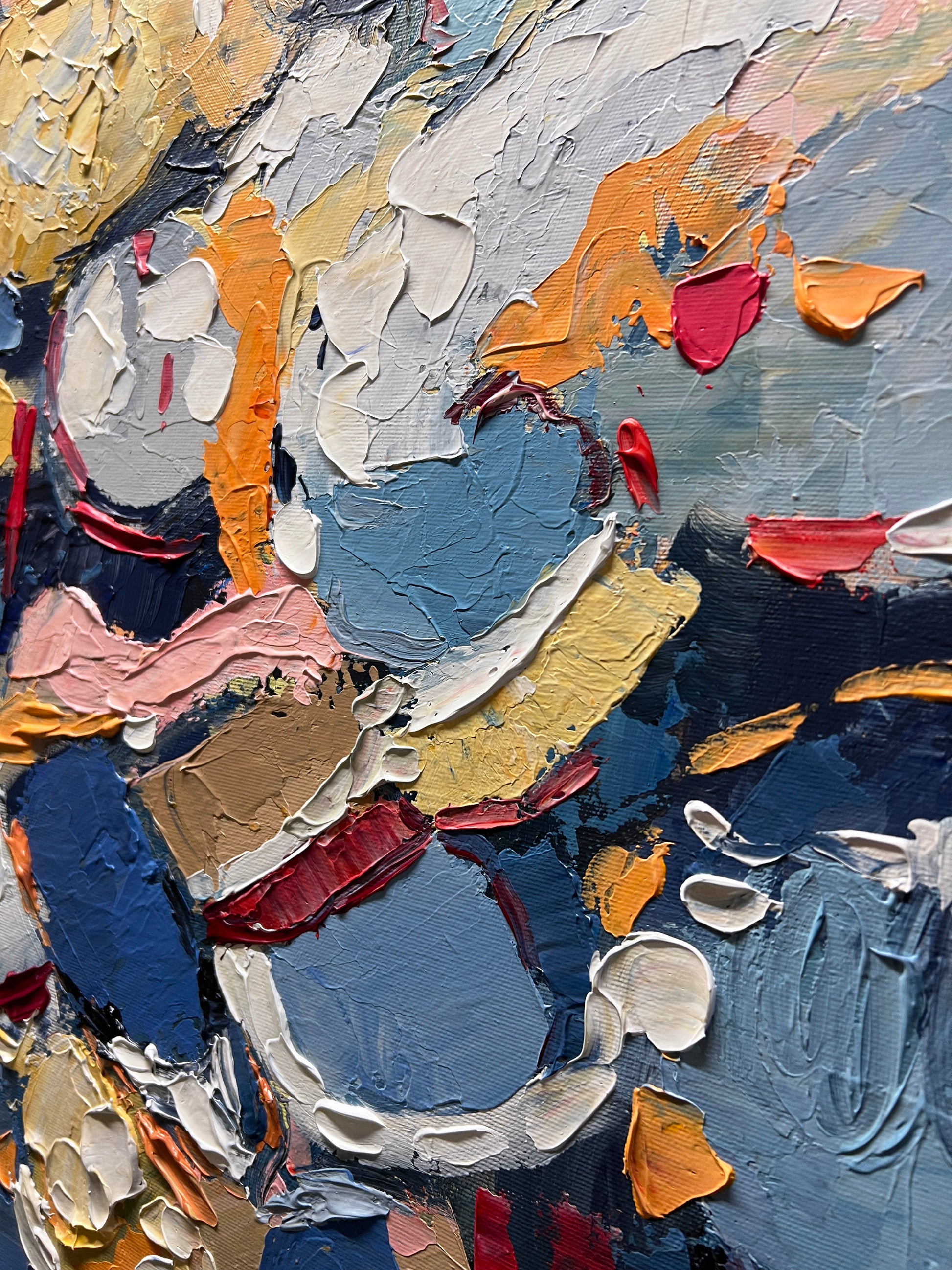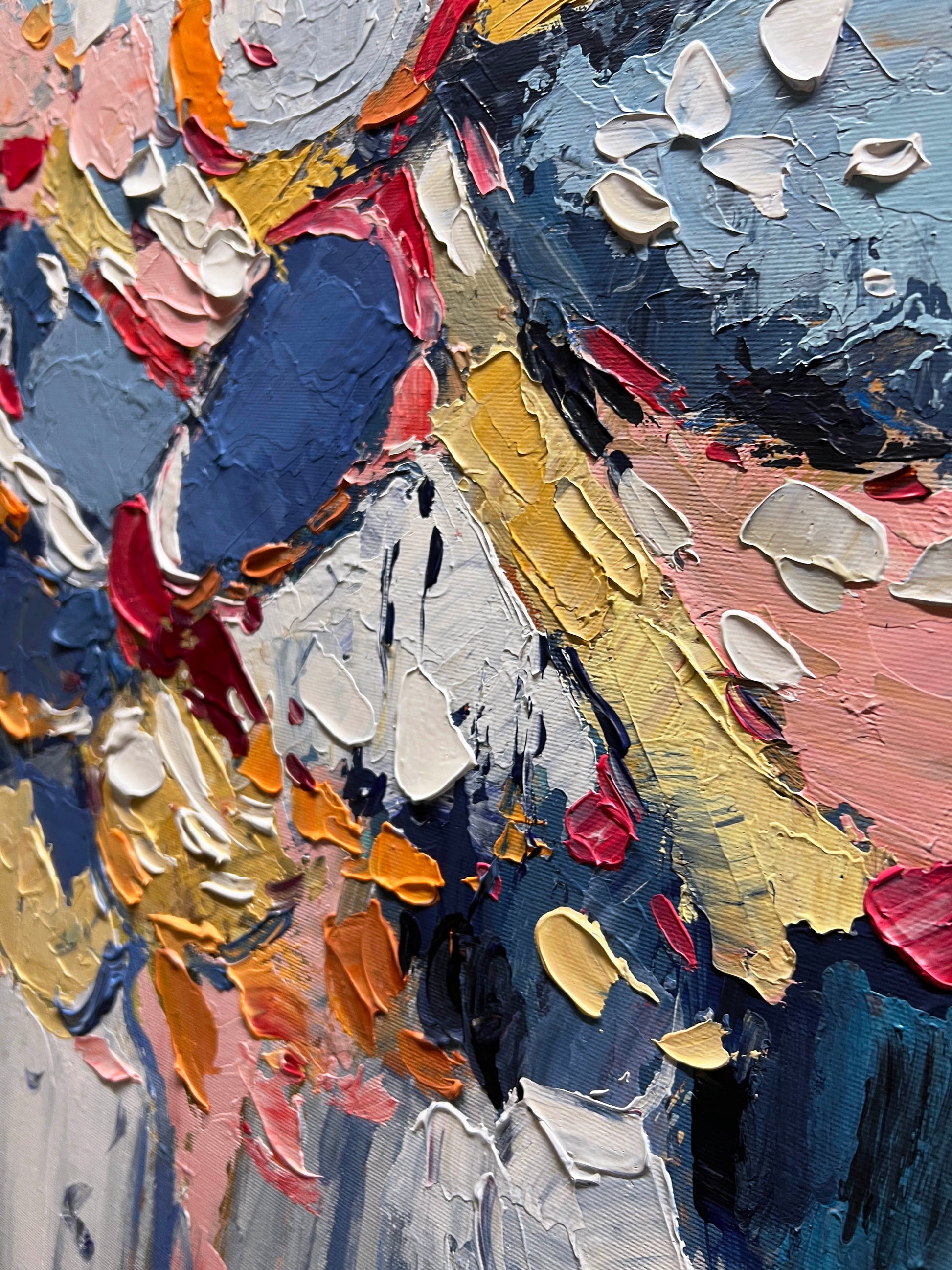 Original painting on high quality canvas, painted with acrylic colors. Palette knife was used to shape painting’s texture and make it tridimensional.