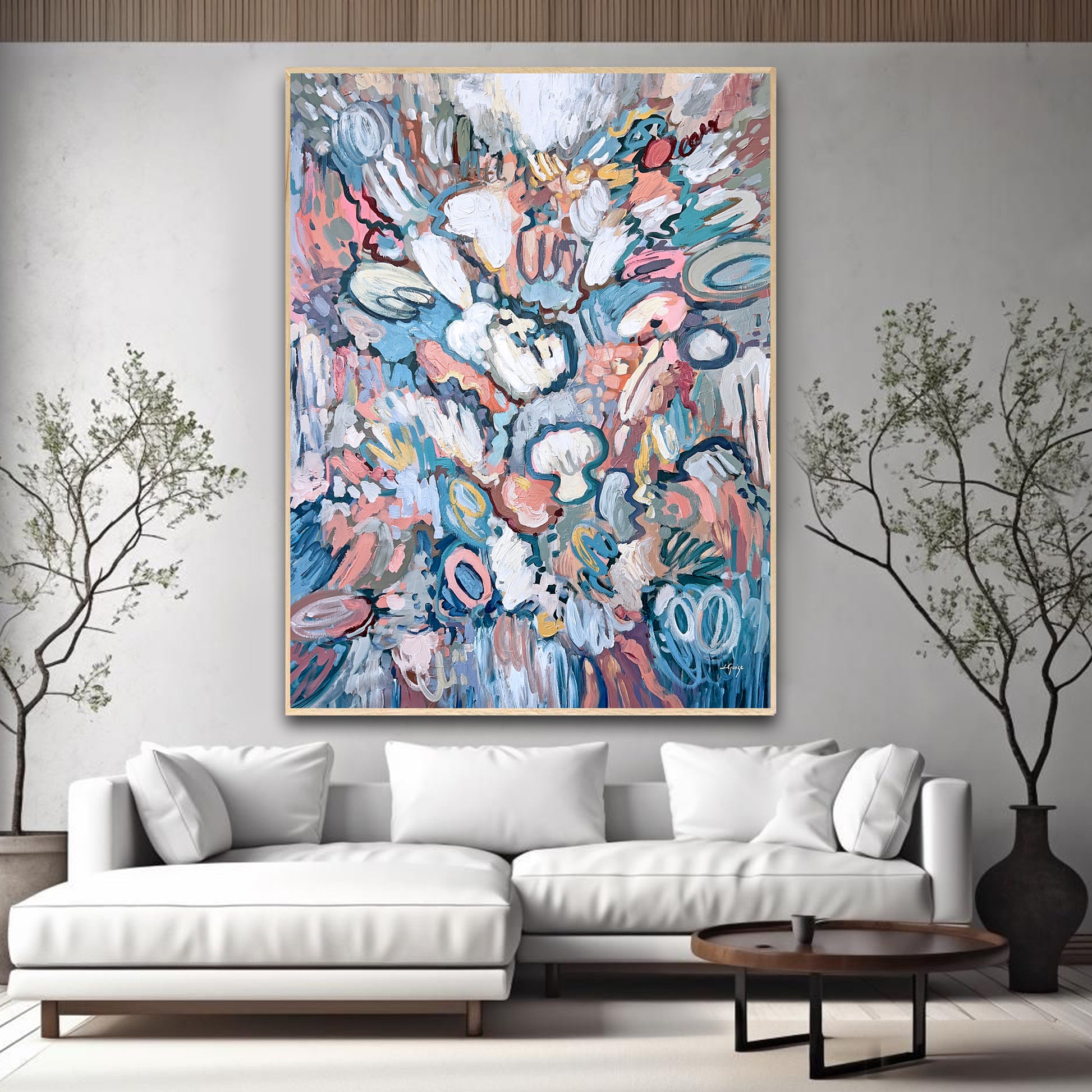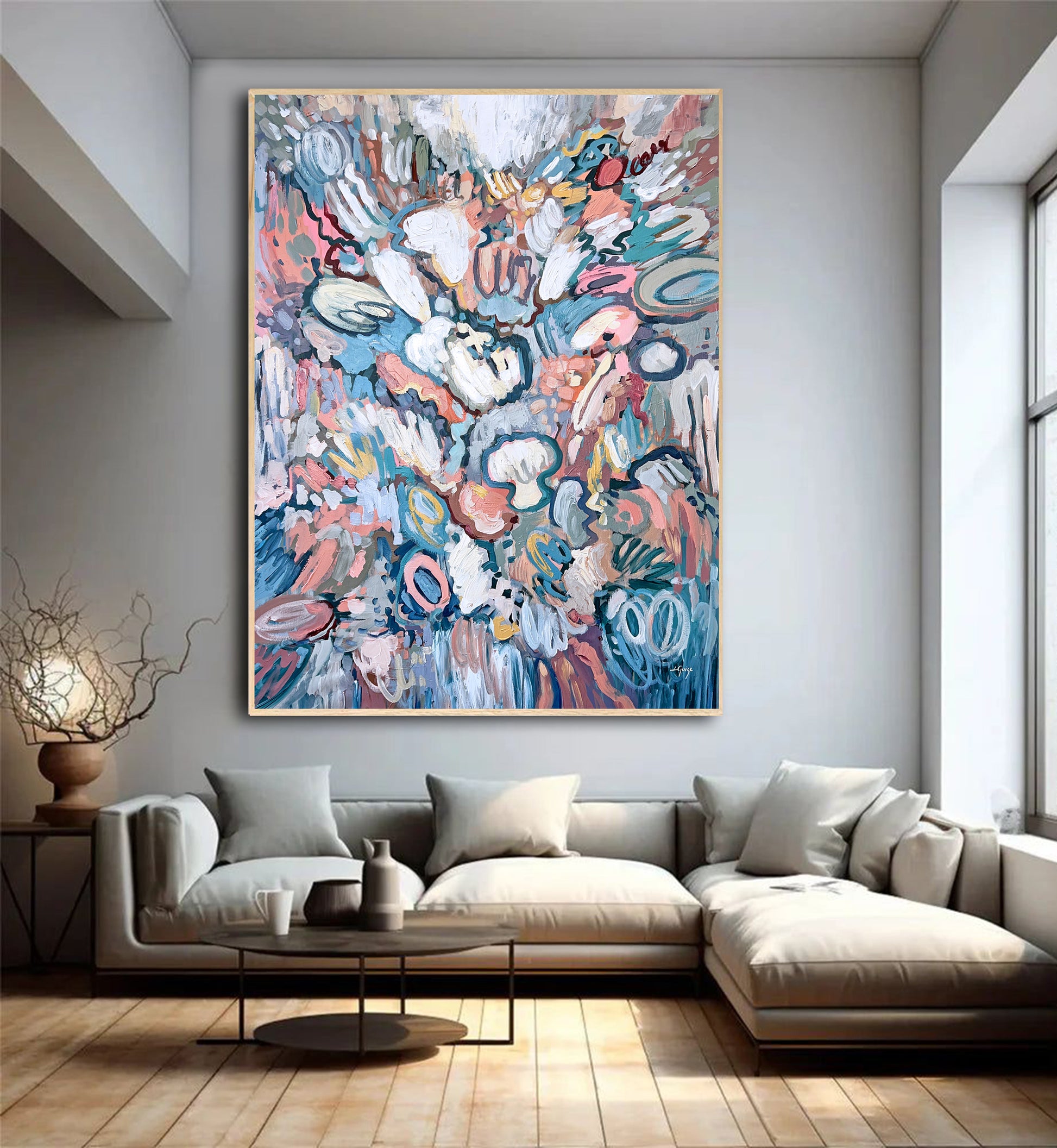 Pastel Dream is a modern abstract painting that brings softness, movement, and light into a space.