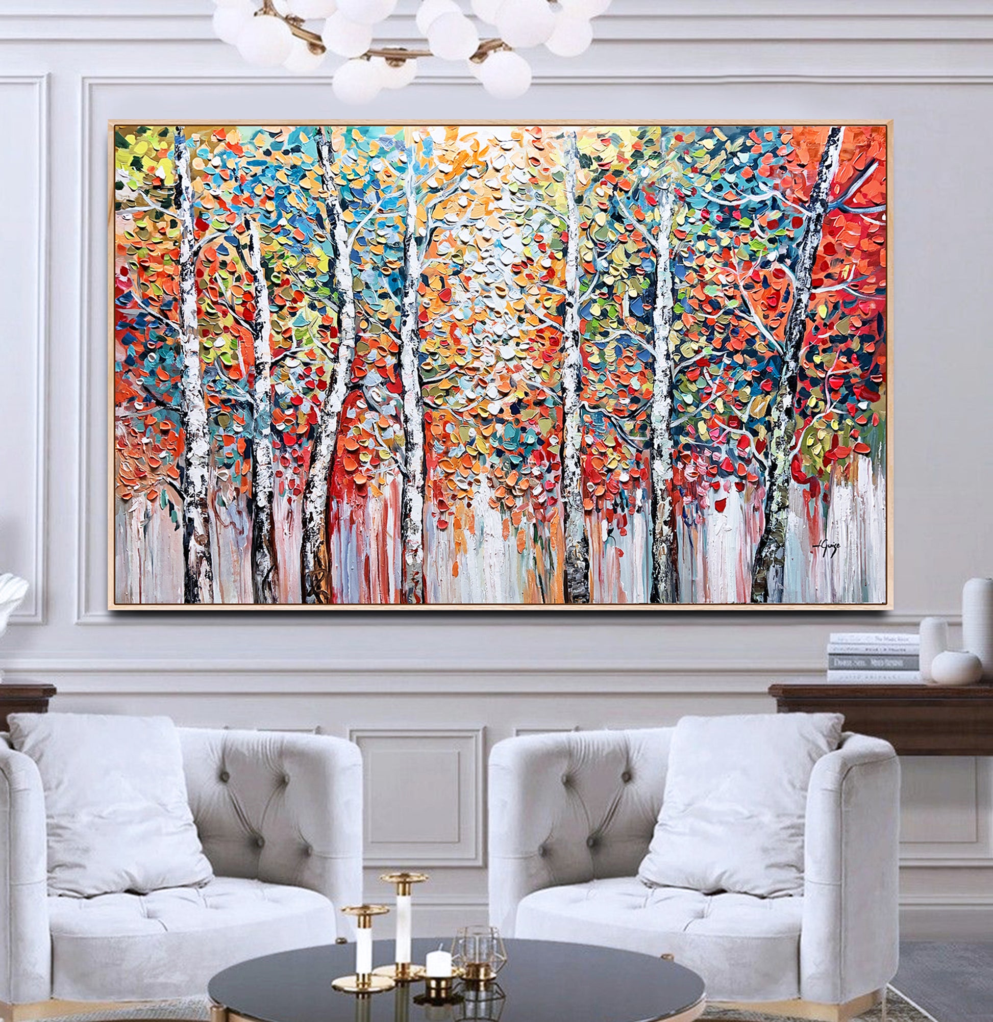 “Rainbow Forest” is a stunning, textured original painting that instantly brightens any space.