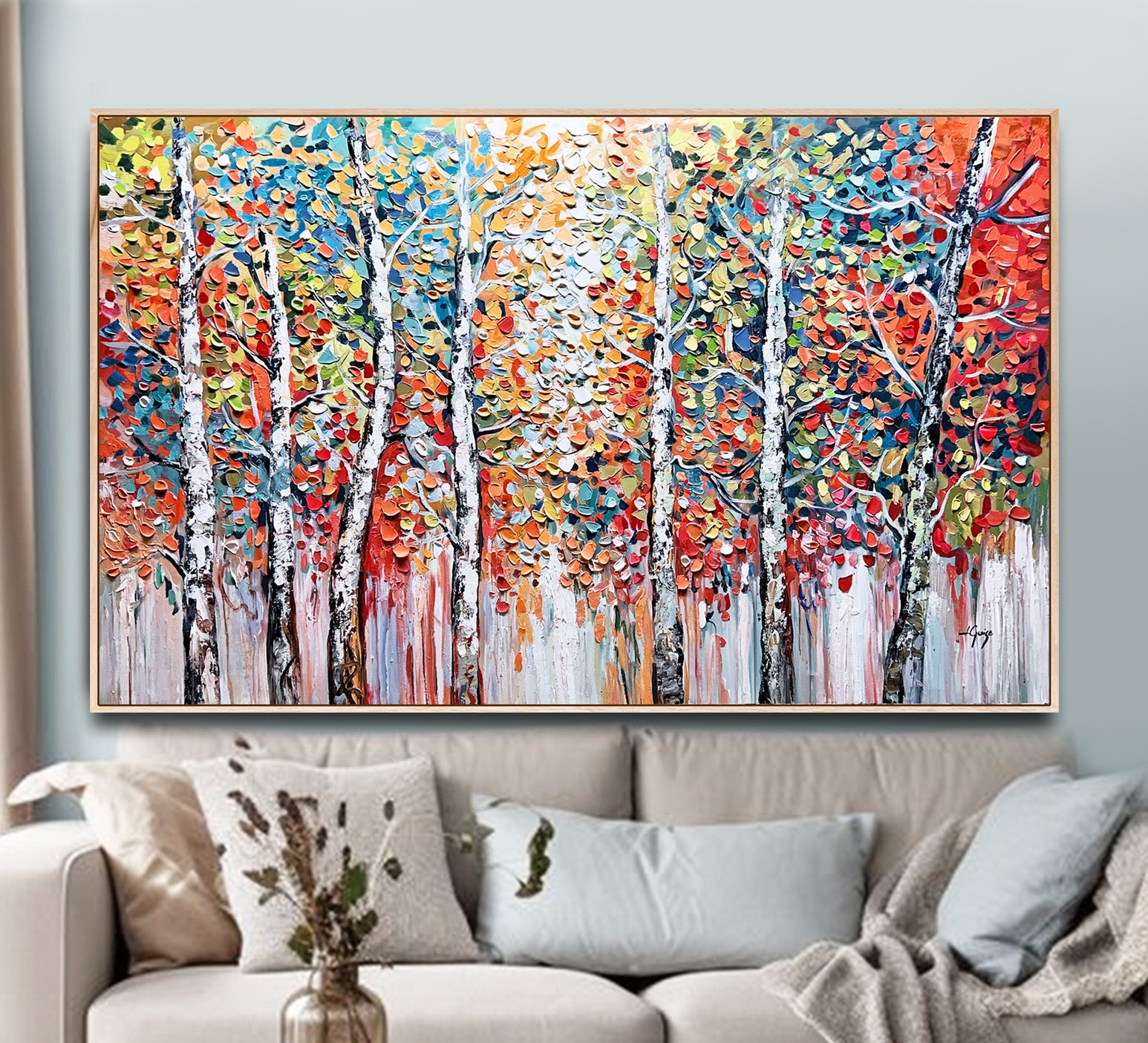“Rainbow Forest” is a stunning, textured original painting that instantly brightens any space.