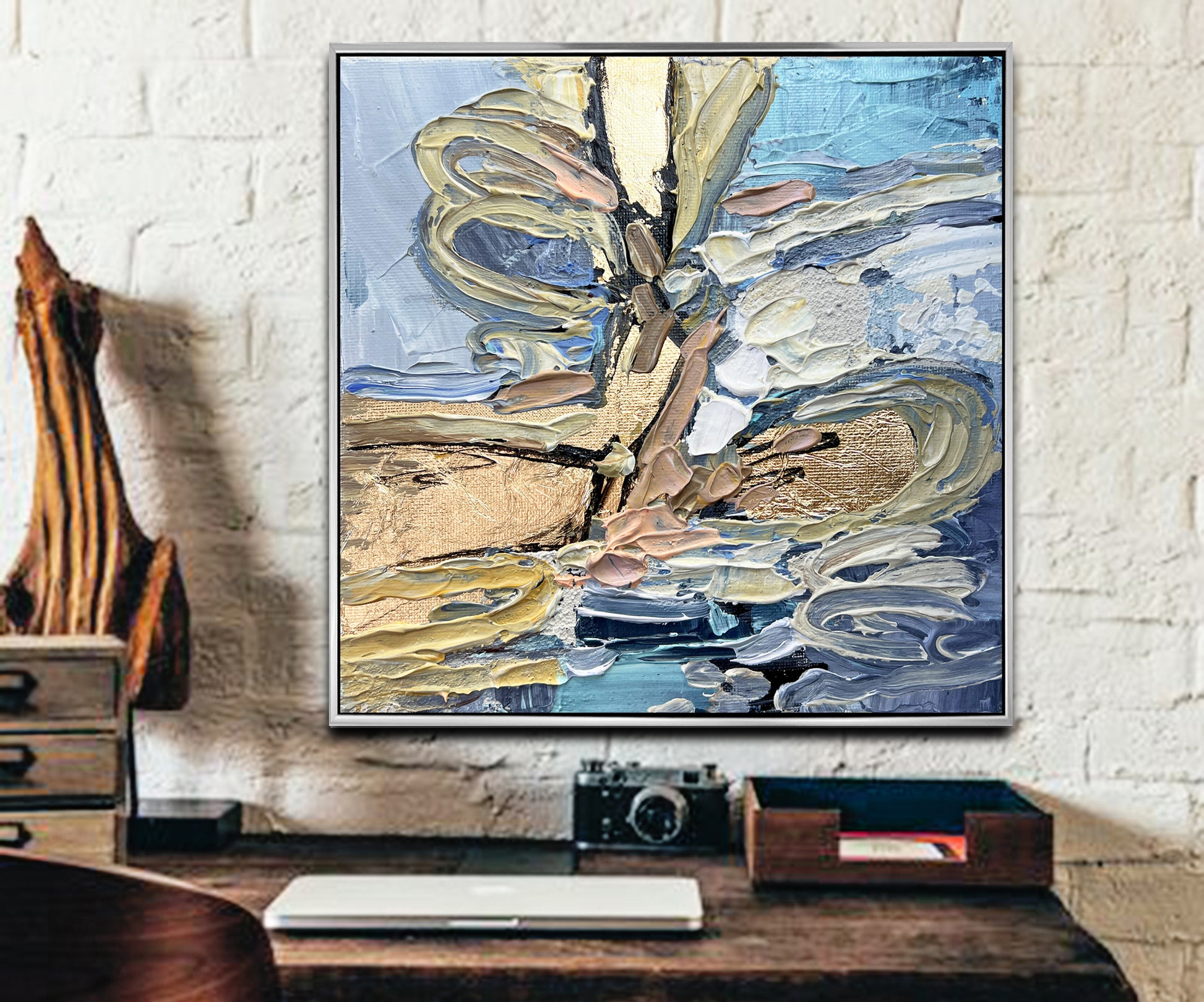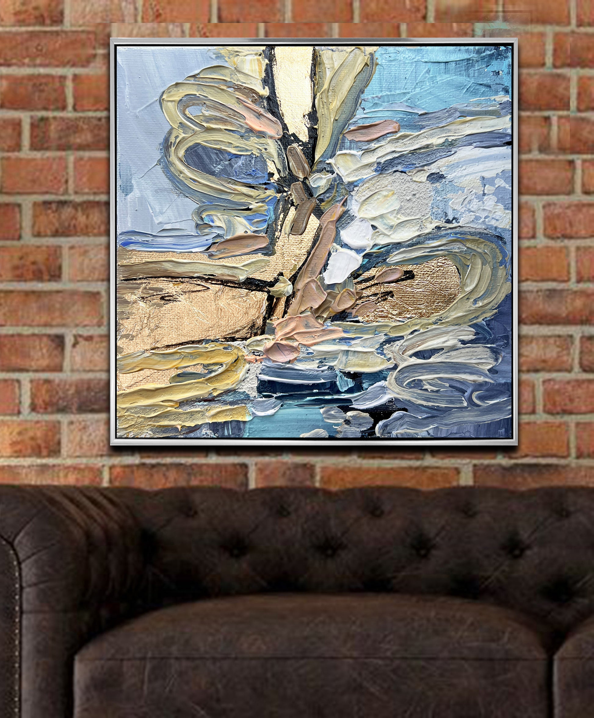 Expressive palette-knife strokes sweep across the surface, creating sculptural textures that catch the light and shift with the viewer’s perspective.